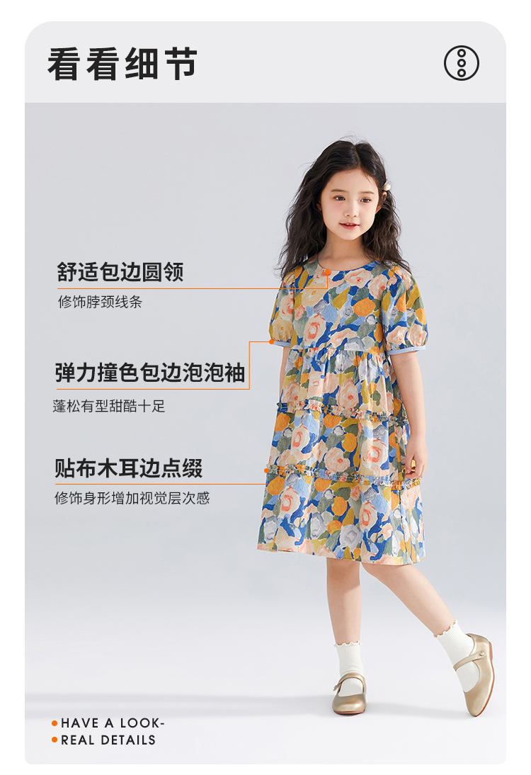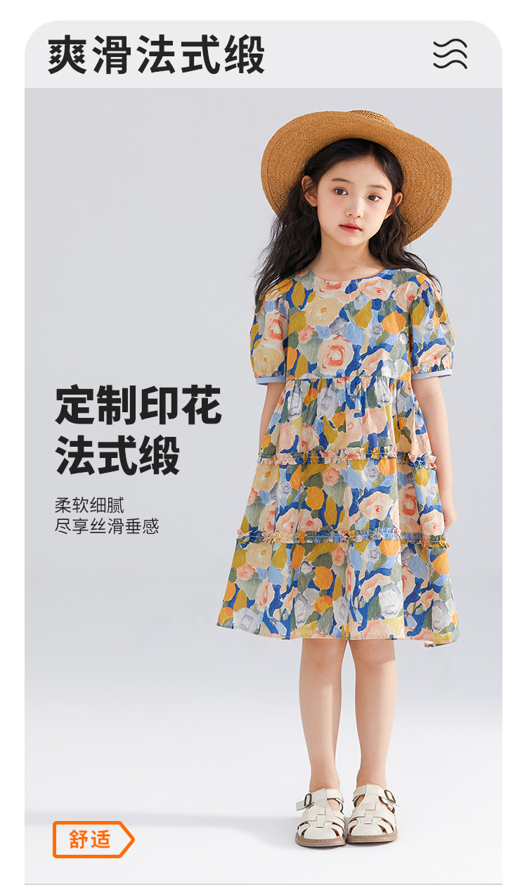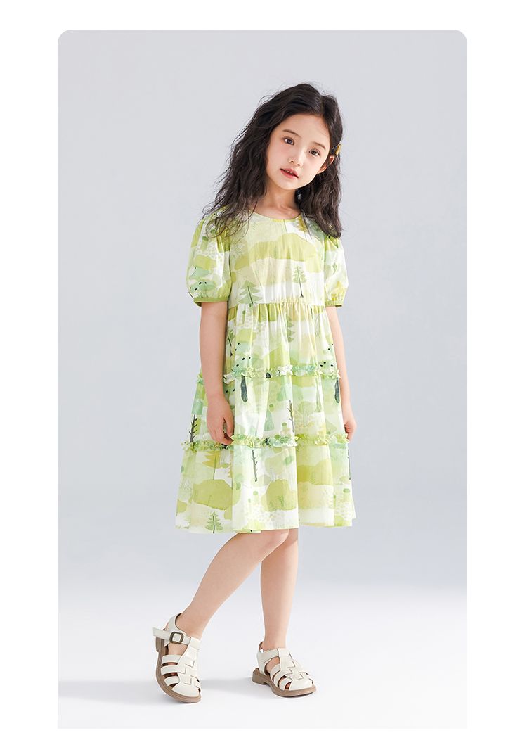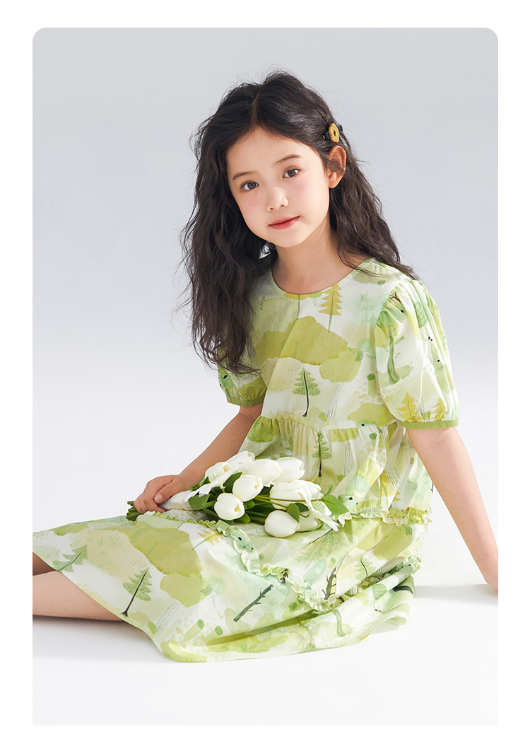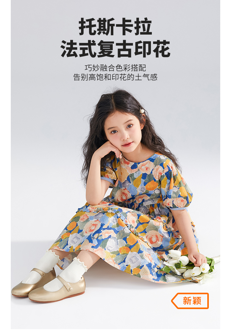 【120-165】【可可鸭】女童短袖连衣裙夏季碎花田园裙子