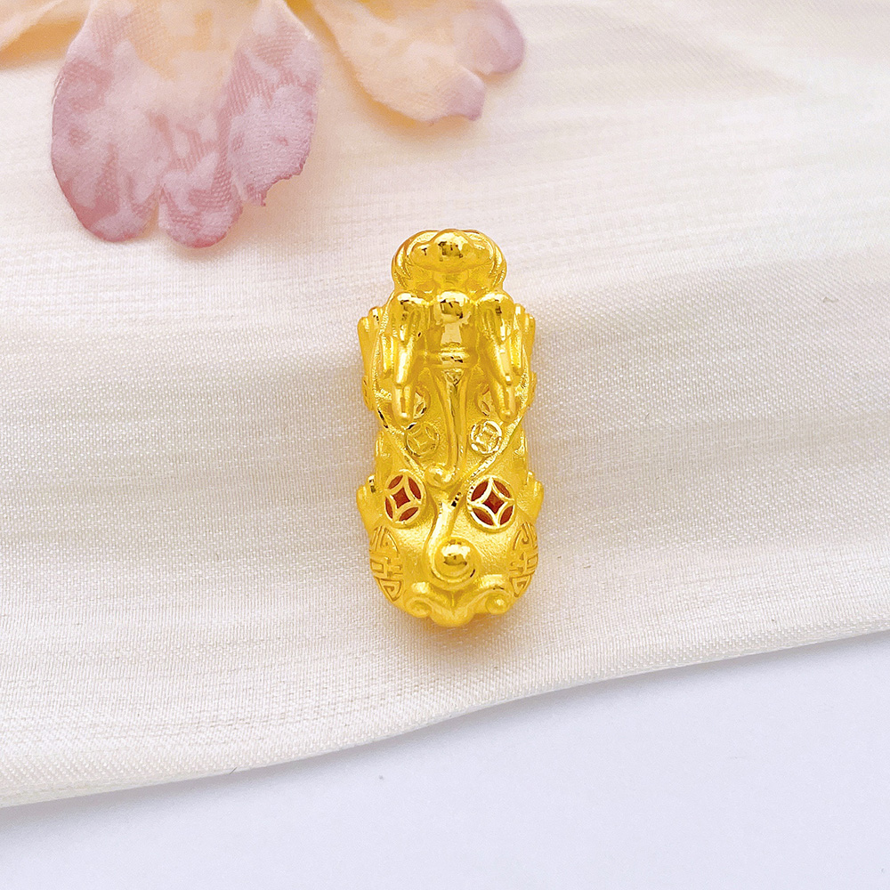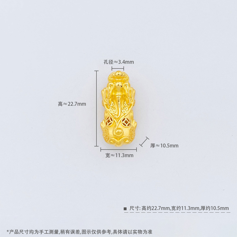 【限时克减150元】足金999.99 #招财进宝 五9貔貅手串镂空铜钱招财貔貅手串Diy手串配件(约22.7*11.3mm)(ACSC00002)补差价)预售产品下单后不退款不退货不换货不补差价