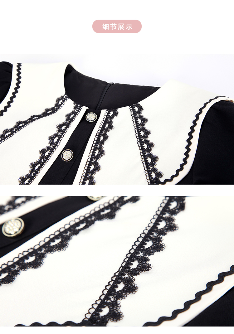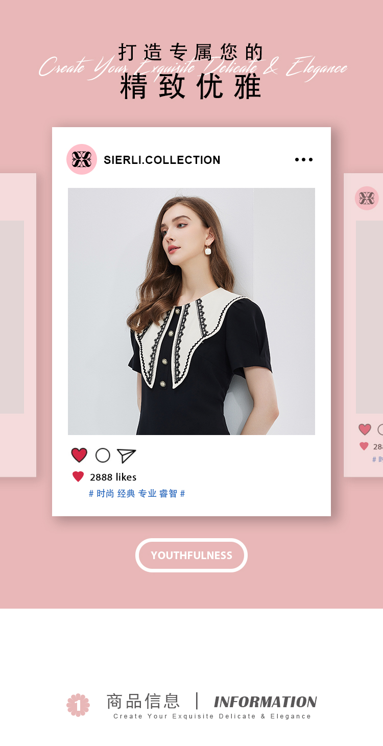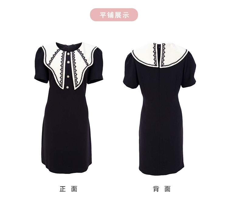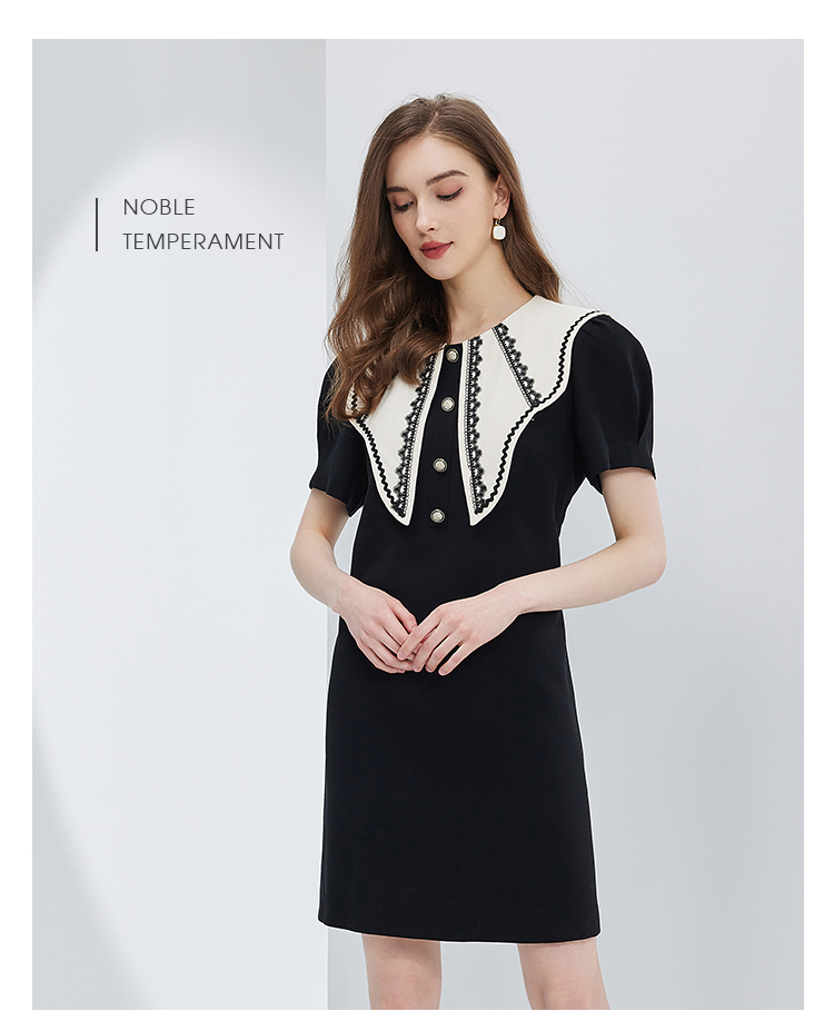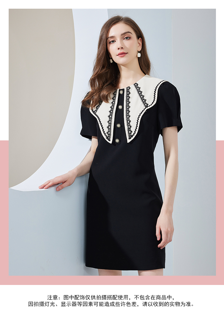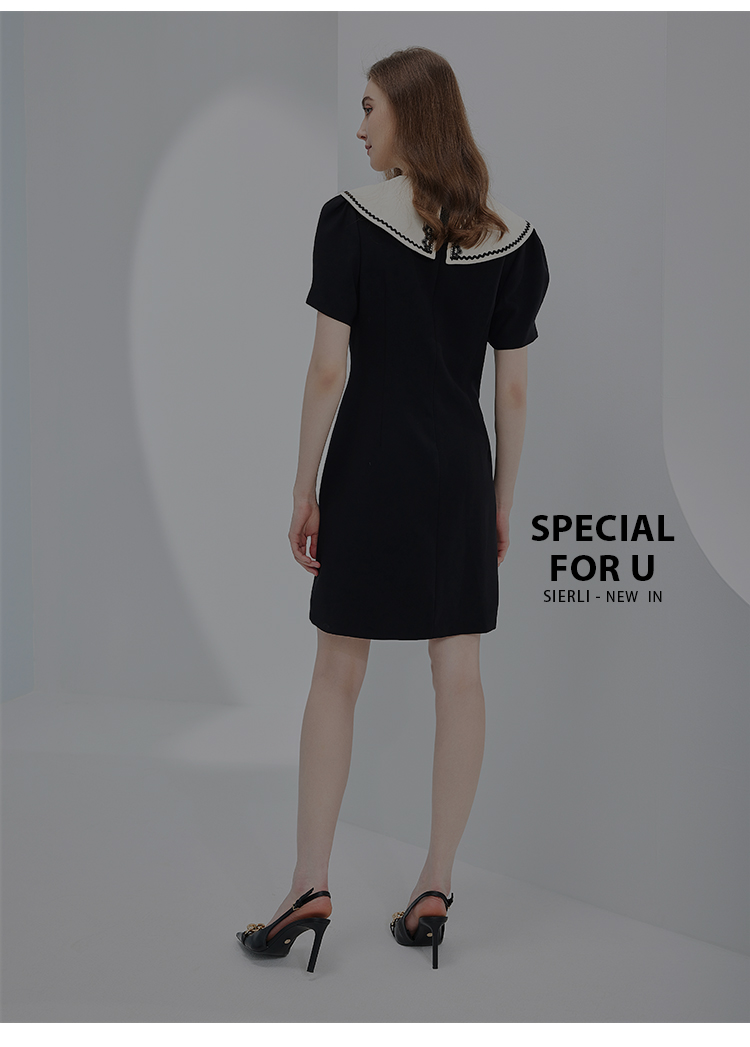NF883斯尔丽瑟俪2023夏新款装饰绣花撞色显瘦减龄连衣裙