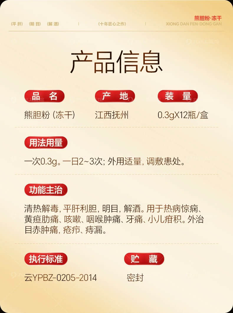 【双12返场月】重磅升级 熊胆粉官方旗舰店正品冻干超高含量0.3g*12瓶中药饮片金胆级送礼