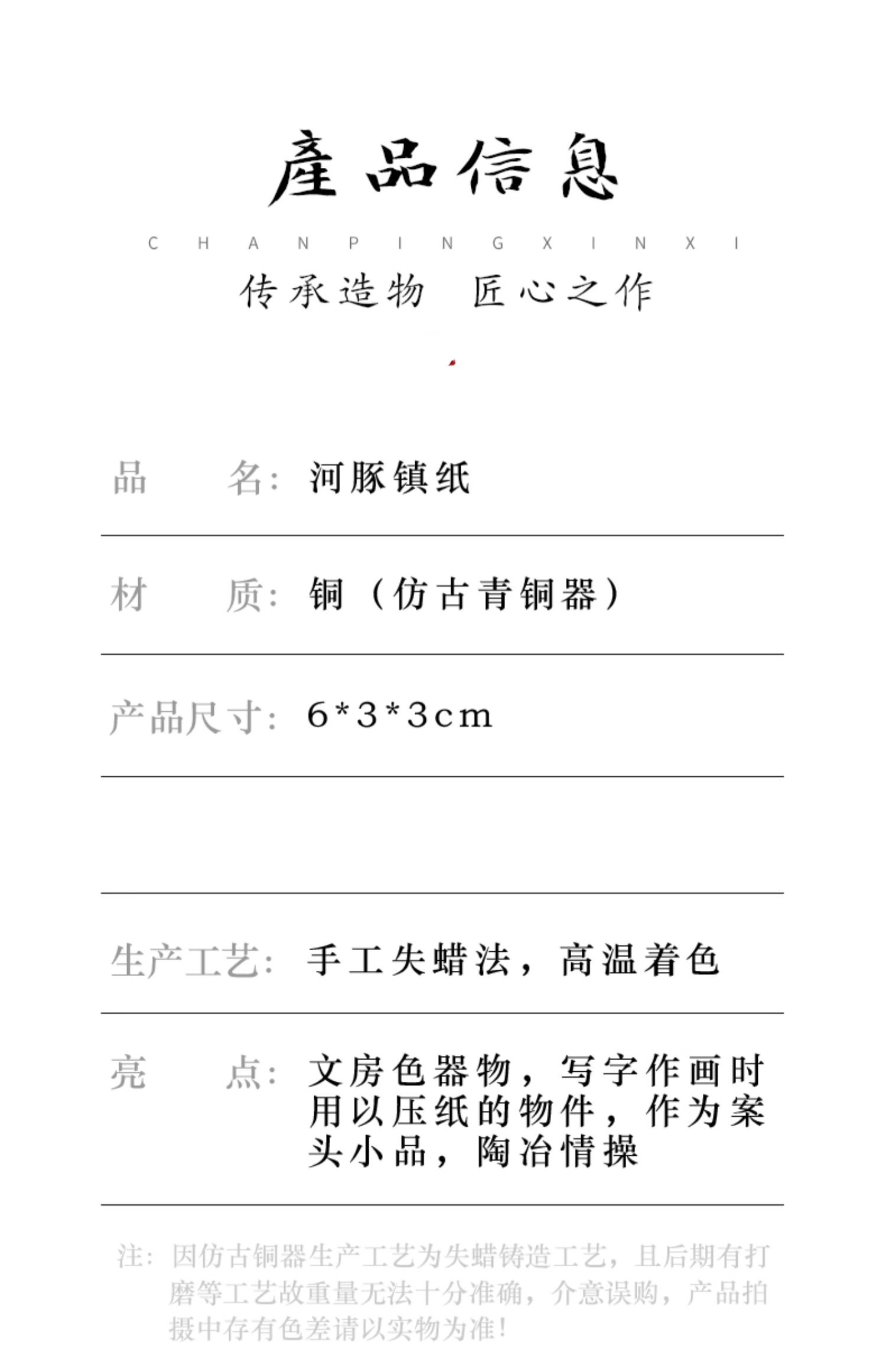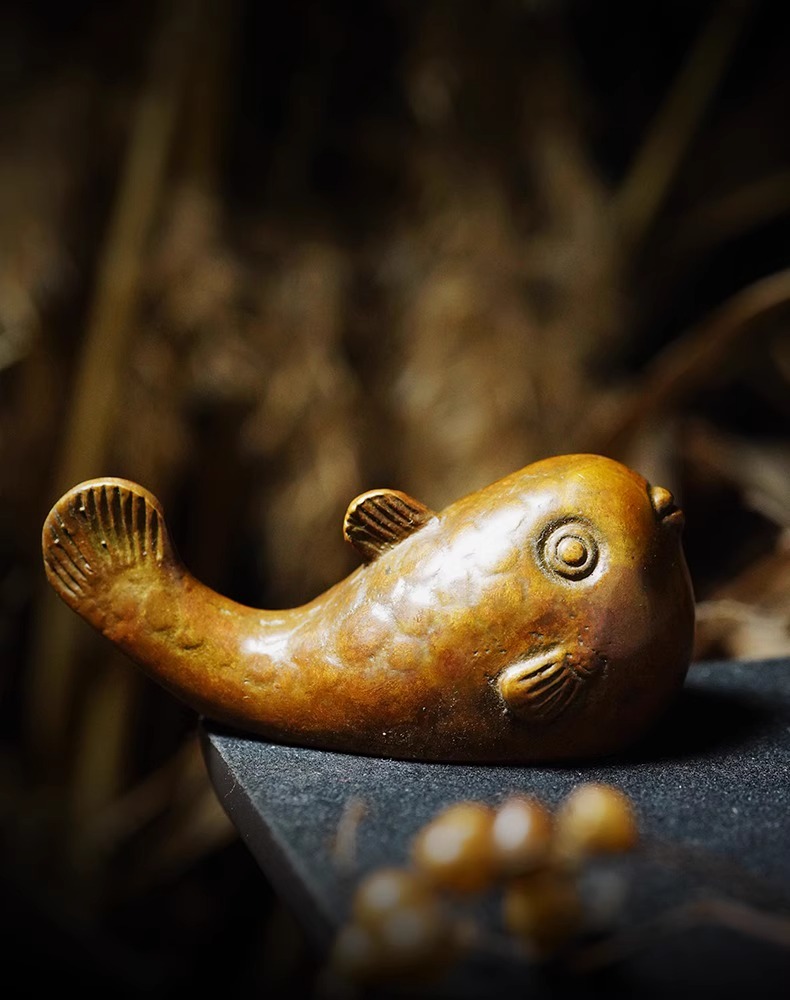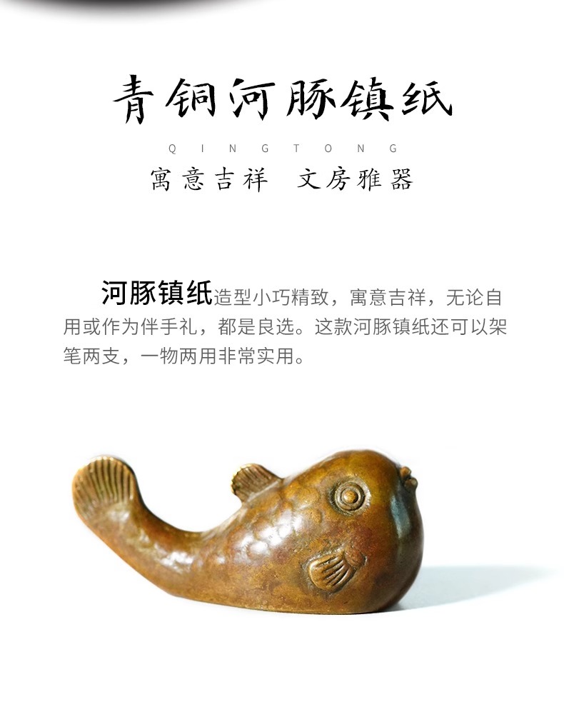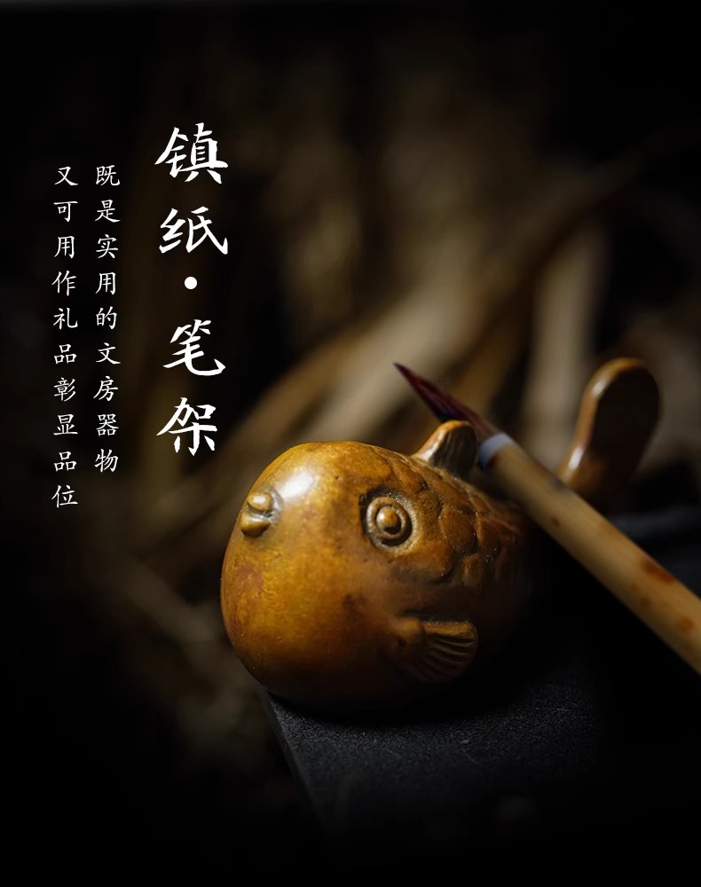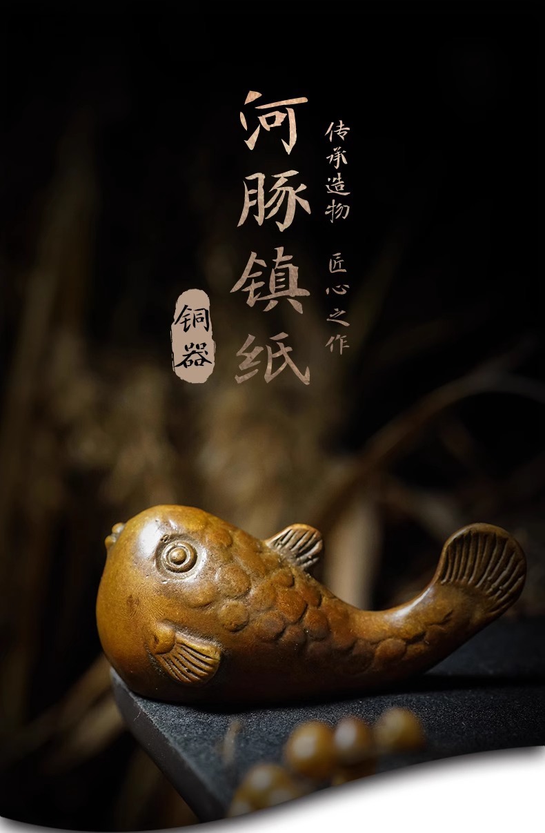西泠印社 河豚纸镇镇尺笔搁铜器文房摆件文房四宝礼品筷子架茶宠手把件书法国画宣纸压纸铜文房
