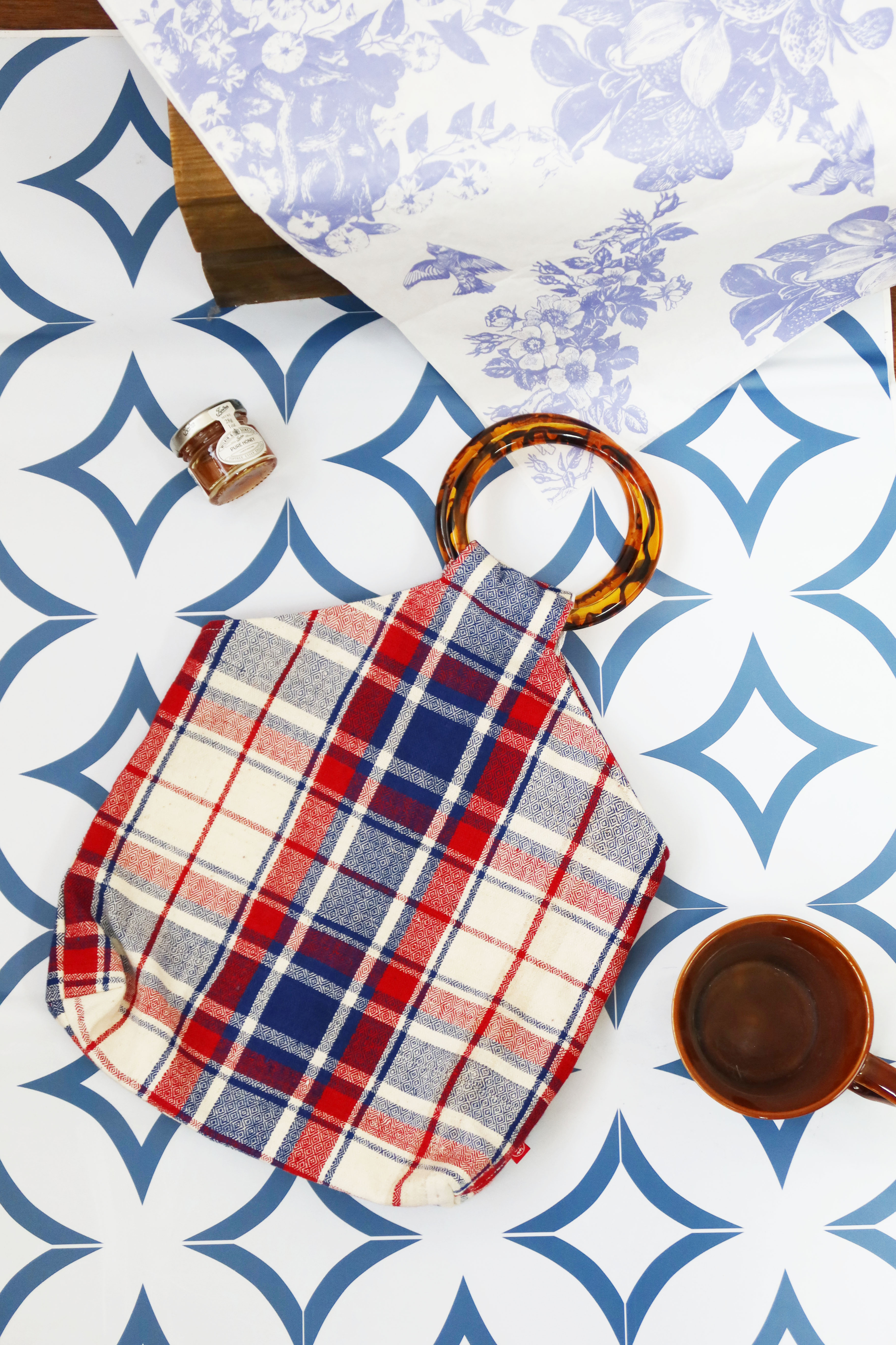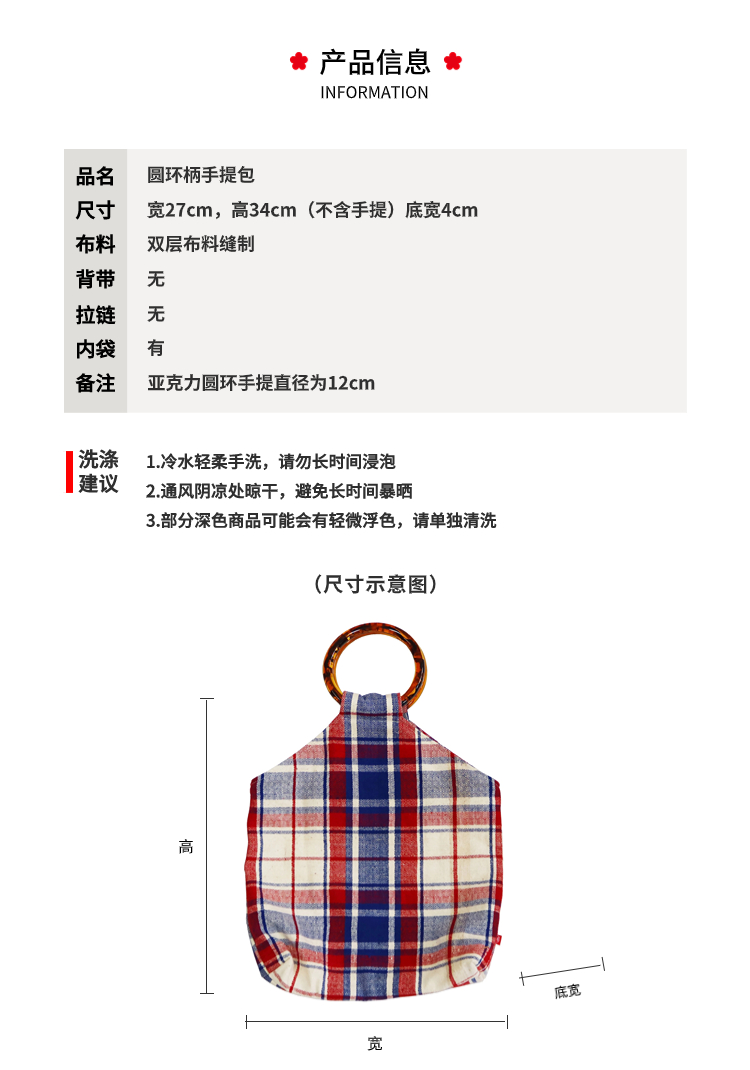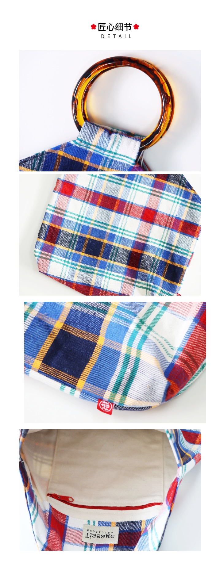 HUJI祤集Amber手提包老布TISSAGE格纹手织布