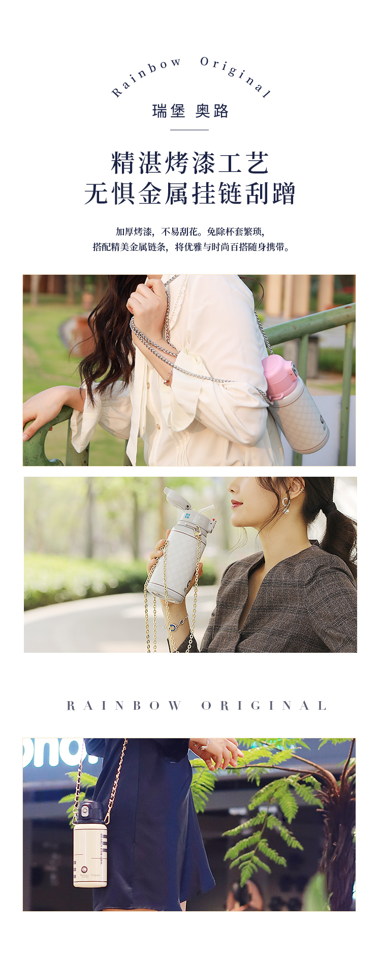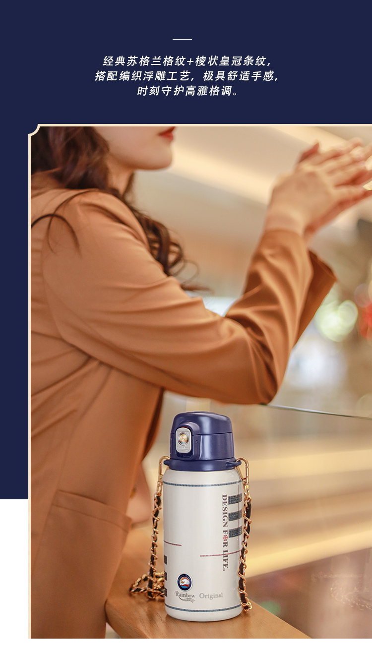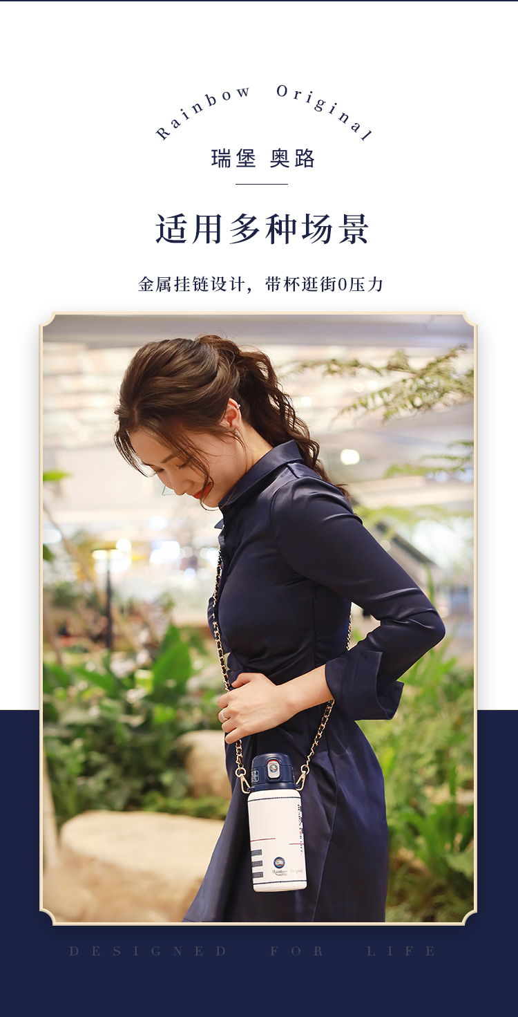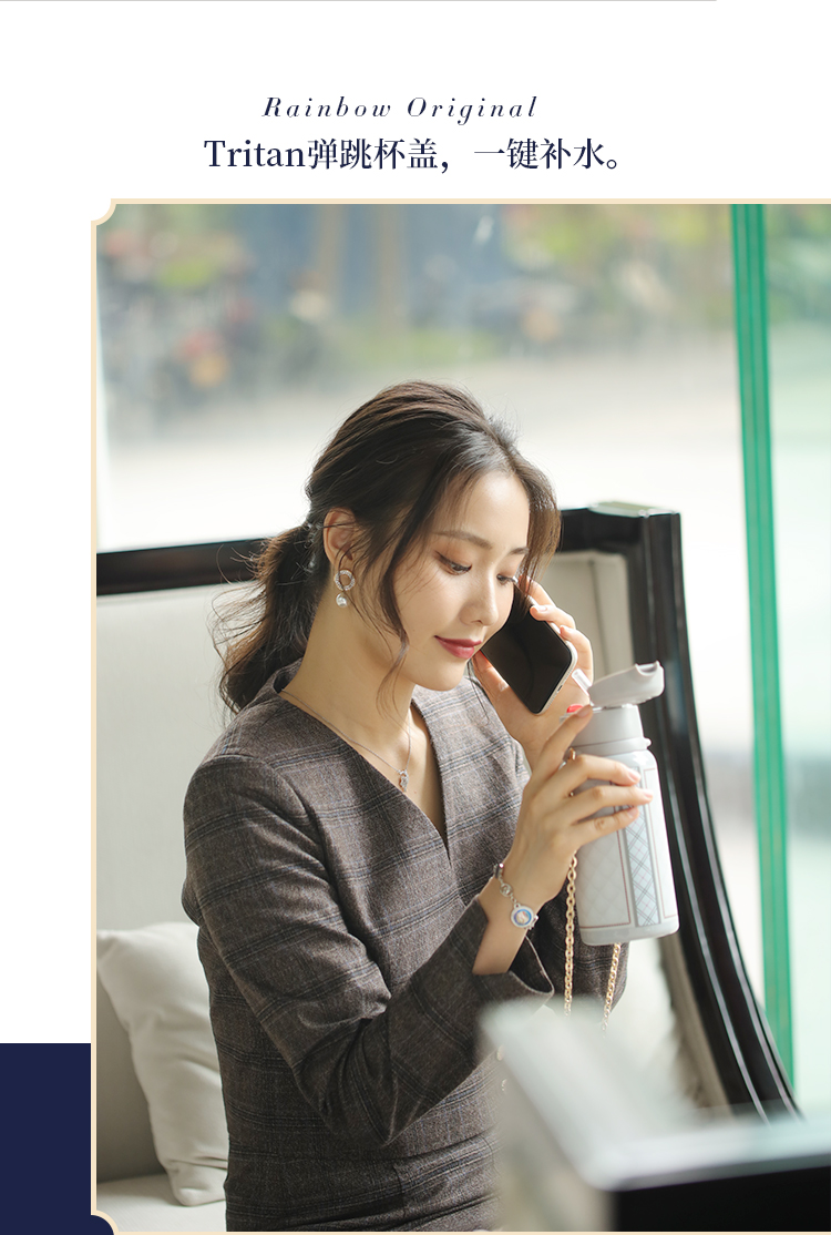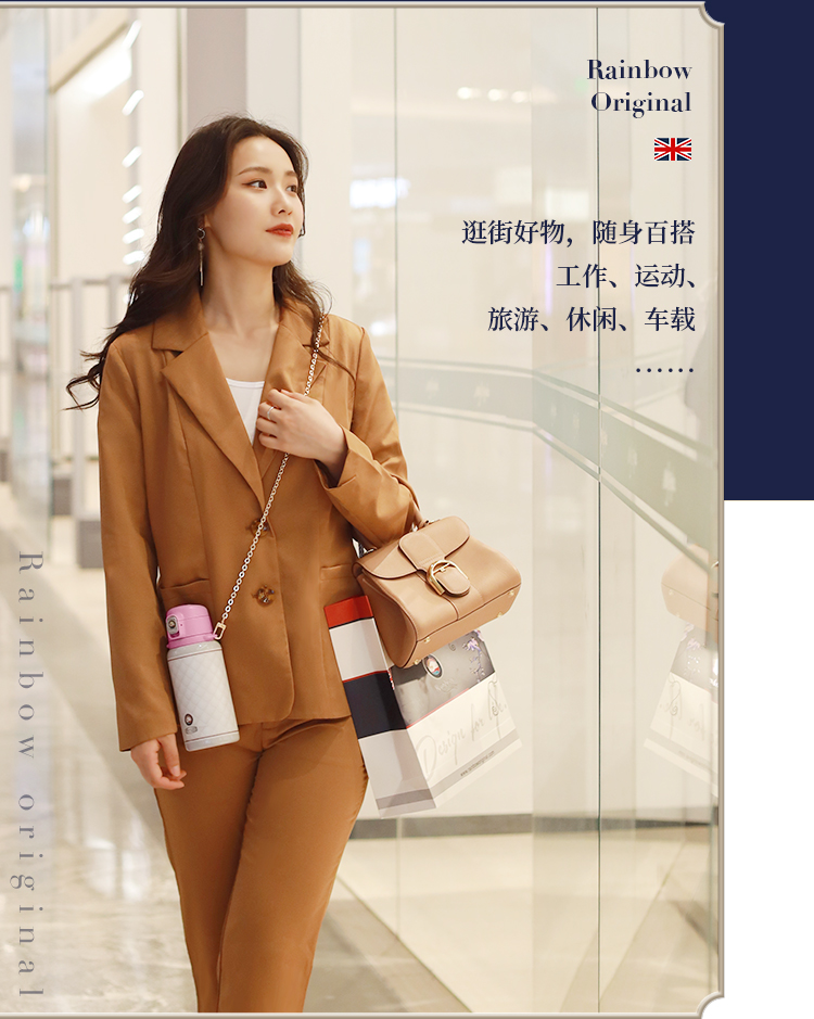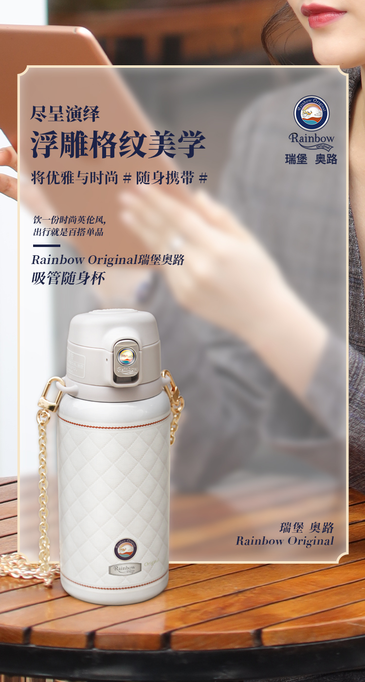 瑞堡奥路Rainbow Original守护斜跨吸管保温杯KVFAP06-530-天鹅白 英国RAINBOW斜跨保温杯女精致高级316不锈钢高颜值吸管式保温杯送礼 节日