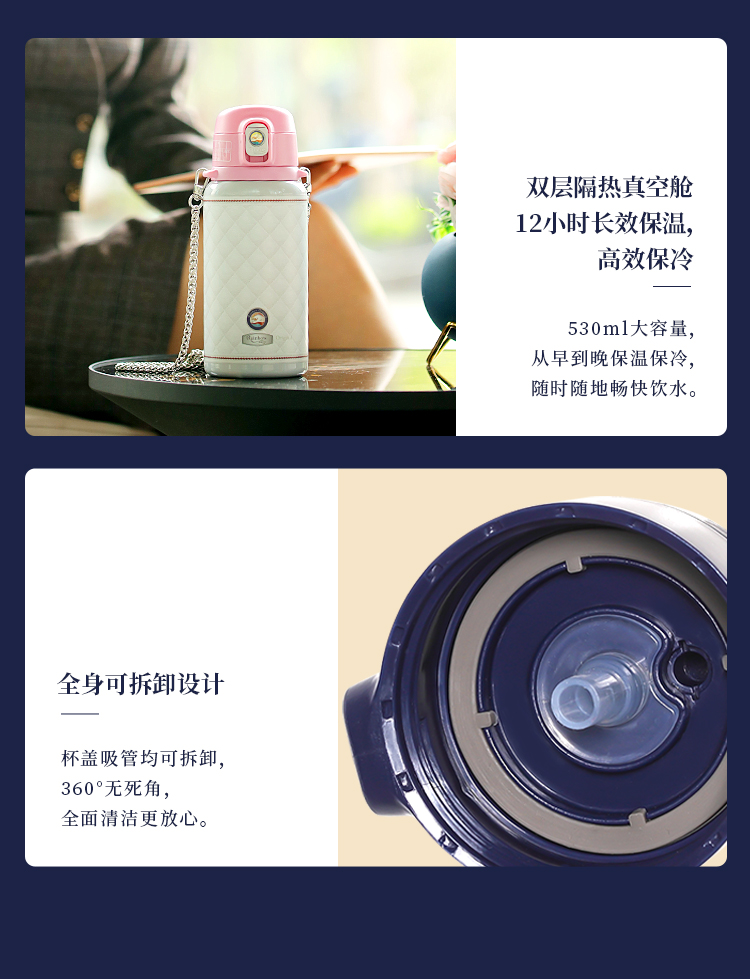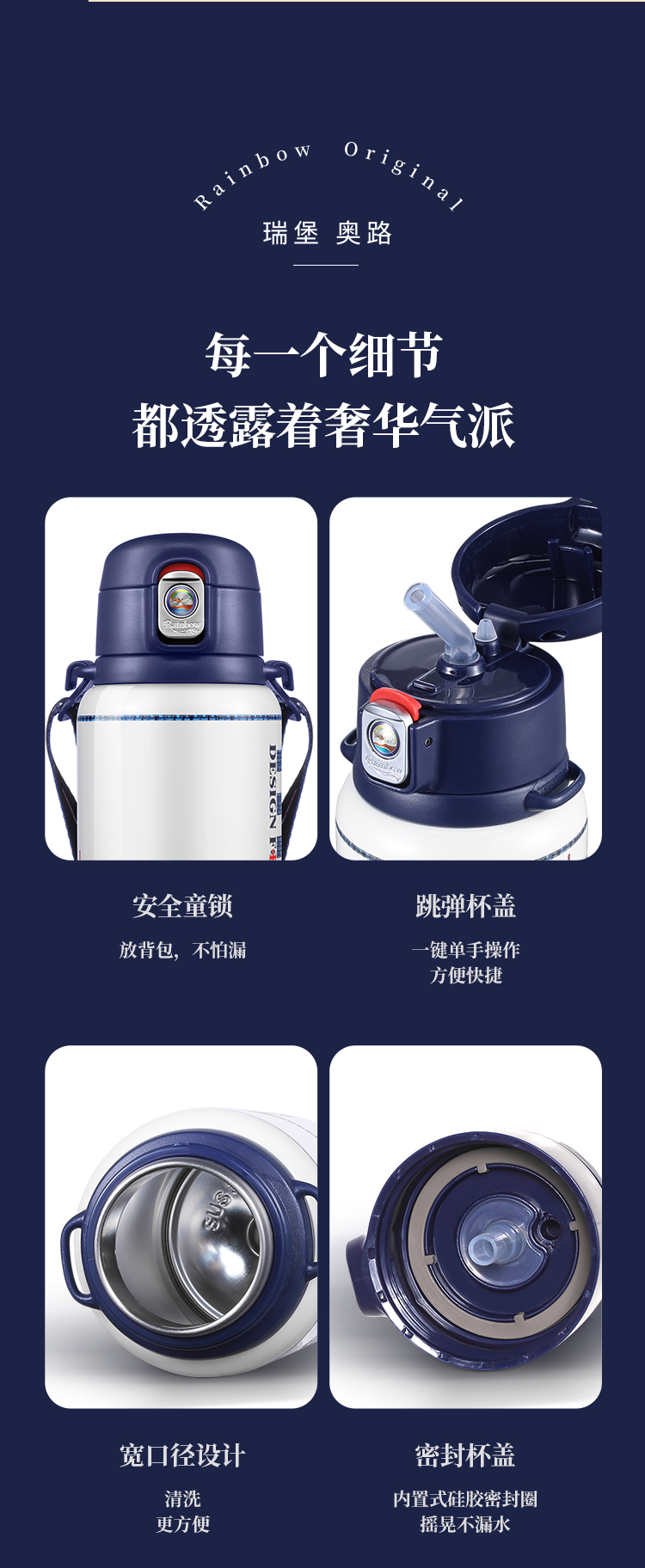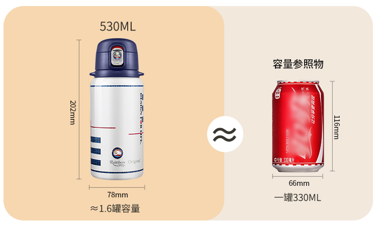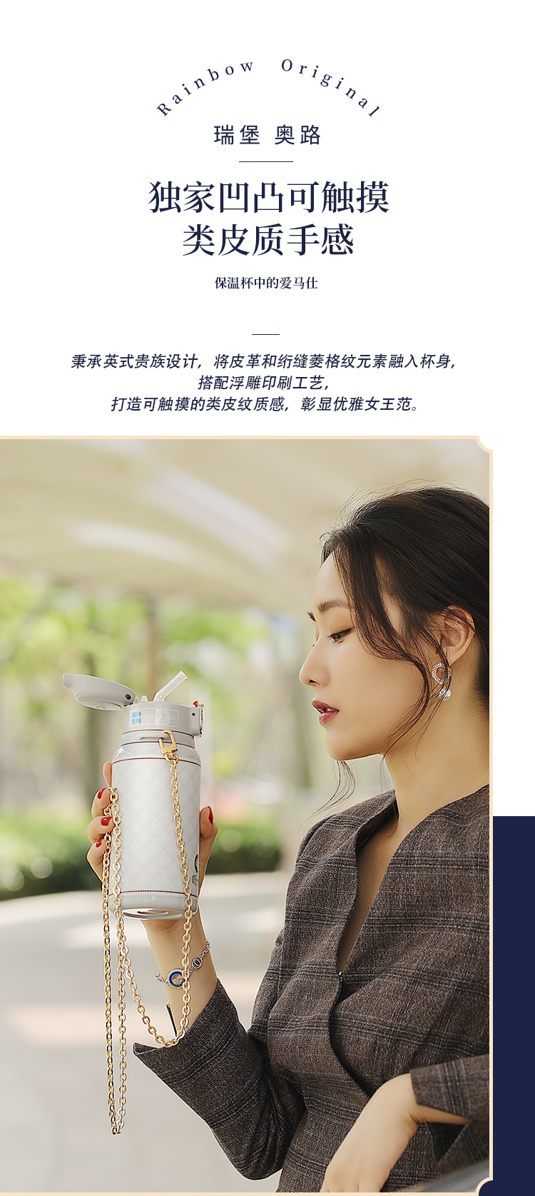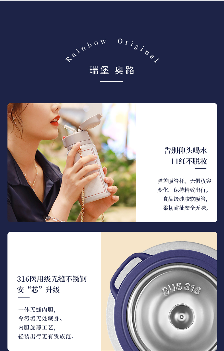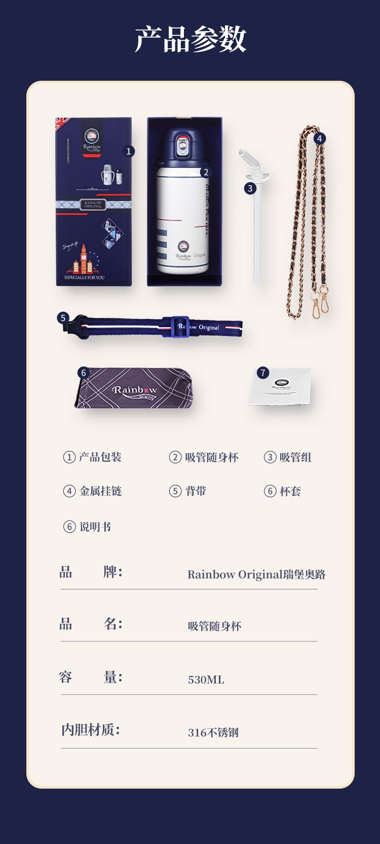 瑞堡奥路Rainbow Original守护斜跨吸管保温杯KVFAP06-530-天鹅白 英国RAINBOW斜跨保温杯女精致高级316不锈钢高颜值吸管式保温杯送礼 节日