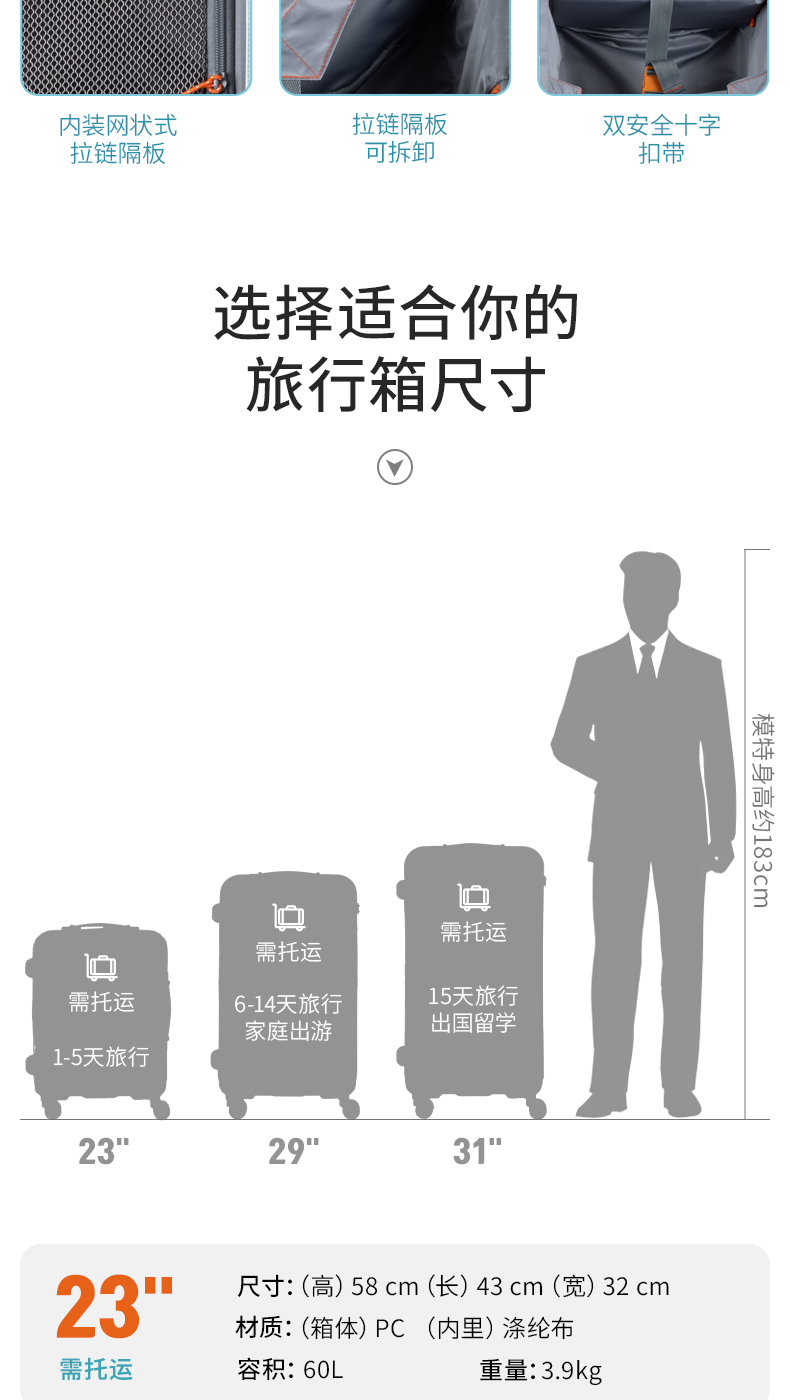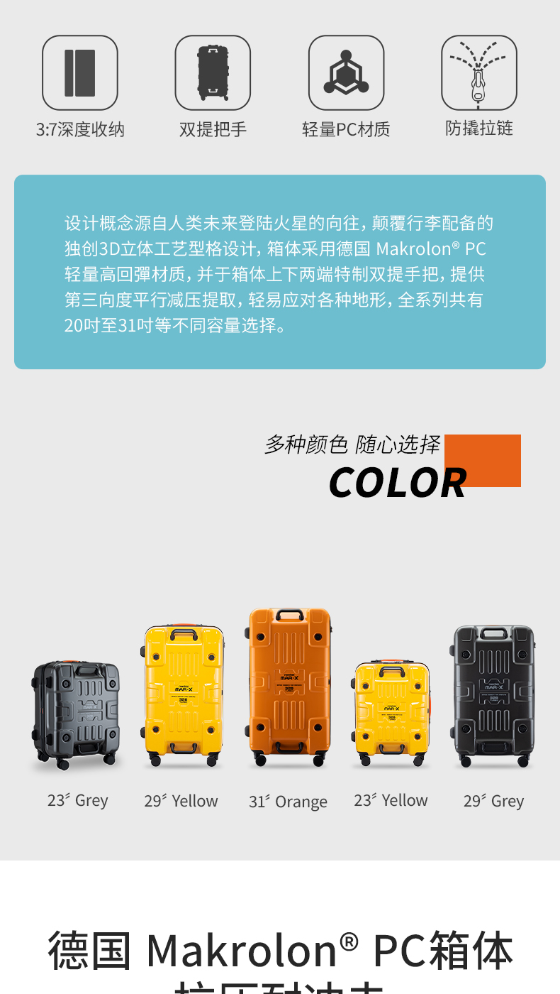 Mendoza Mar-x 328系列旅行箱 旅行箱拉杆箱行李箱男女生PC大容量拉链款