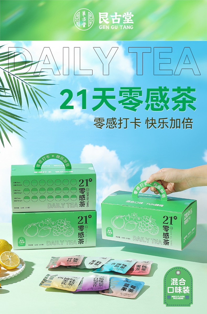 【到手21包】艮古堂21天零感茶 多口味混合装礼盒 冷水热水皆可泡 送:冷水杯1个
