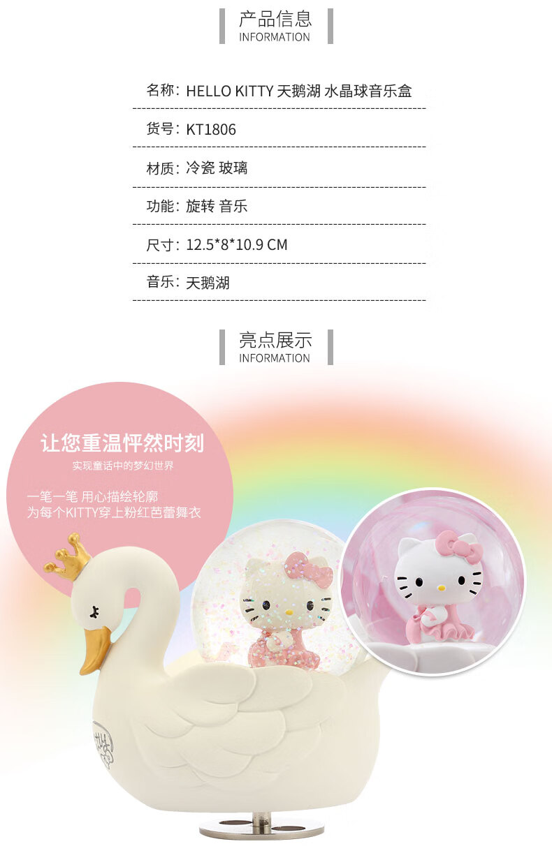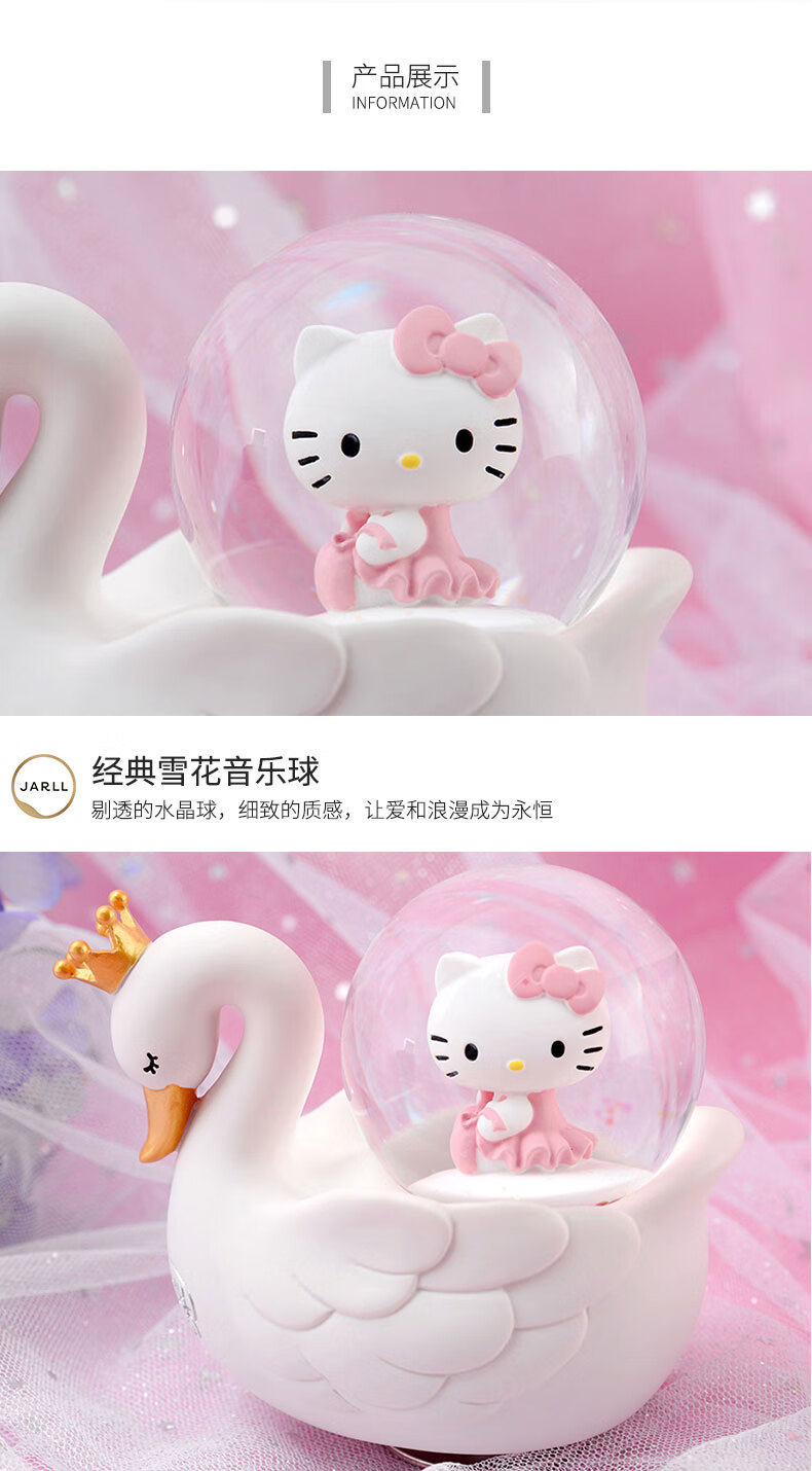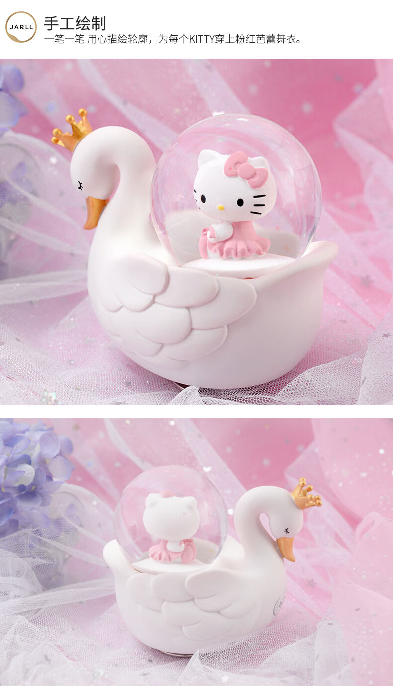 JARLL 65MM Hello Kitty 天鹅湖音乐盒水球 KT1806