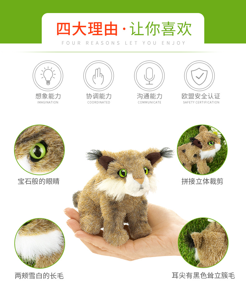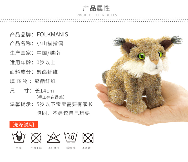Folkmanis Puppets小山猫指套玩具/2740玩偶毛绒玩具礼物