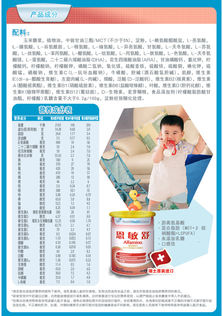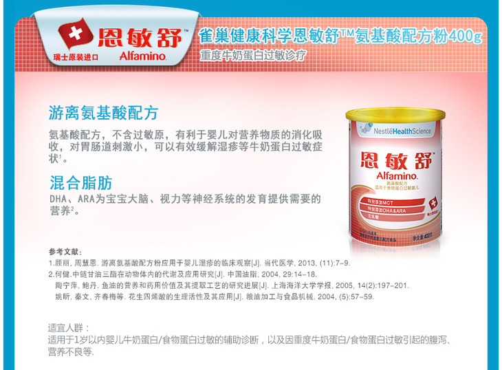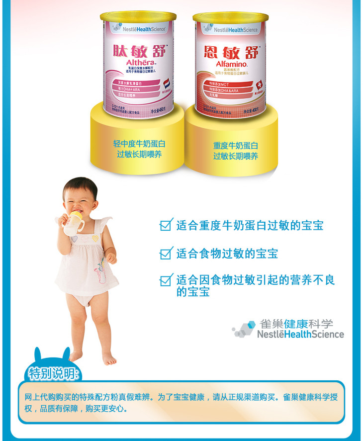 雀巢恩敏舒特殊医学用途婴儿配方食品0-12月龄400克
