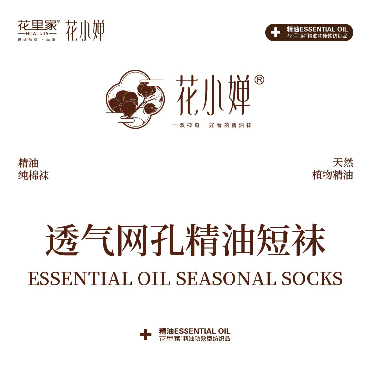 【四季款】花里家设计师款花小婵防臭精油袜网孔短袜5双装