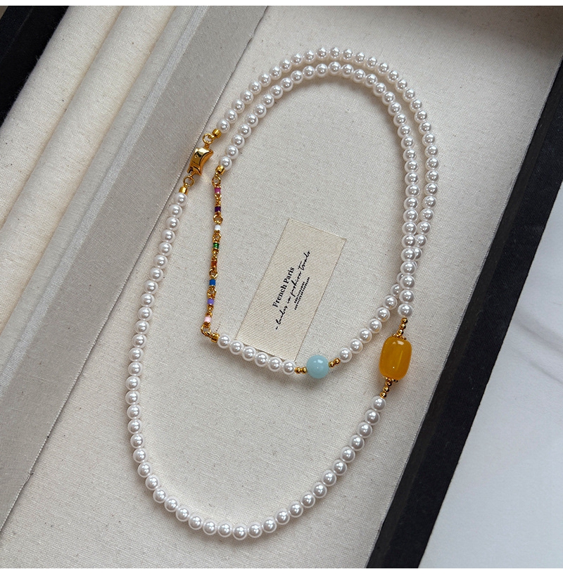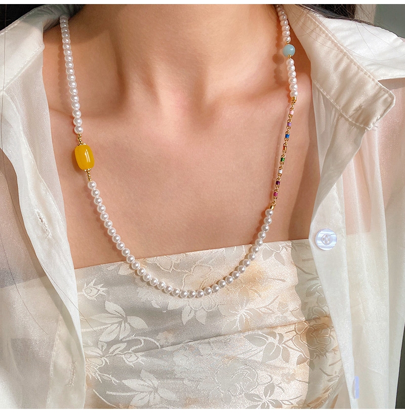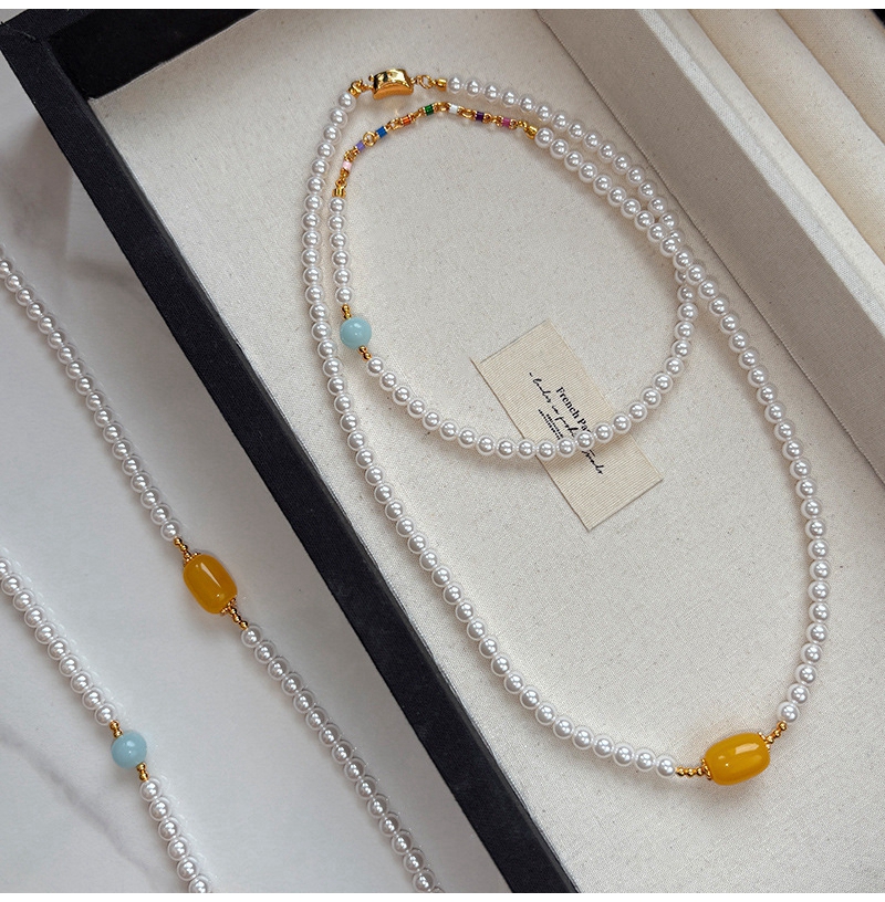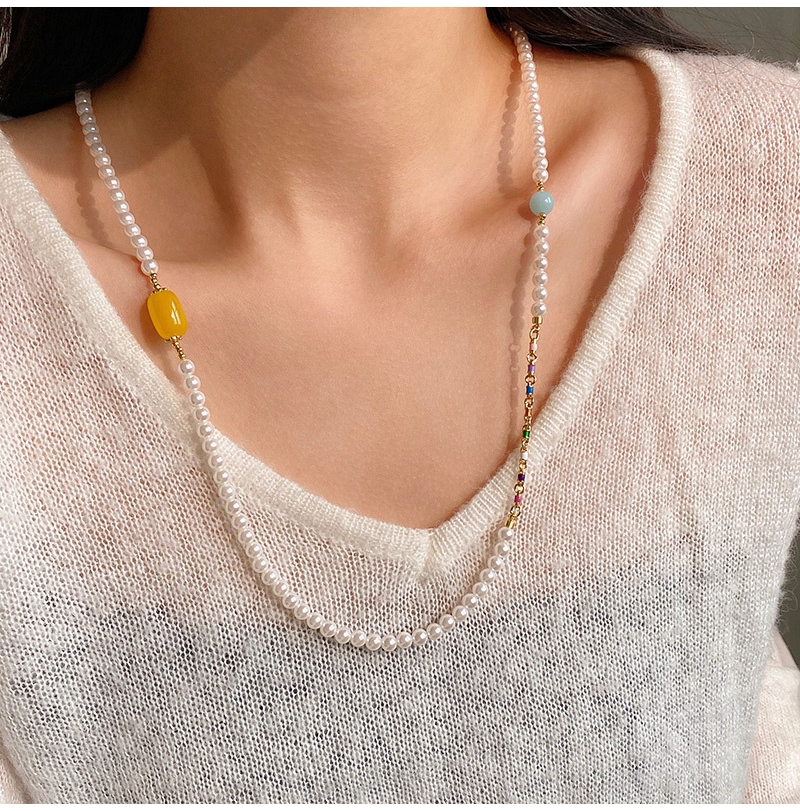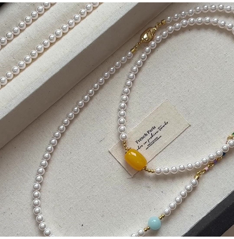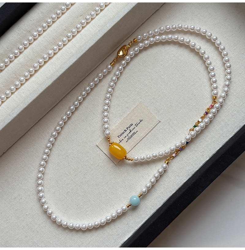 新中式绿色碧玉髓翡翠长款珍珠项链毛衣链