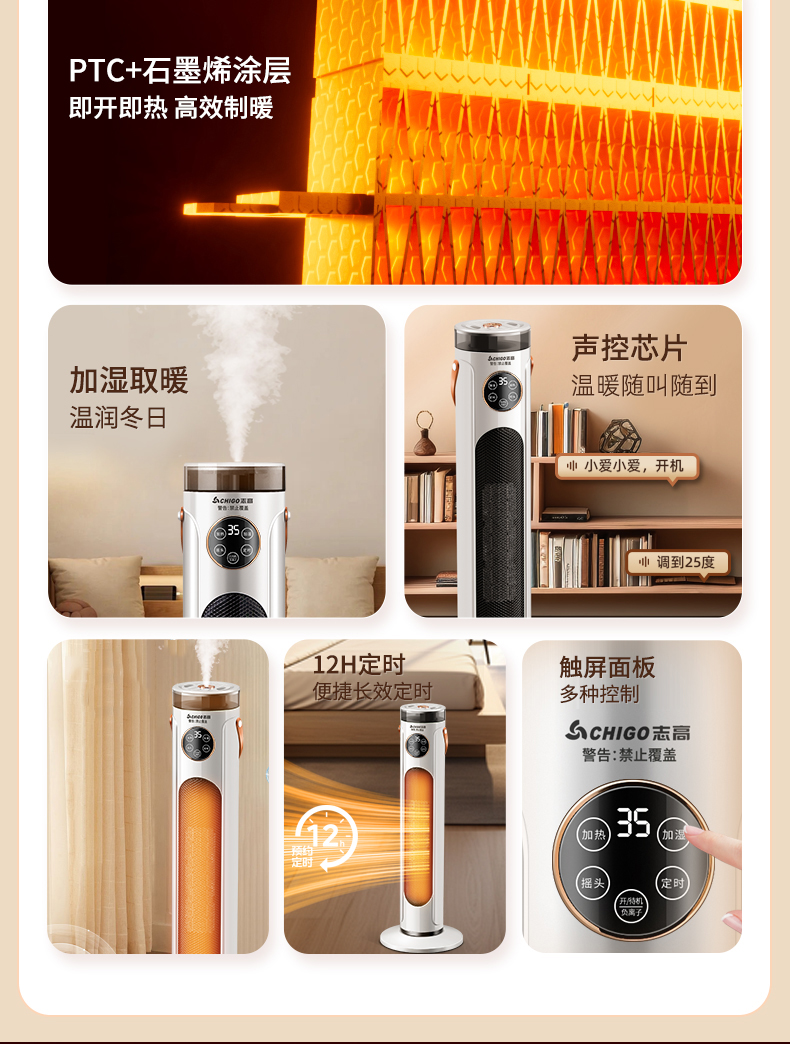即开即暖+大范围送暖,重点是加湿、加热、语音控制功能为一体,保暖同时,嗓子和皮肤还不会干燥。