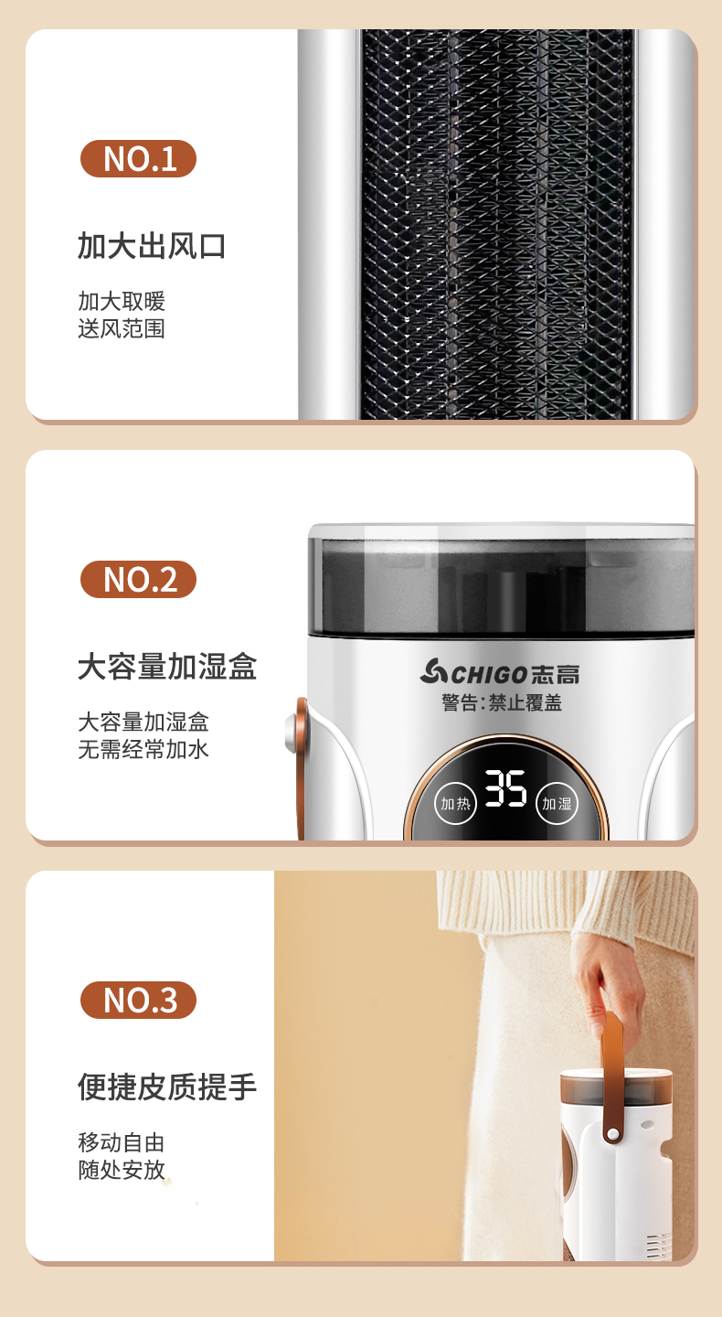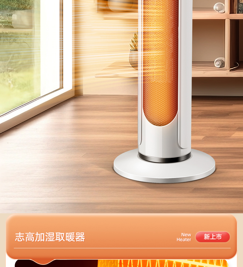 但志高取暖机除了加热外,还拥有聚能环加湿技术,加湿模式下吹出来的风暖而不燥。