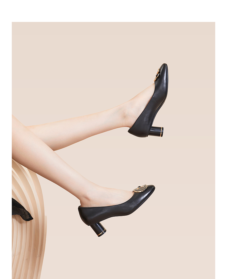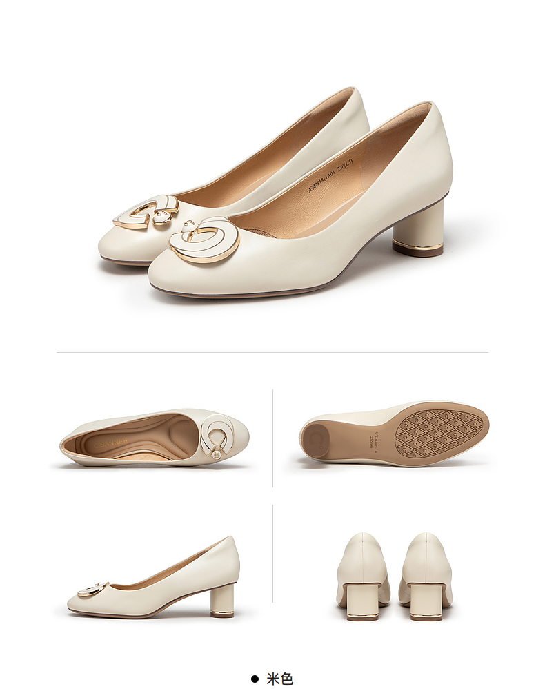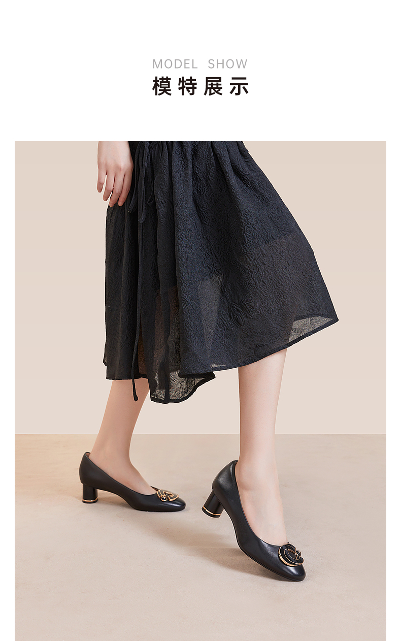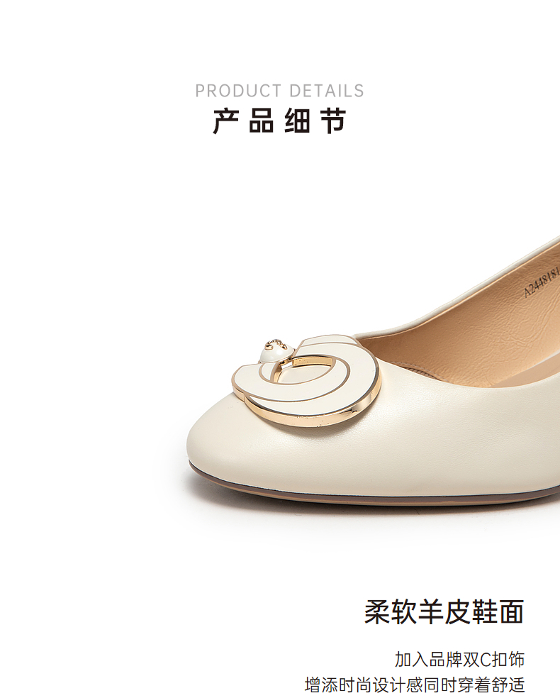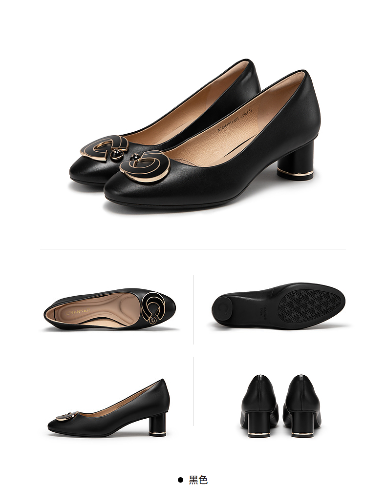【静音系列】千百度粗高跟鞋女款秋季羊皮浅口单鞋通勤A24481811
