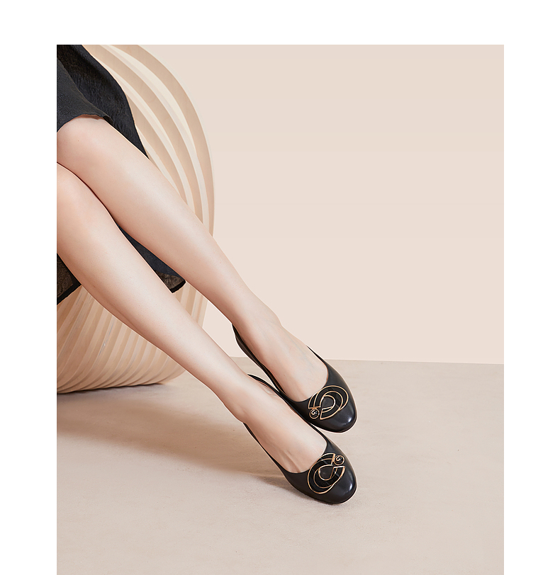 【静音系列】千百度羊皮低跟玛丽珍鞋女褶皱浅口单鞋A25485124