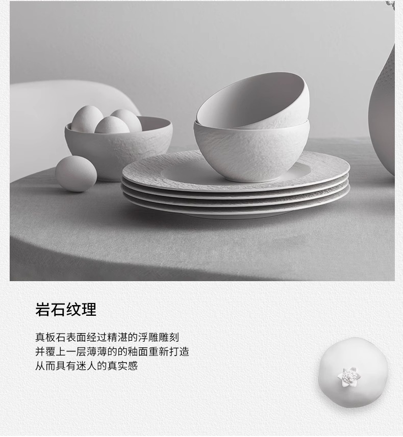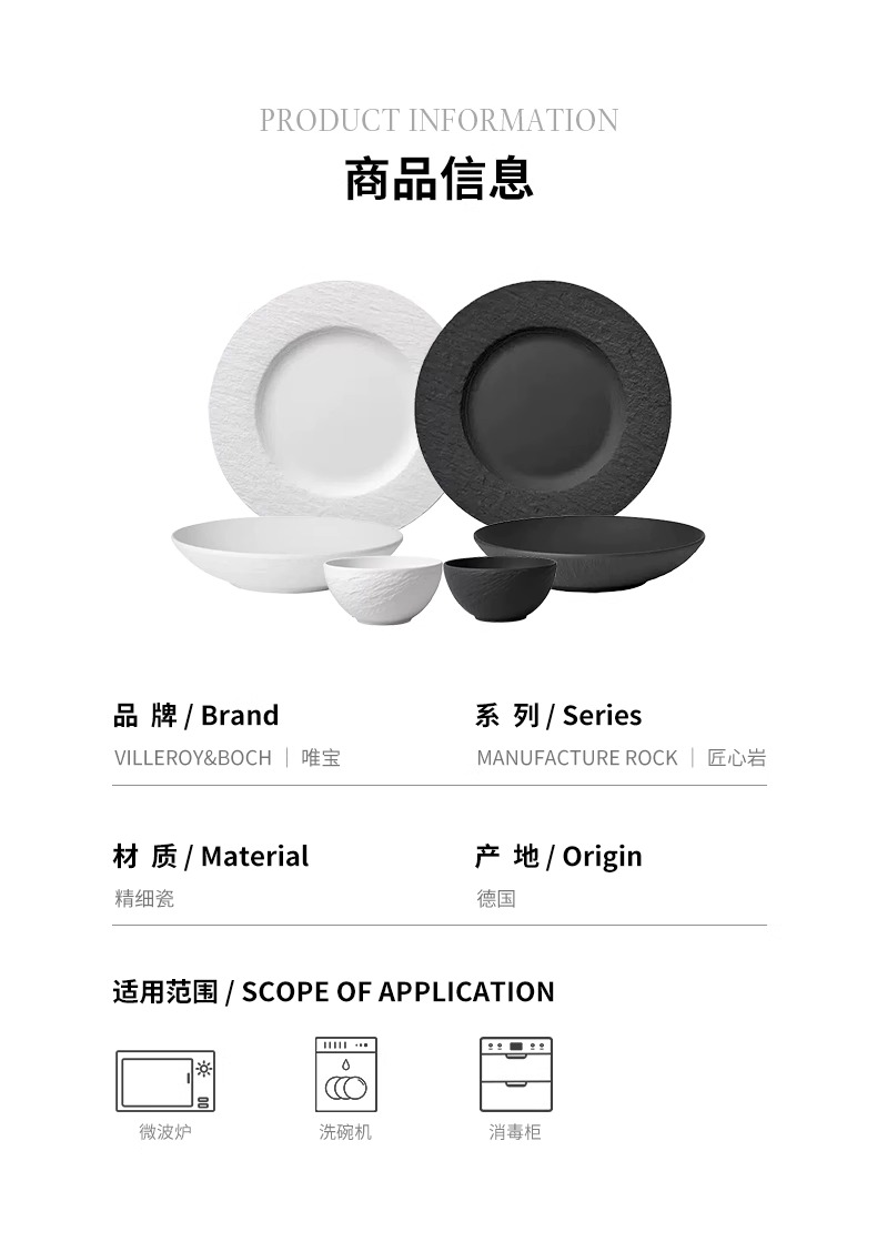 【清仓特惠,仅1套,无货退款】villeroyboch 德国唯宝进口碗盘餐盘家用套装匠心岩情侣新婚礼物唯宝匠心黑岩一人食餐具套装
