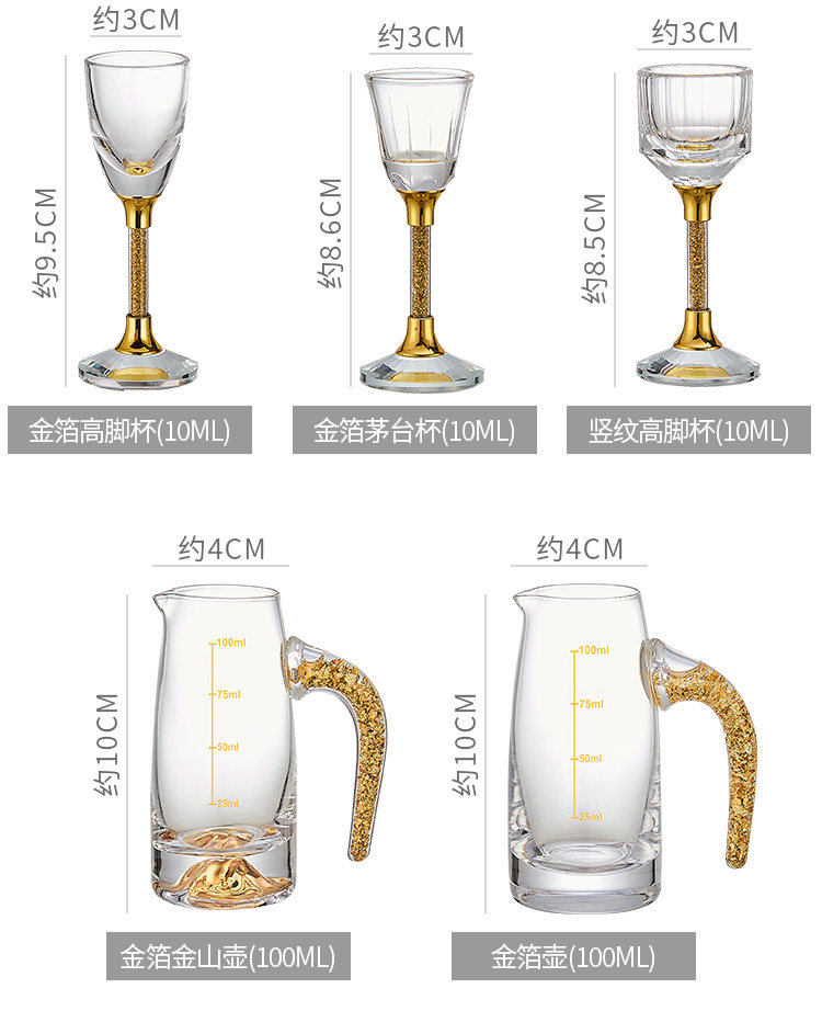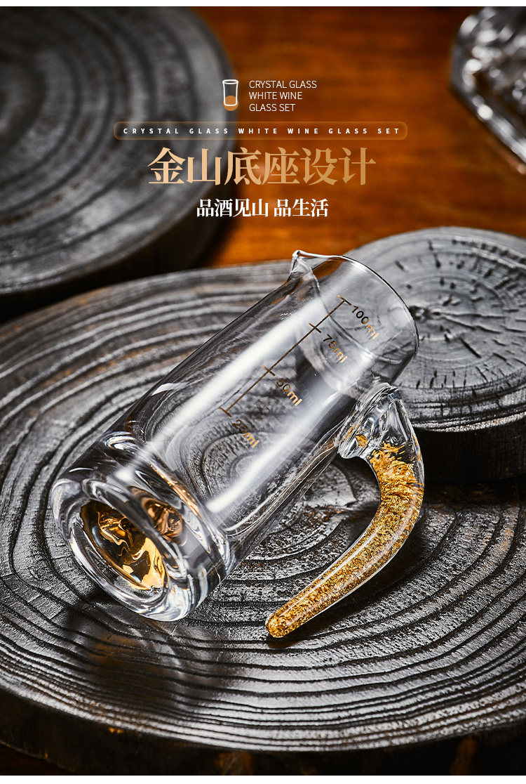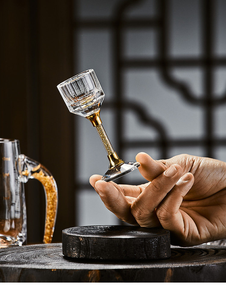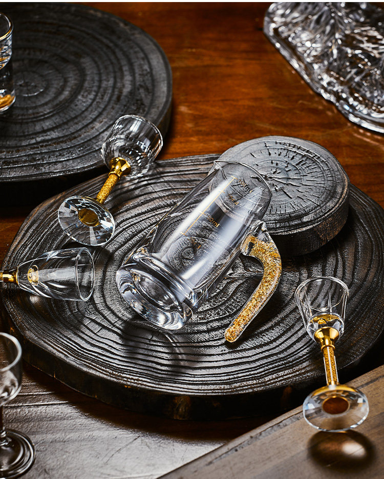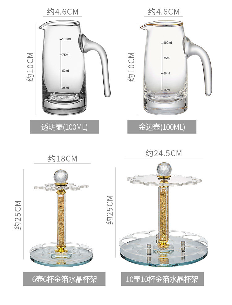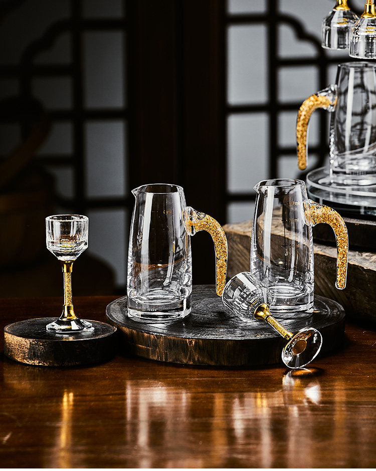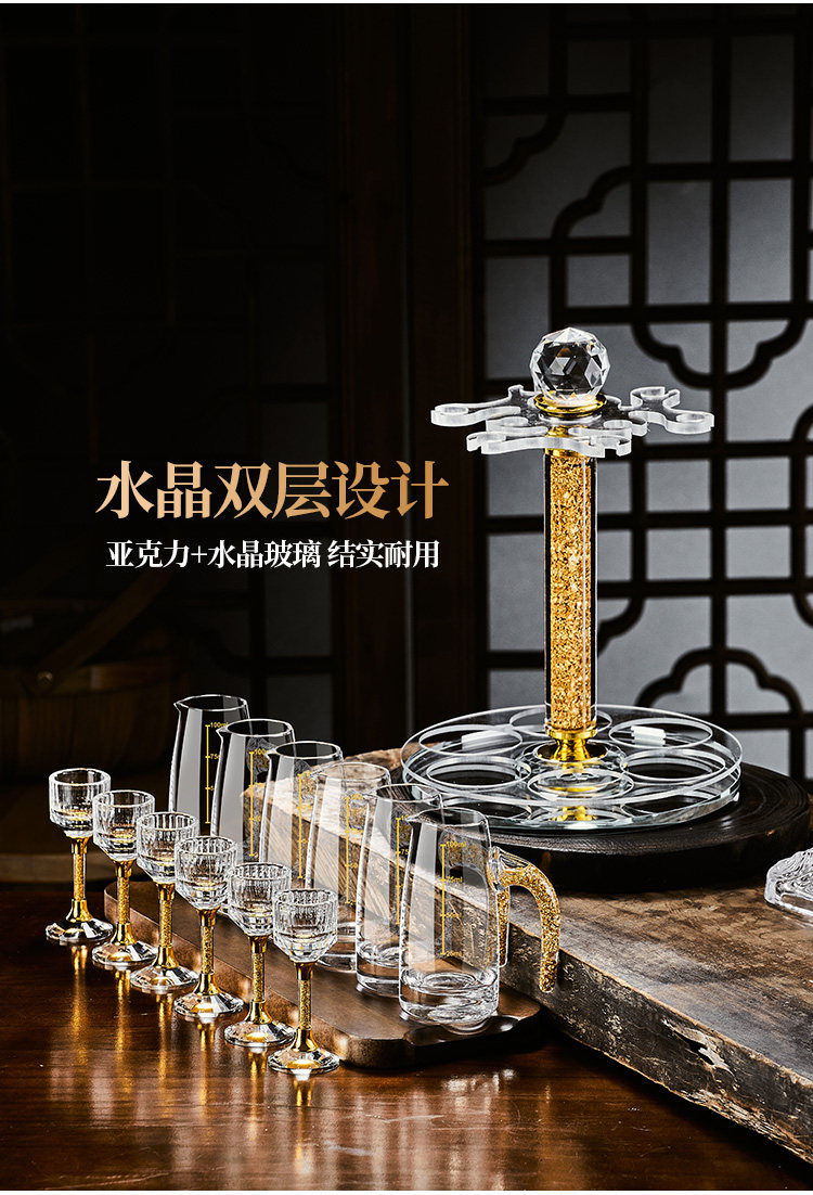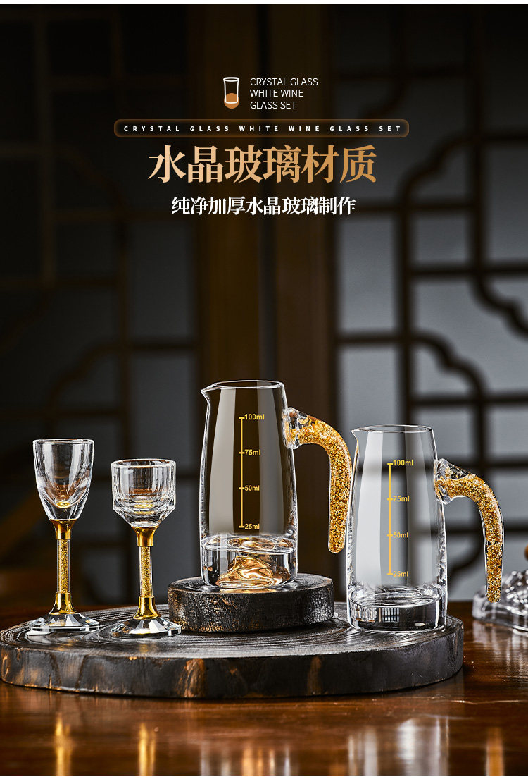 白酒杯轻奢高档玻璃高级感二两分酒器创意酒具套装家用一口杯生活本色金钻白酒具套装10杯10壶+杯架(礼盒装)