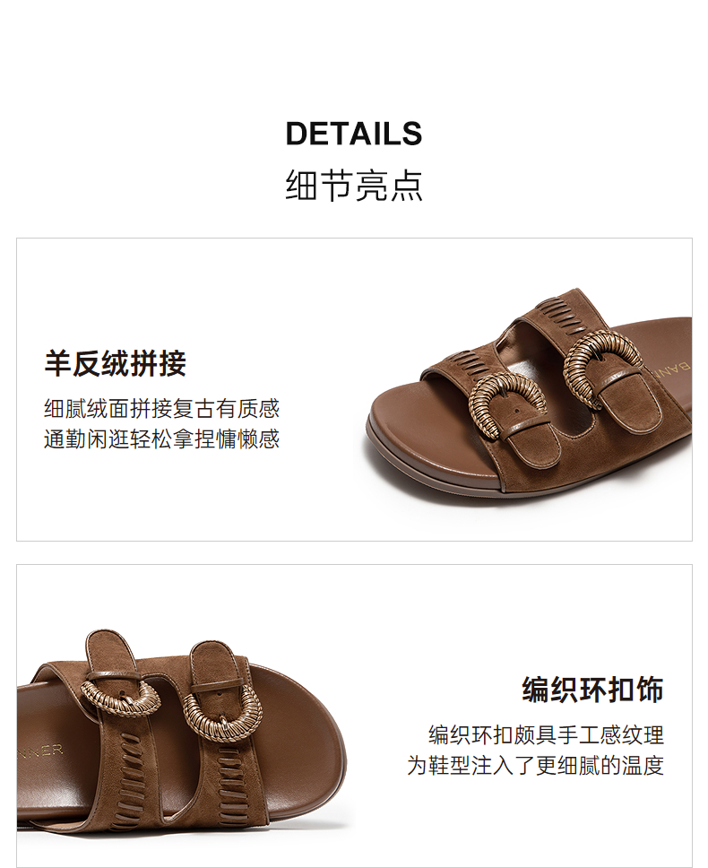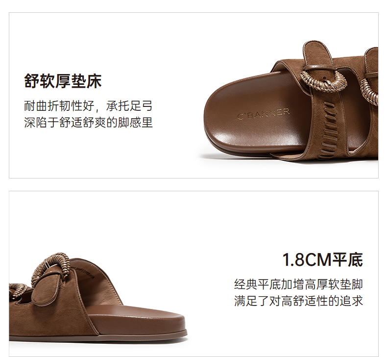 千百度复古全包勃肯鞋女款薄底一脚蹬休闲平底单鞋A25487310