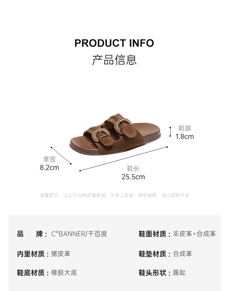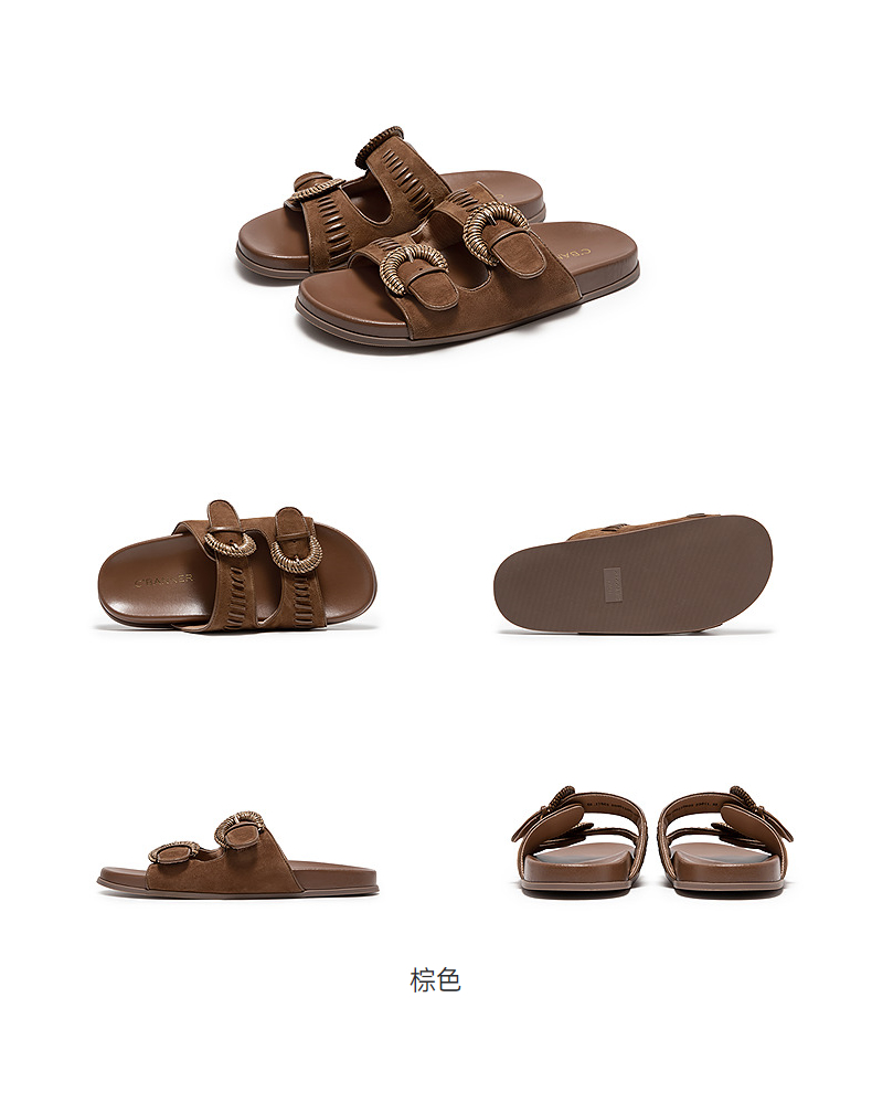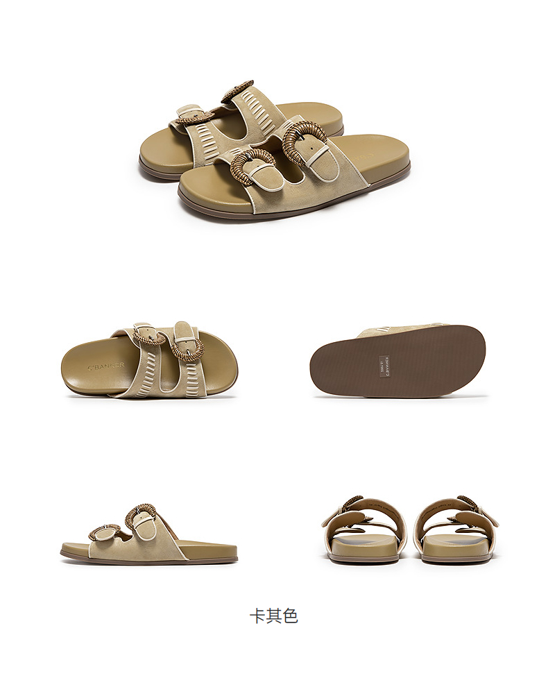 【上新】千百度编织勃肯鞋平底凉拖鞋女2026夏季新款露趾休闲拖鞋A26390210