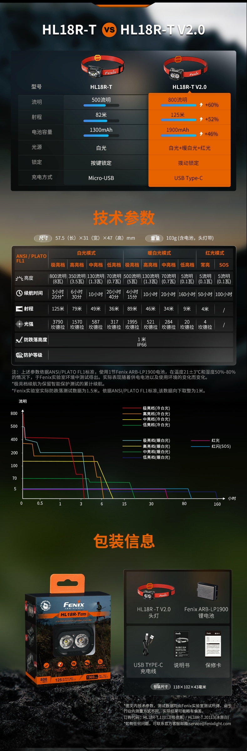 Fenix 菲尼克斯 HL18R-T V2.0 超长续航头戴式越野跑头灯 800流明头灯
