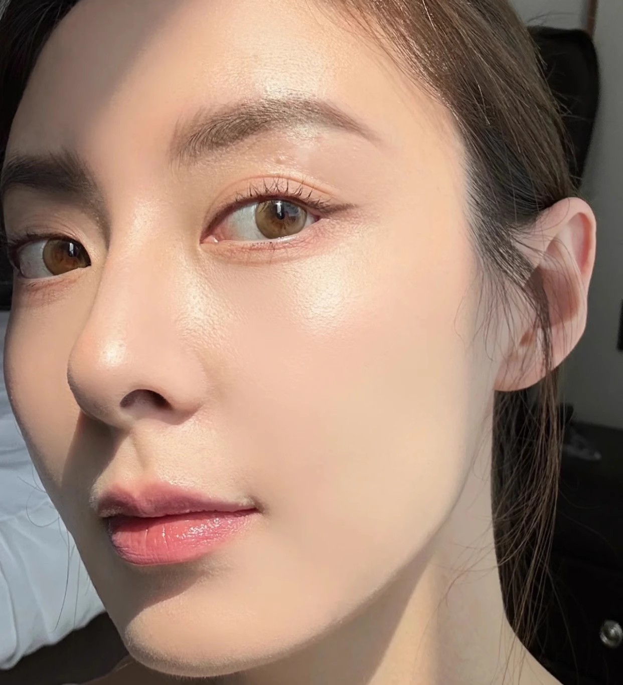 少量多次叠加后的妆感非常清透而又有光泽,妥妥的高光奶油肌,