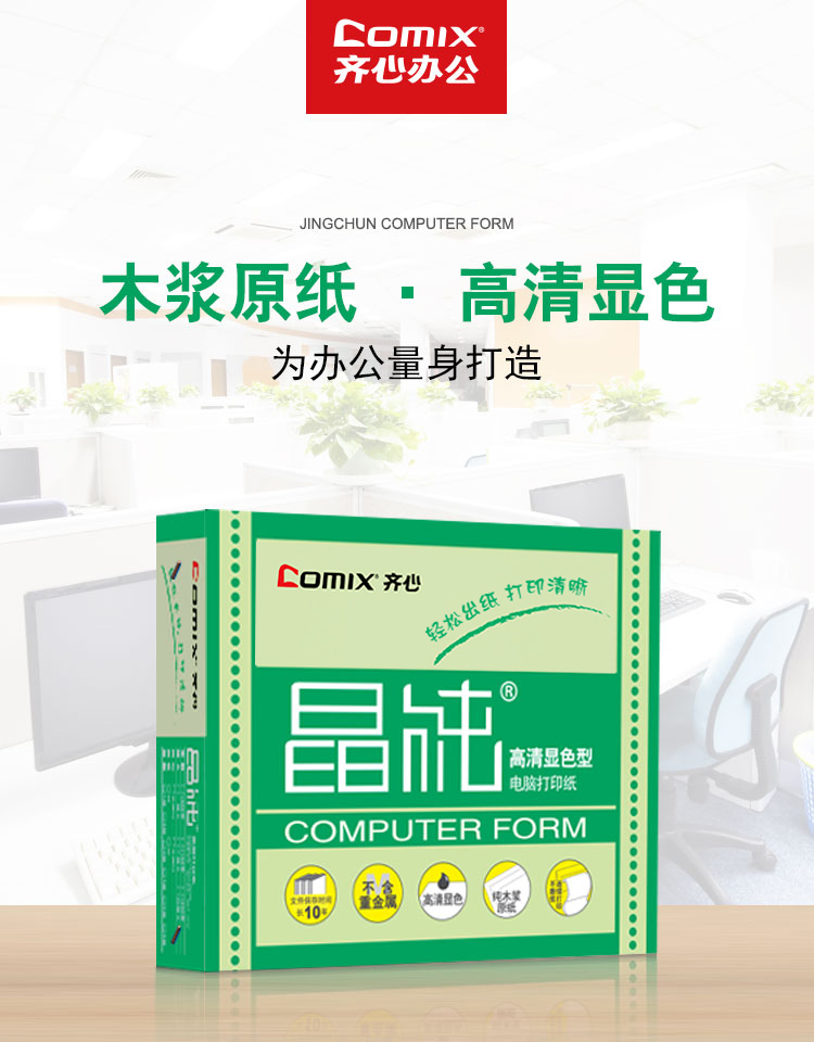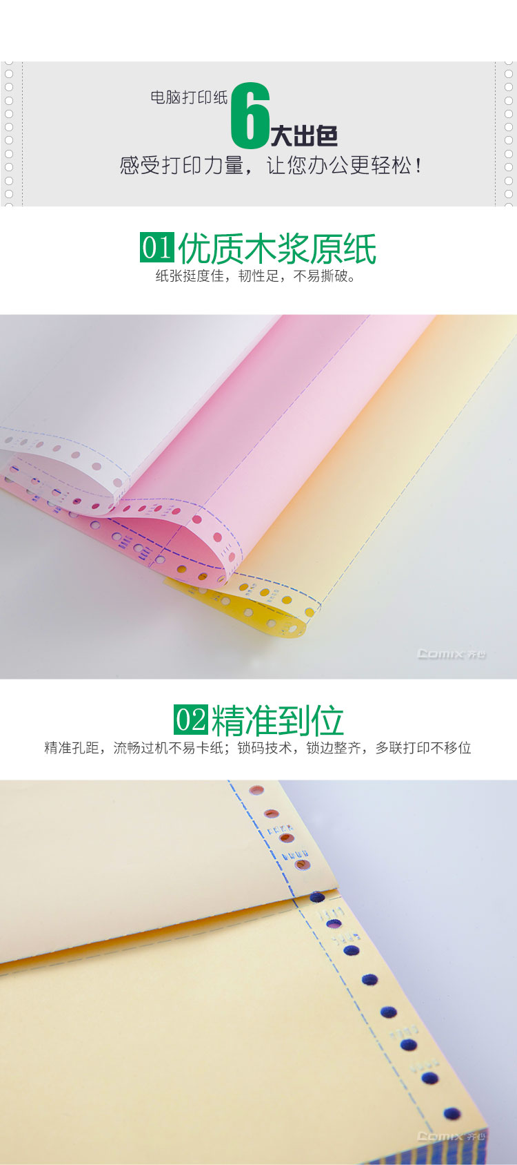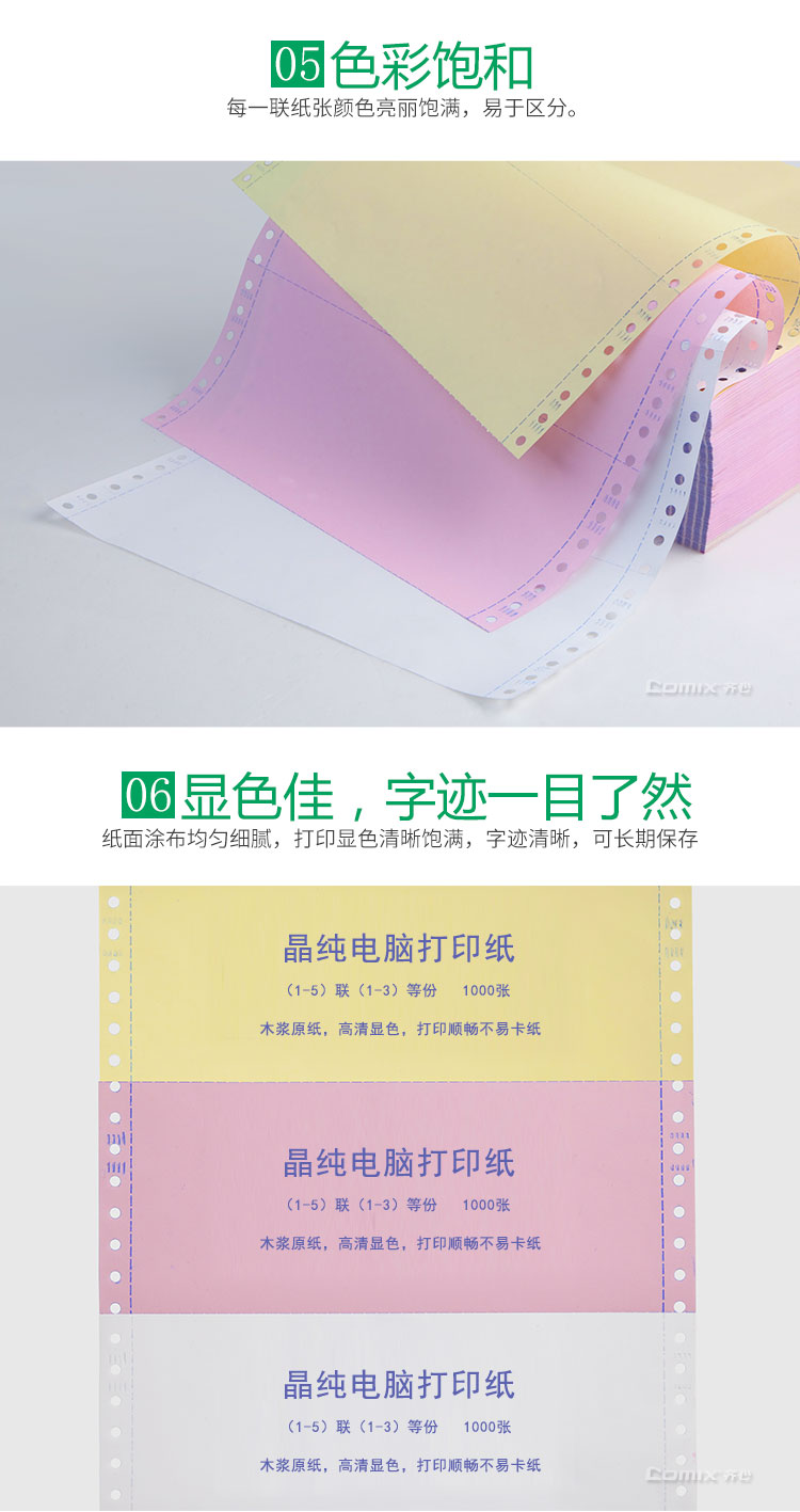 齐心 C6272K 晶纯电脑打印纸241-1 三等份 1000页撕边