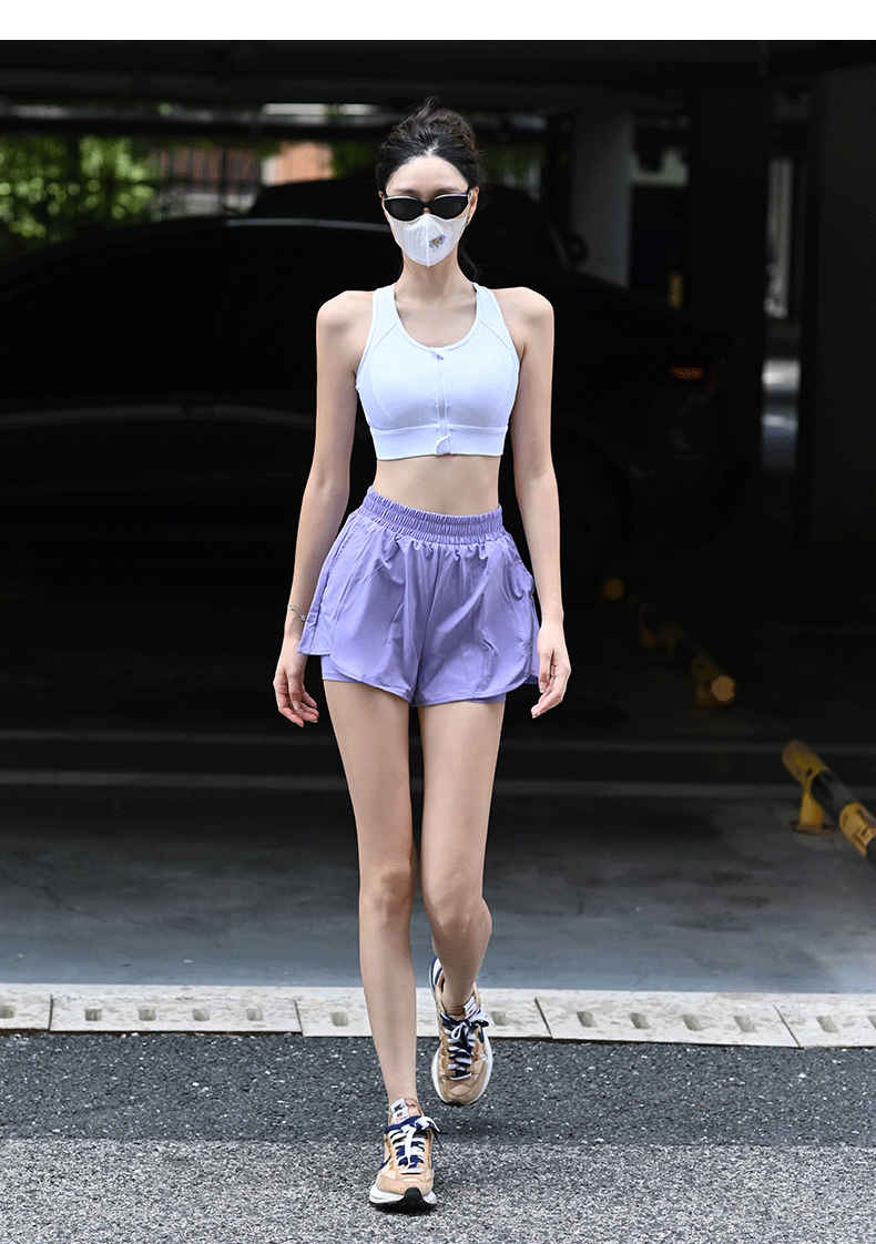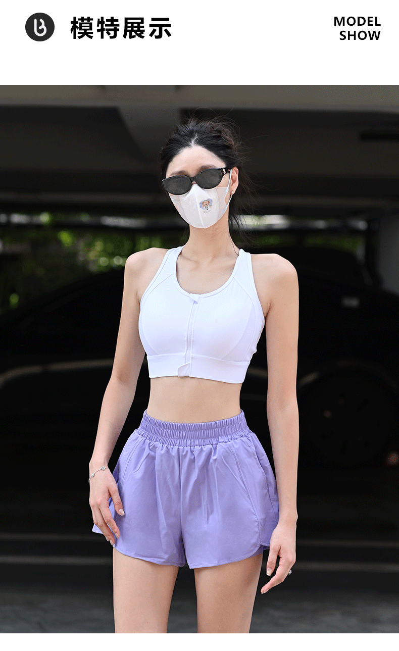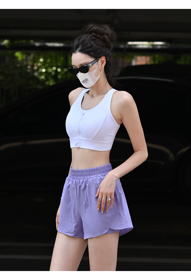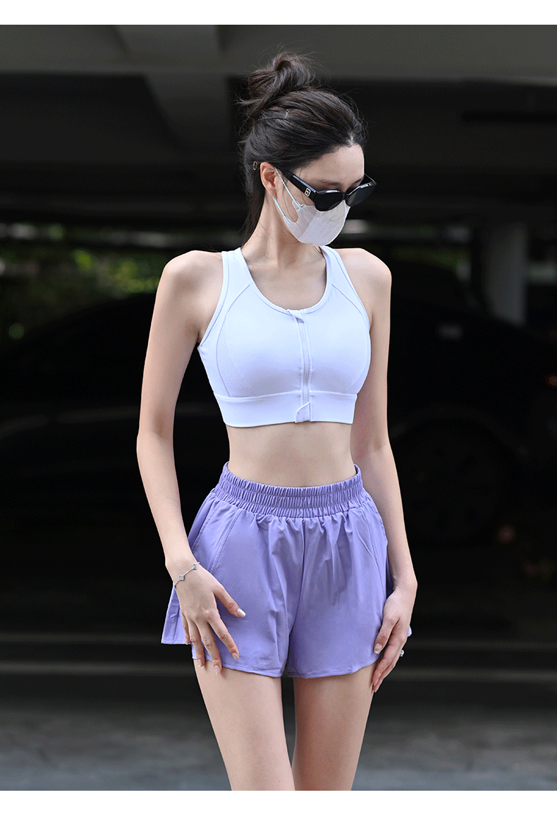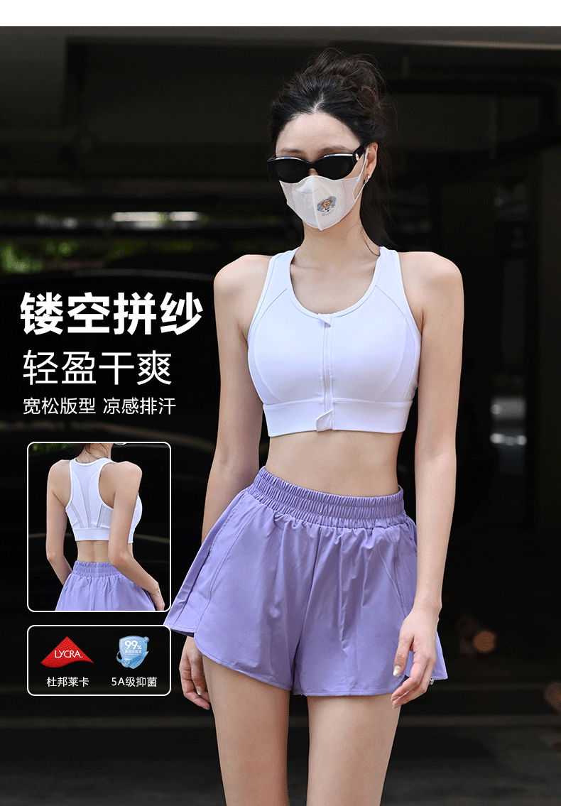 Beemen莱卡抗菌高强度一体杯运动内衣 前拉链防震文胸 工字背网纱透气收副乳 跑步健身瑜伽背心