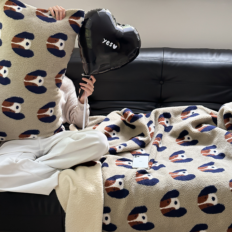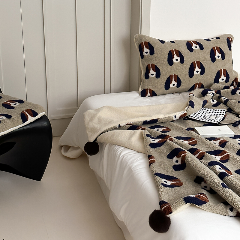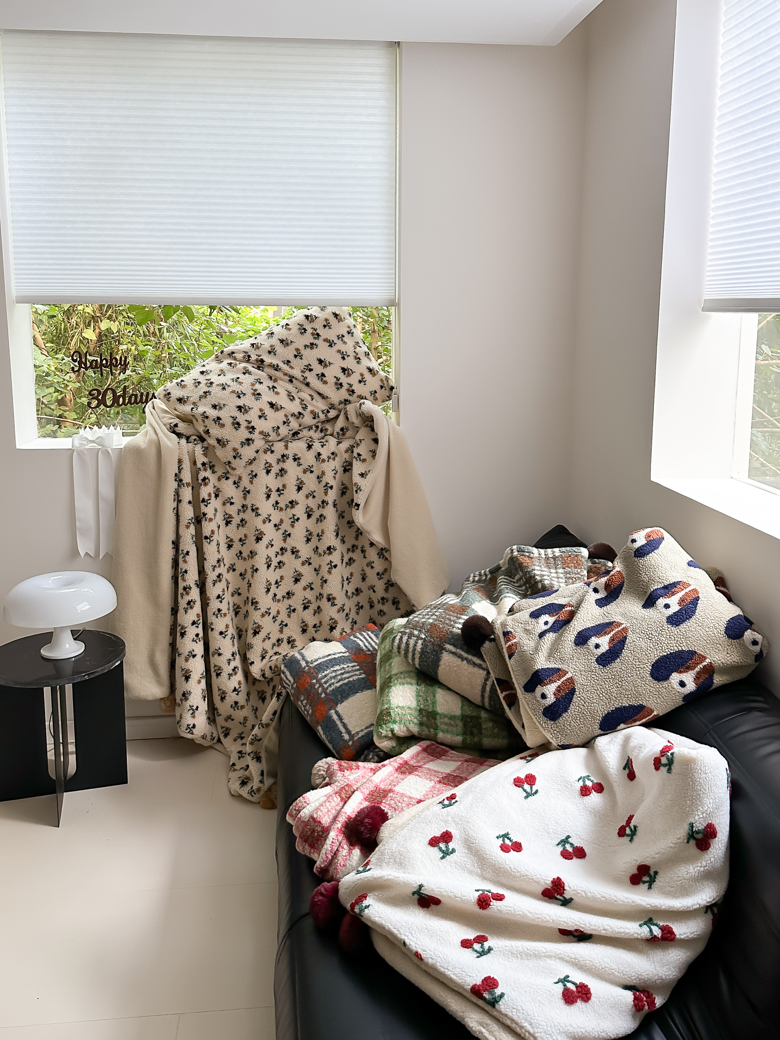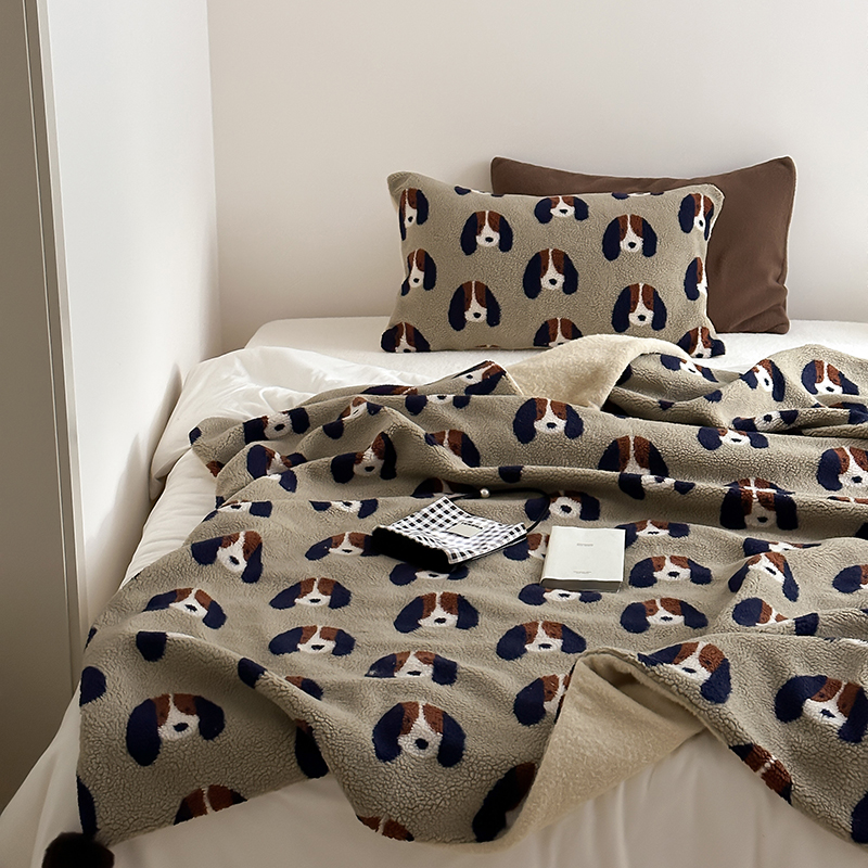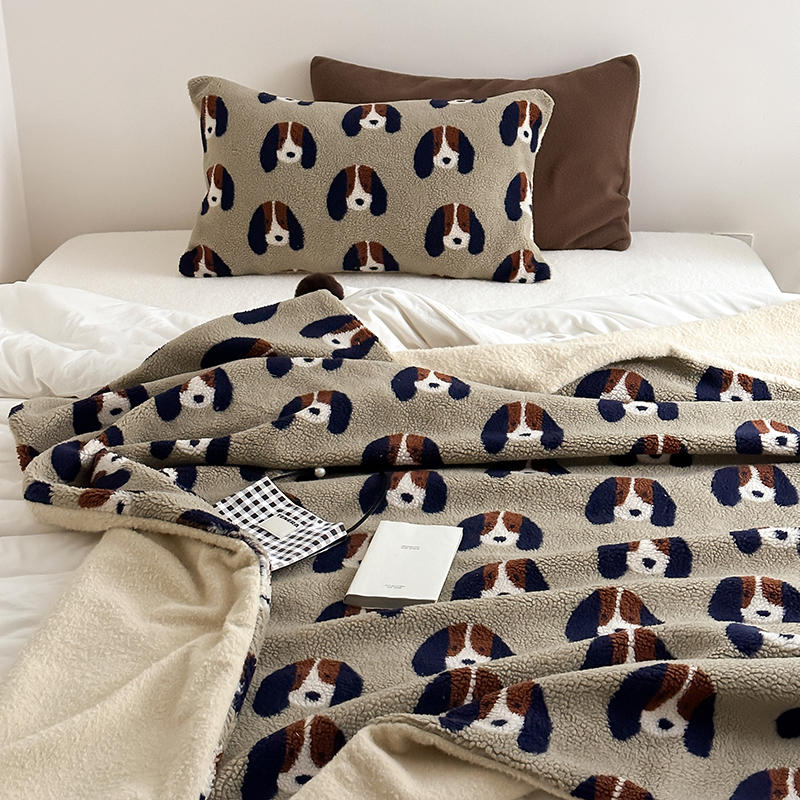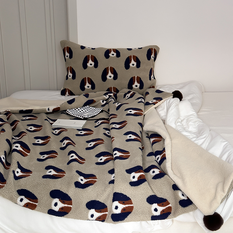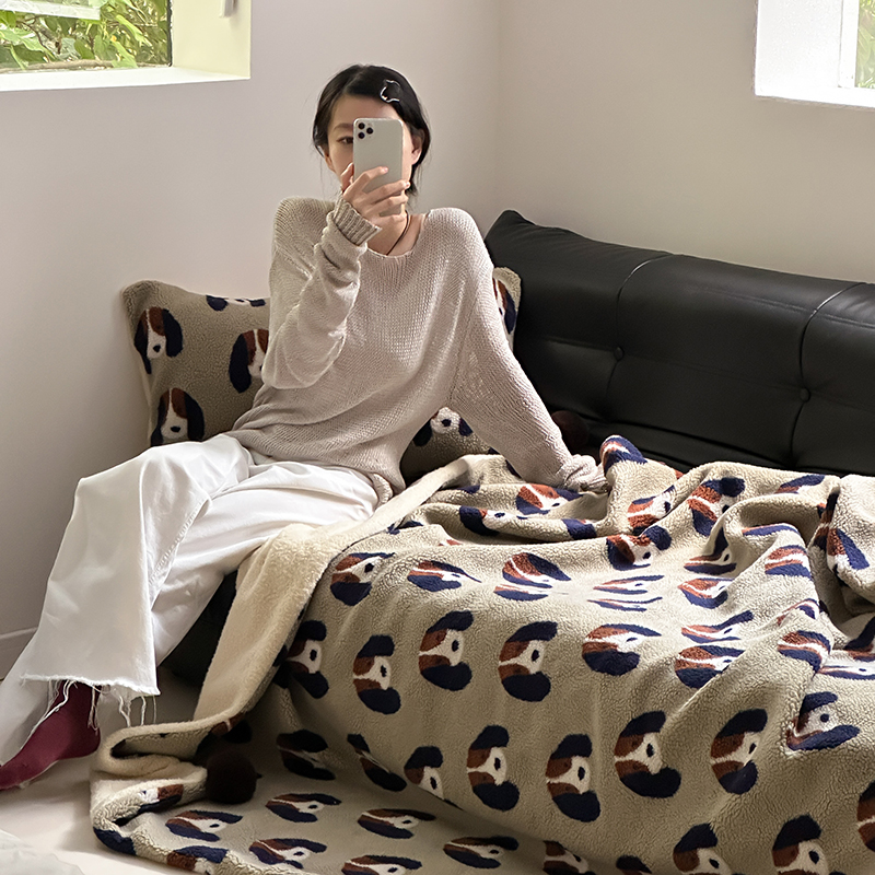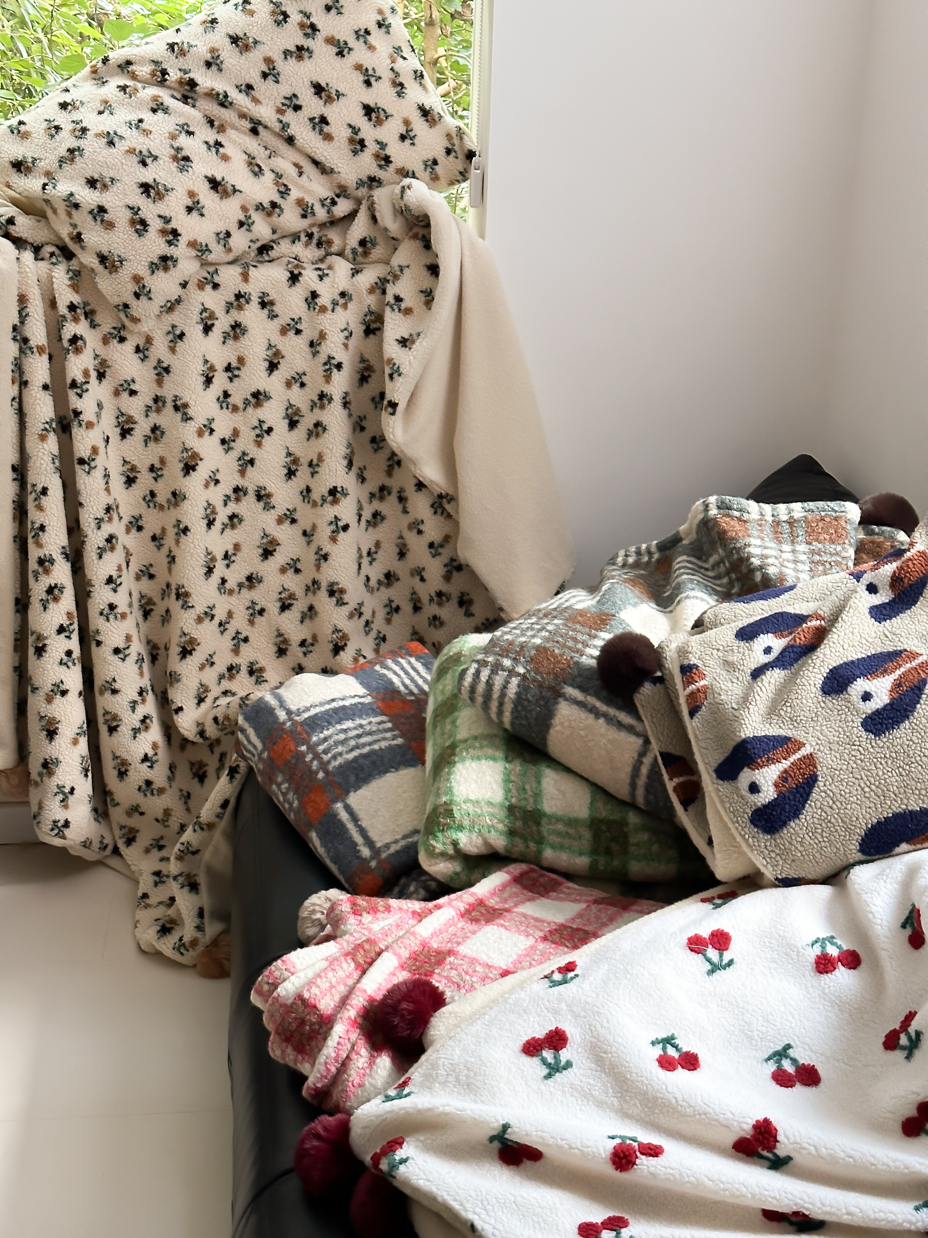 羊卷妮双面盖毯午睡毯复古卡通治愈沙发毯床尾毯车载毯子--米拉小狗*樱桃*小花