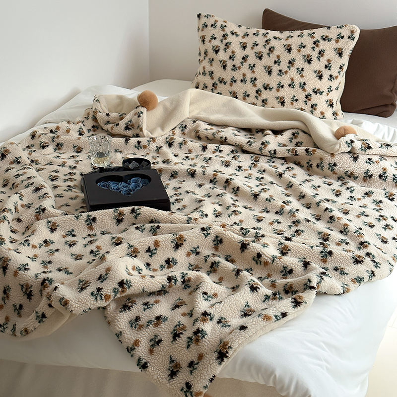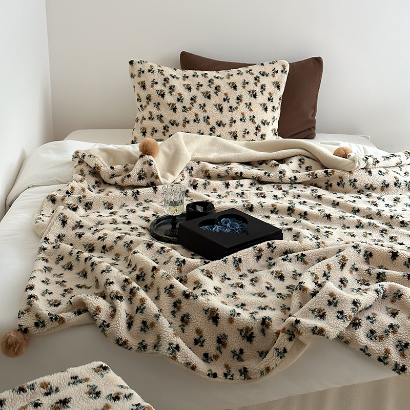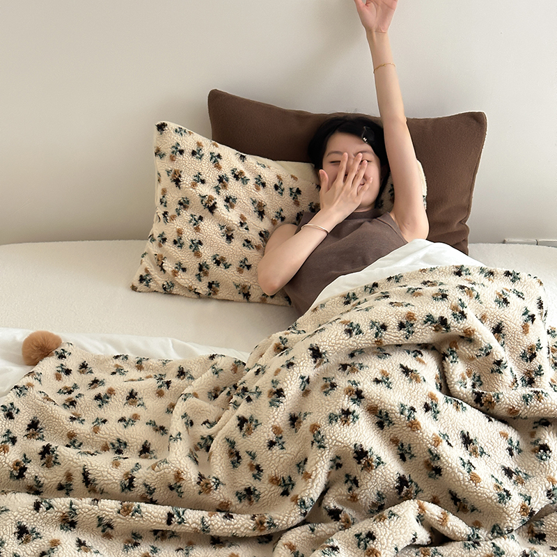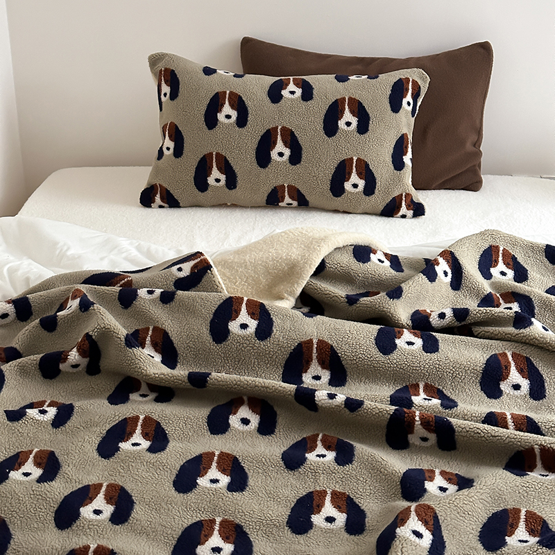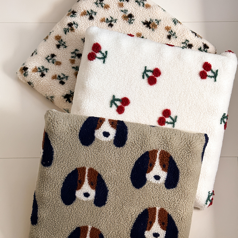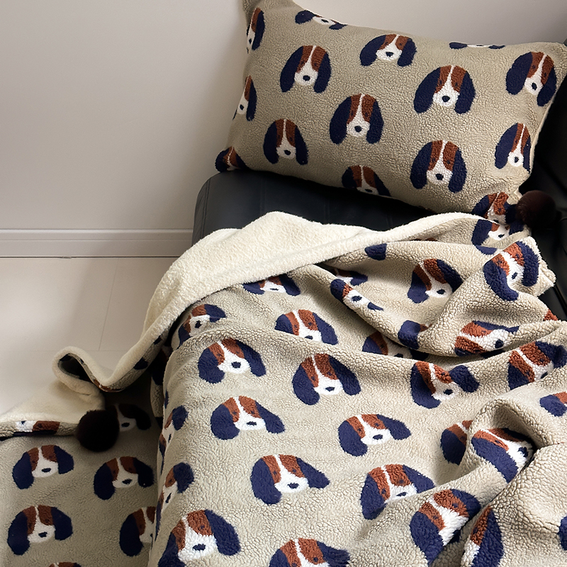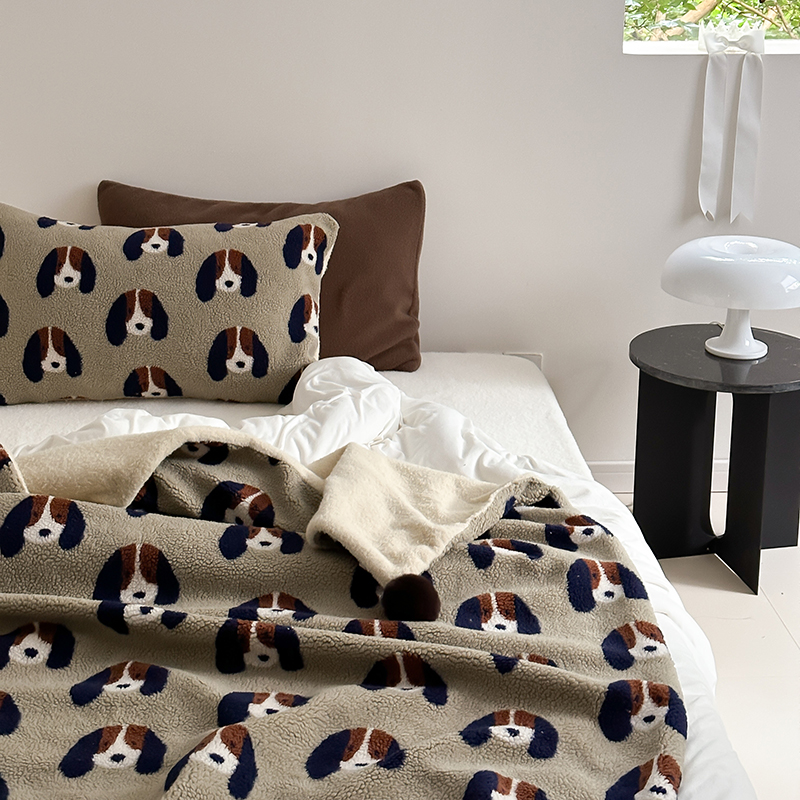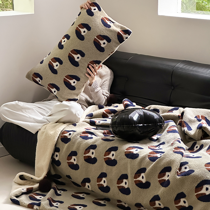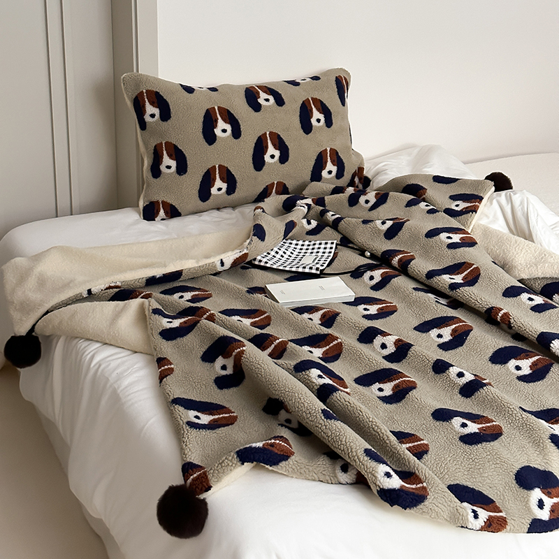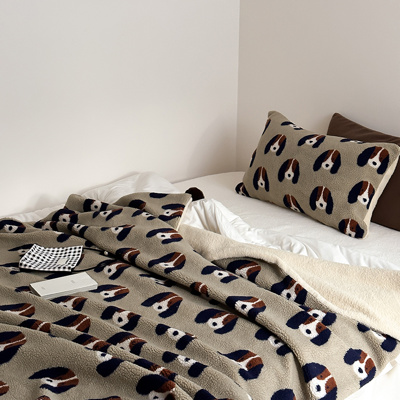 羊卷妮双面盖毯午睡毯复古卡通治愈沙发毯床尾毯车载毯子--米拉小狗*樱桃*小花