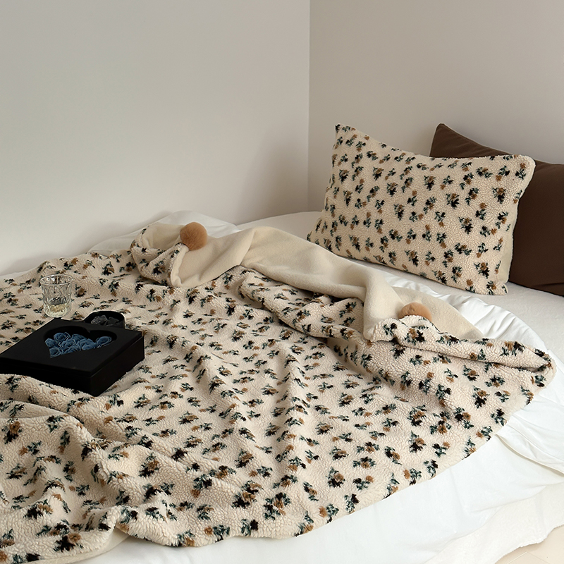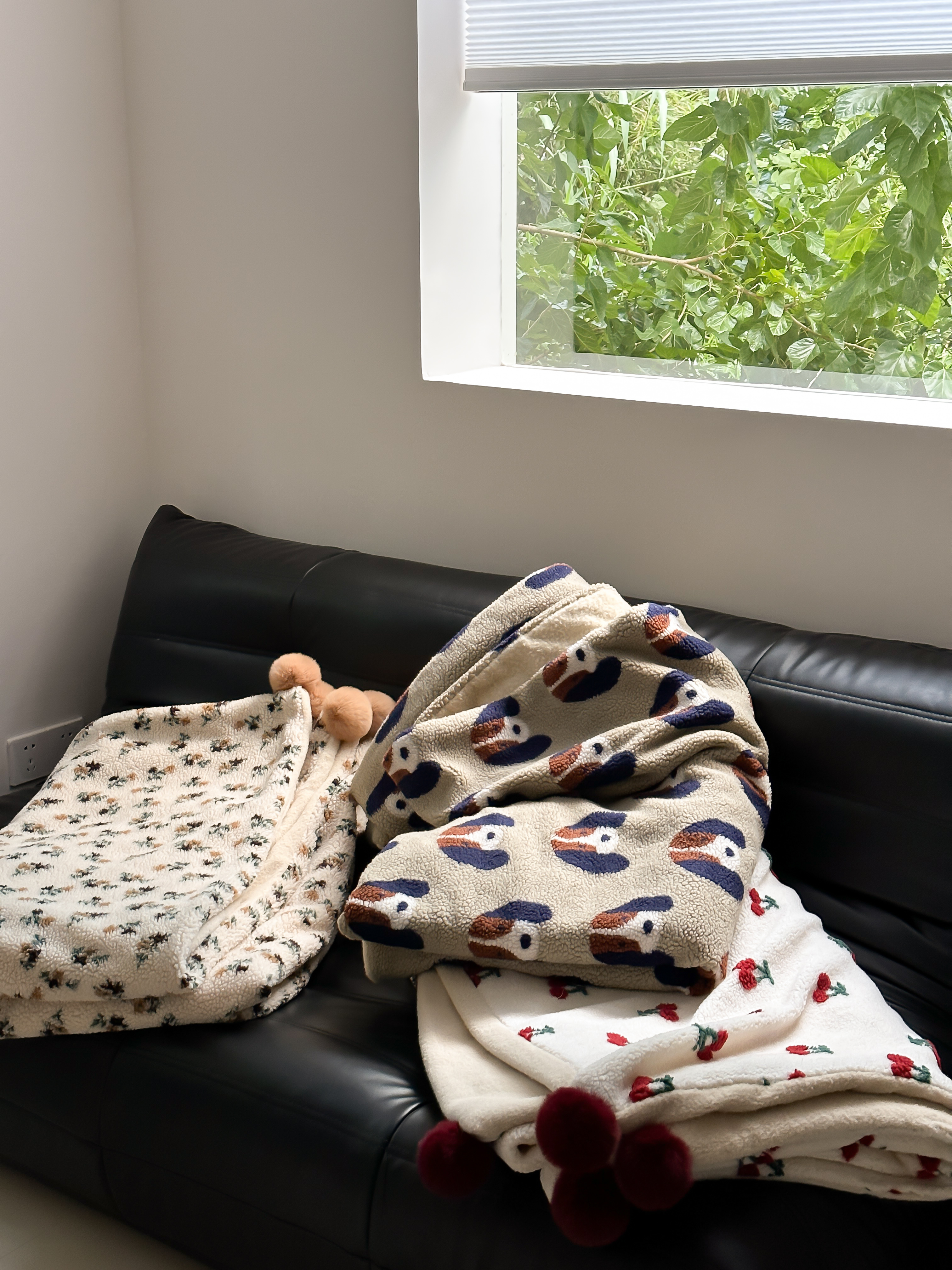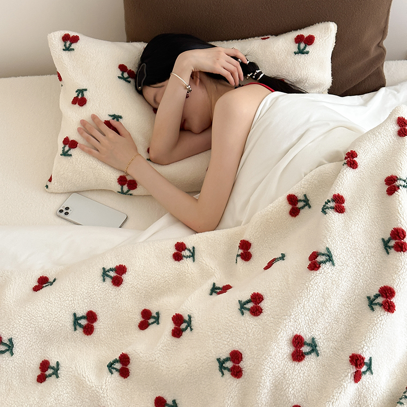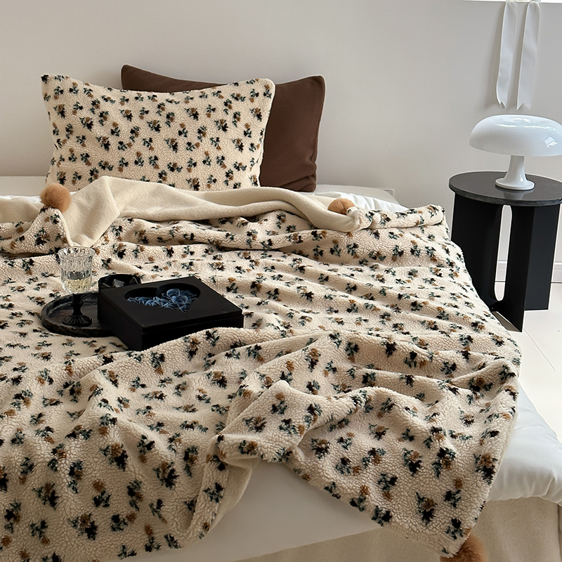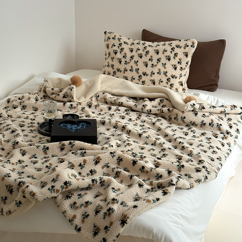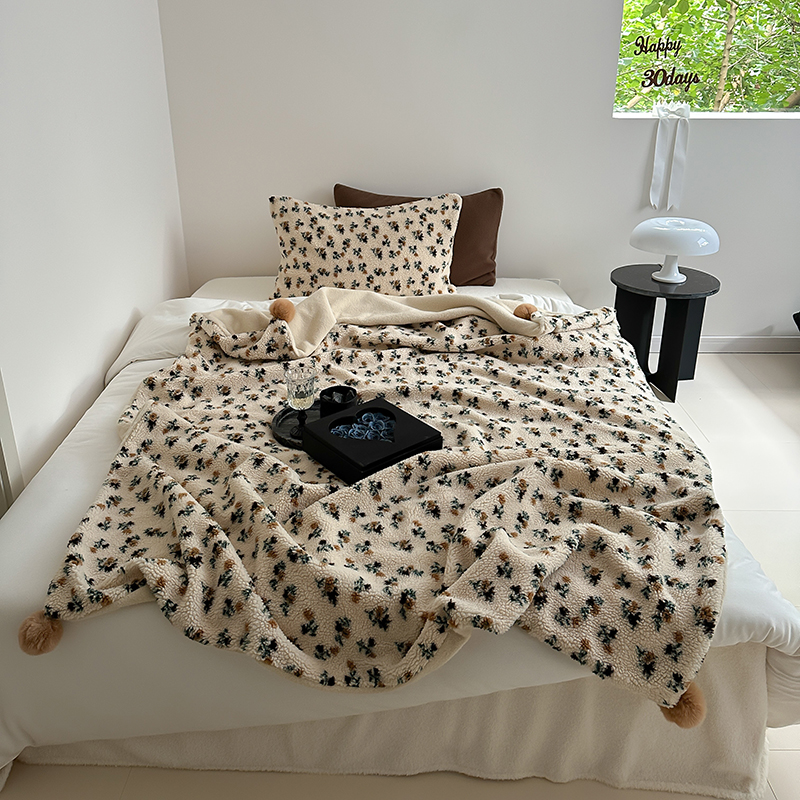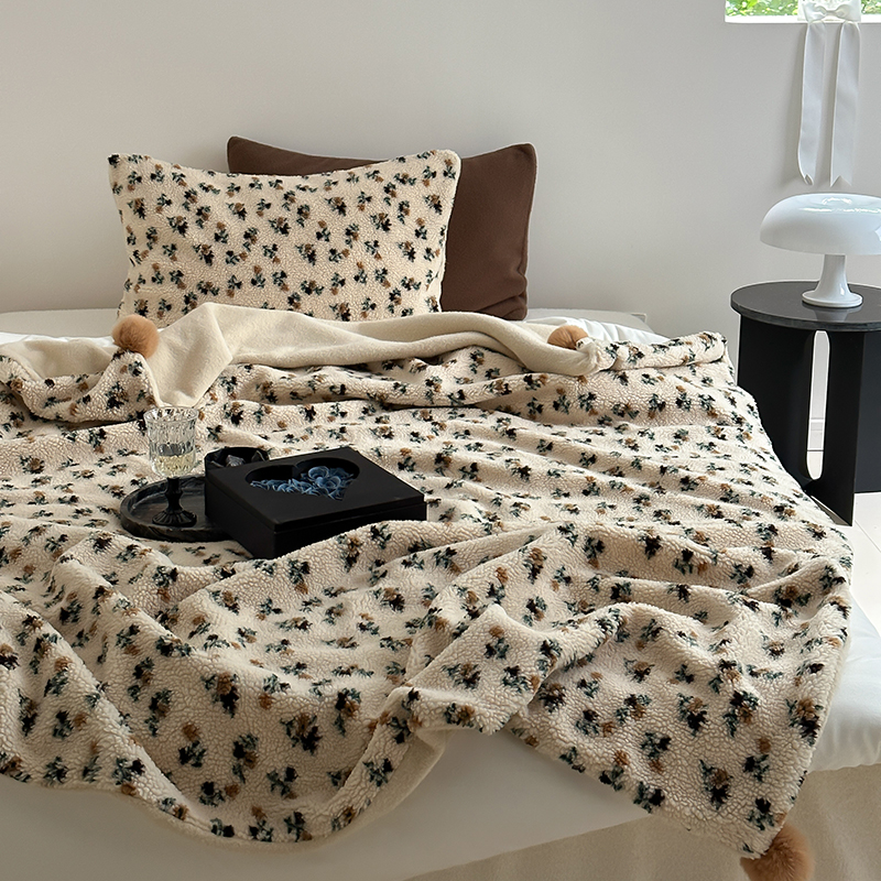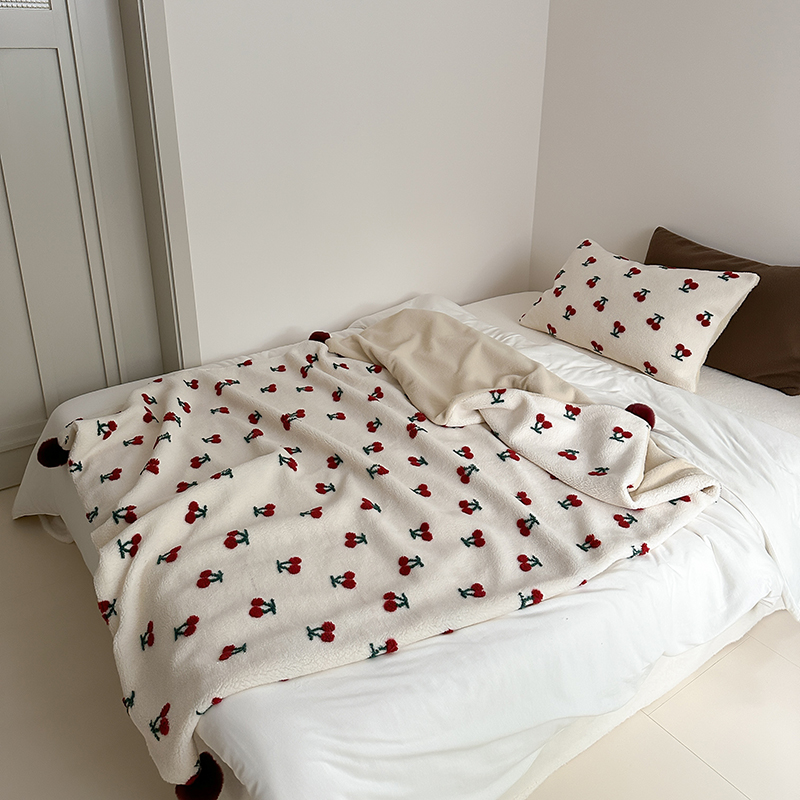 羊卷妮双面盖毯午睡毯复古卡通治愈沙发毯床尾毯车载毯子--米拉小狗*樱桃*小花