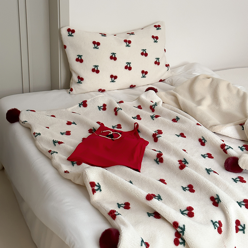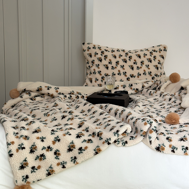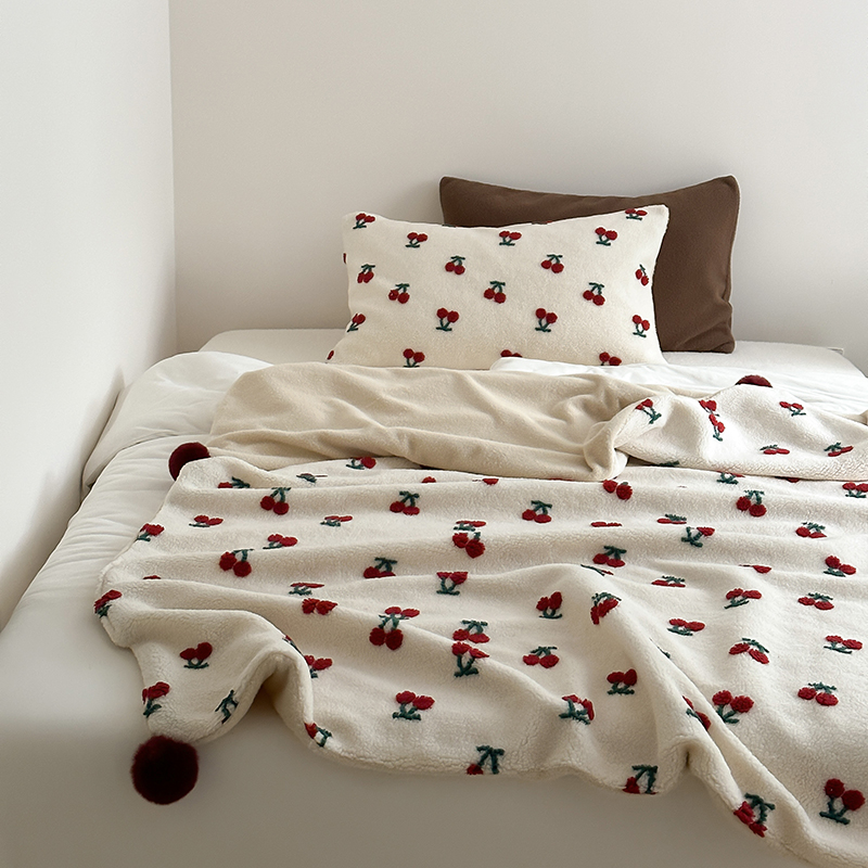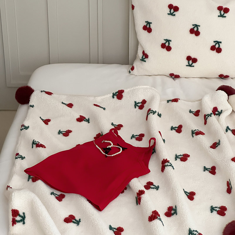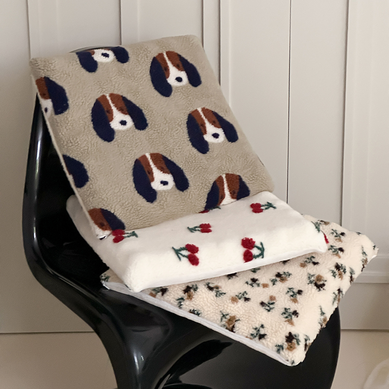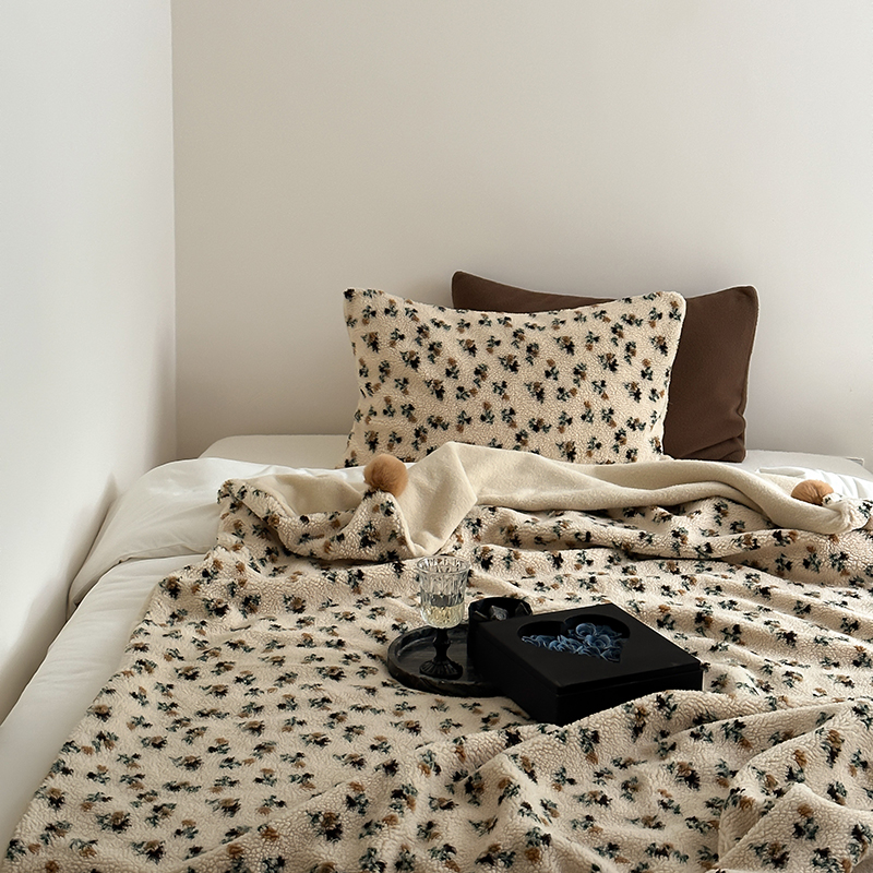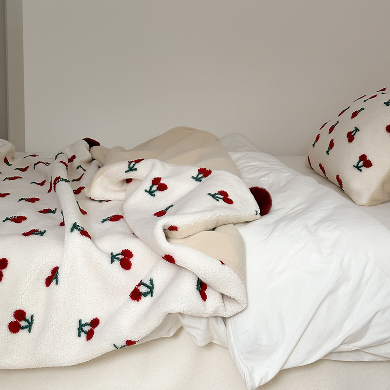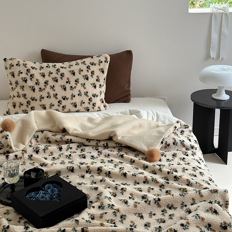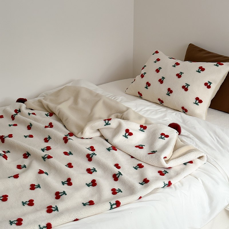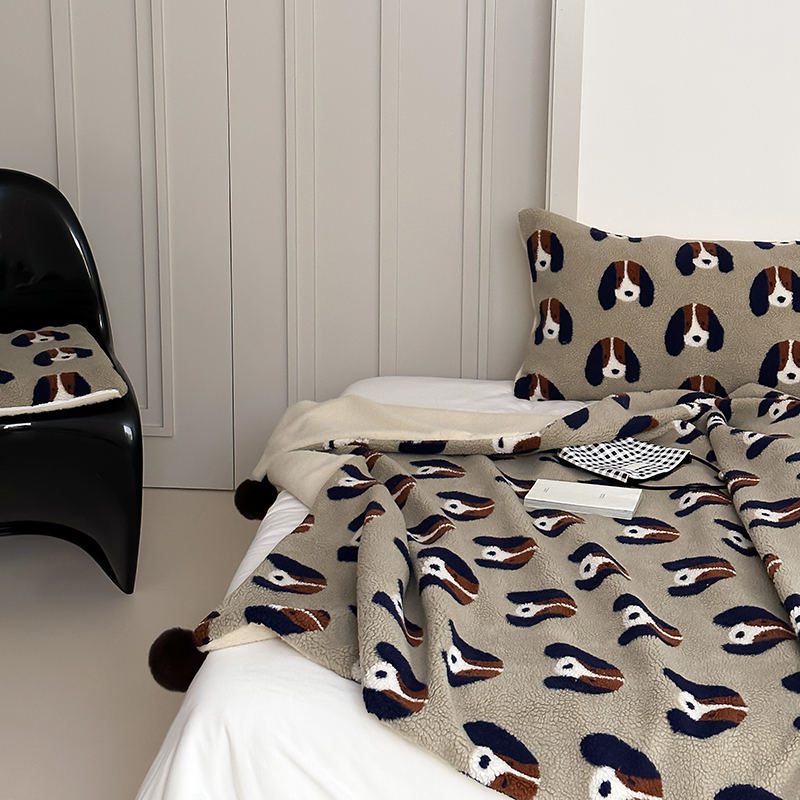 羊卷妮双面盖毯午睡毯复古卡通治愈沙发毯床尾毯车载毯子--米拉小狗*樱桃*小花