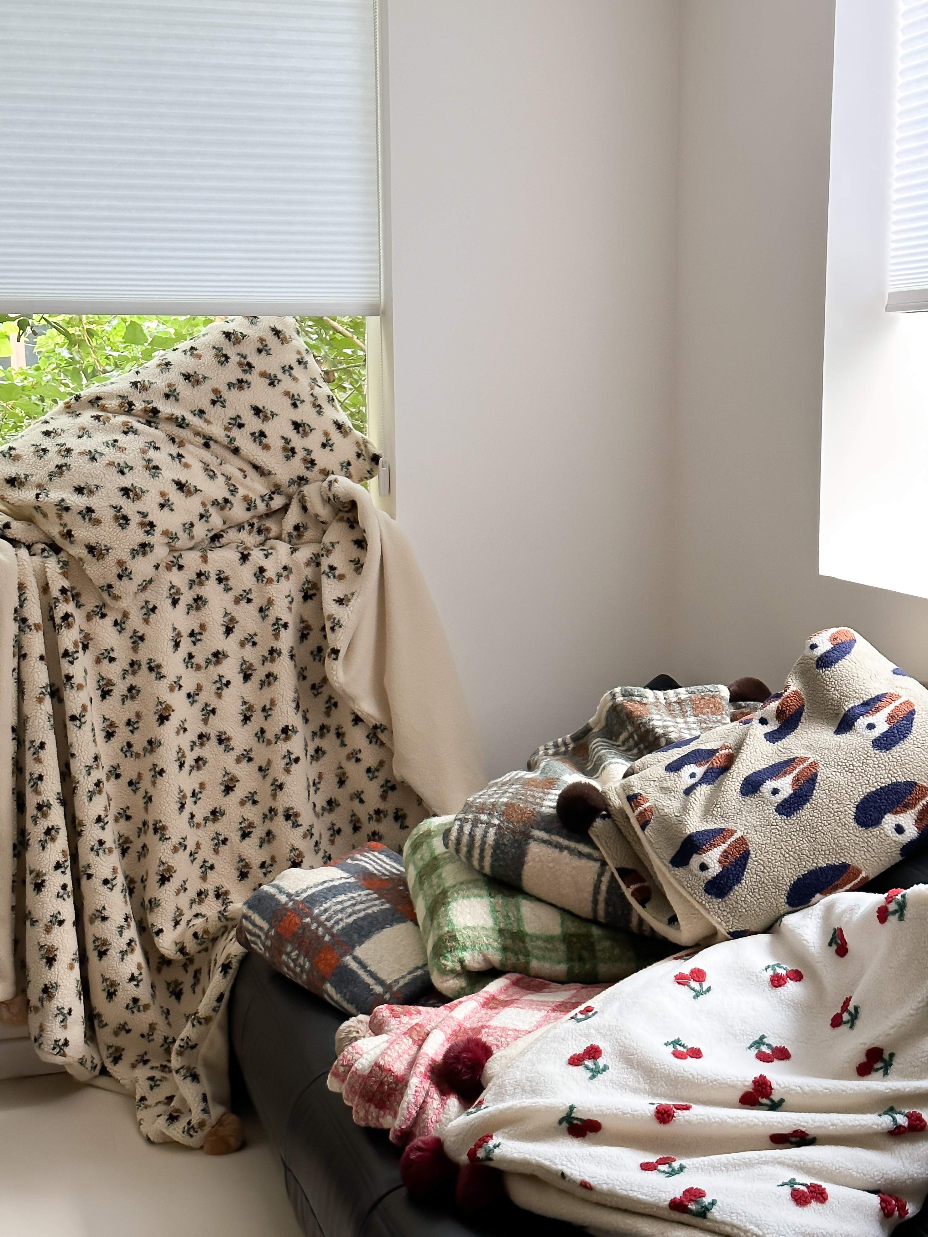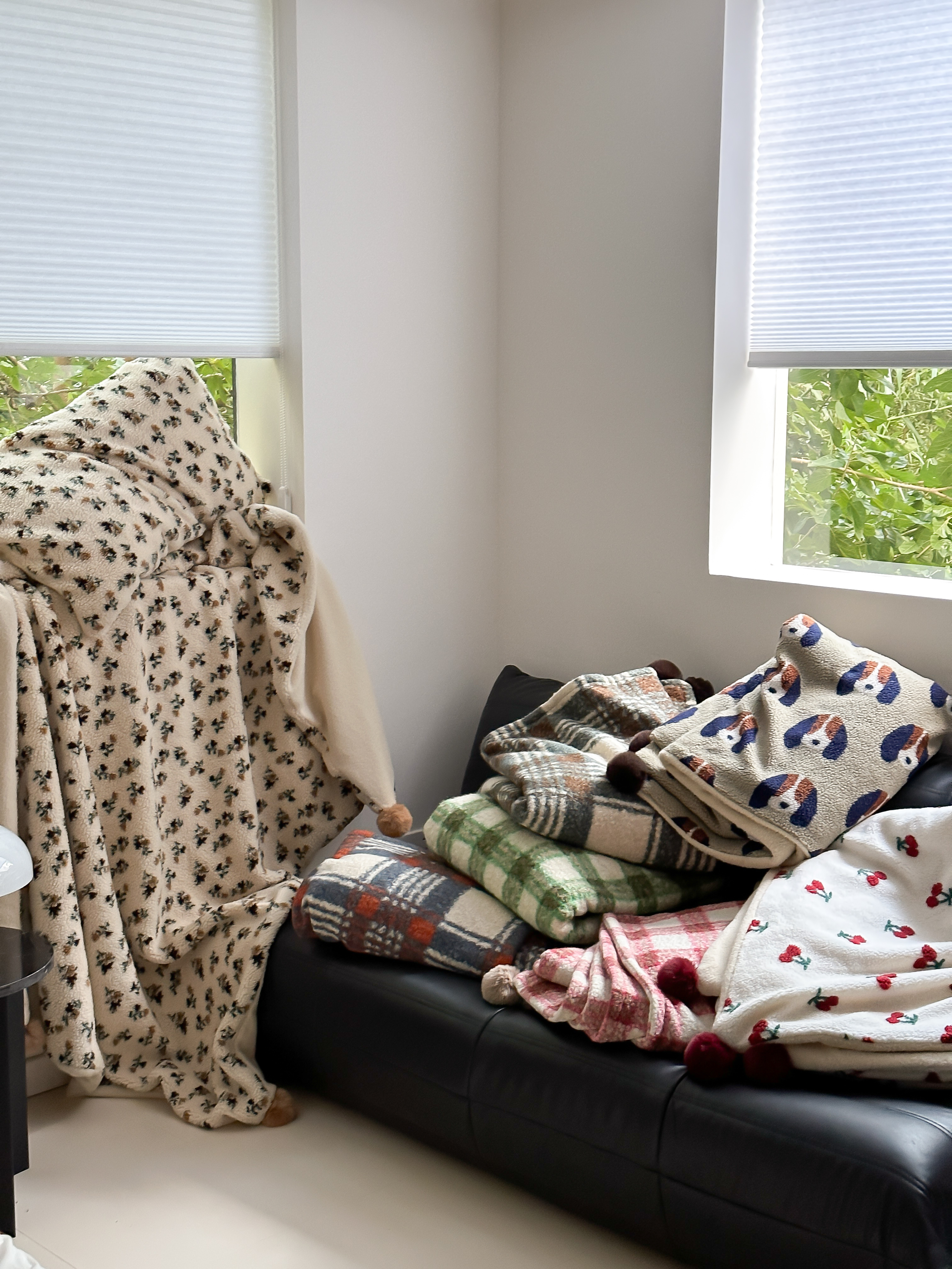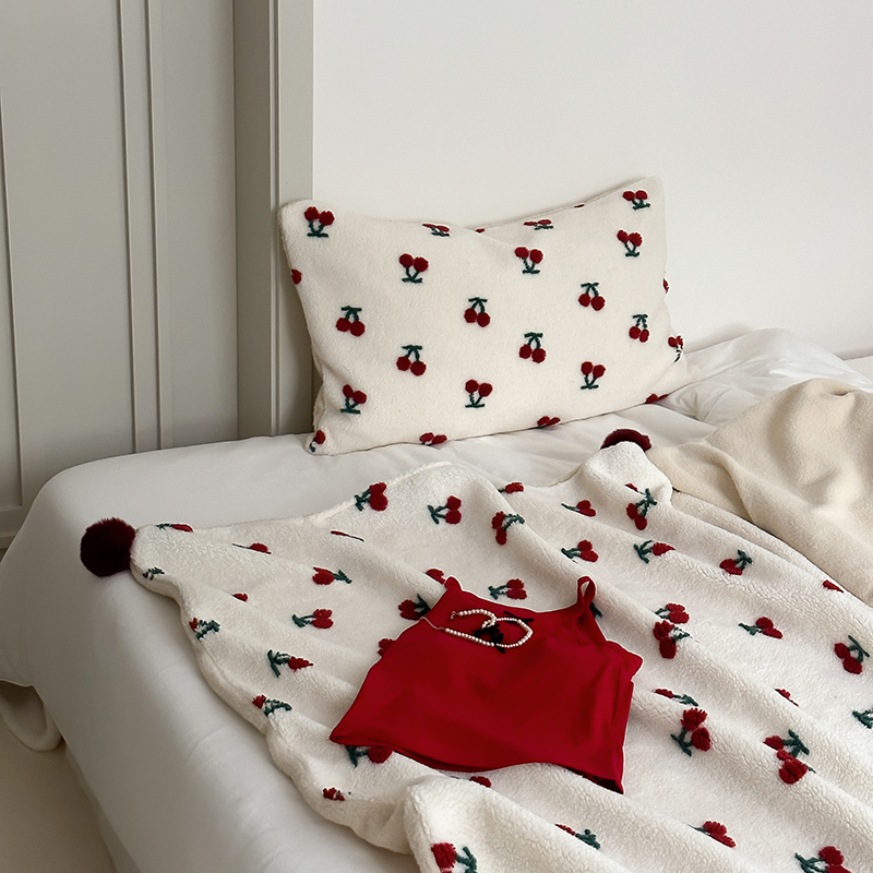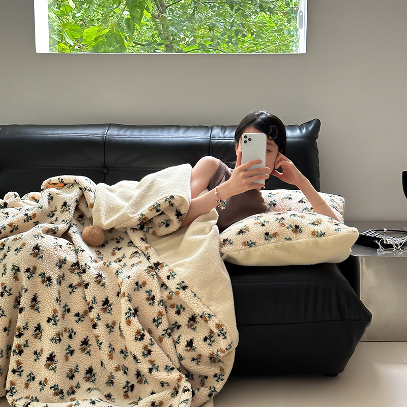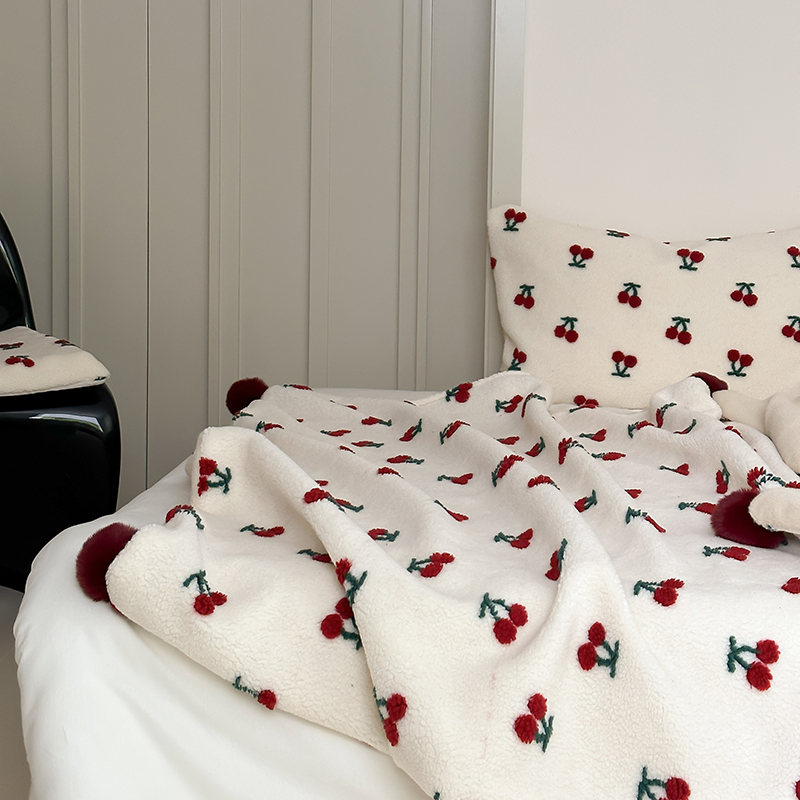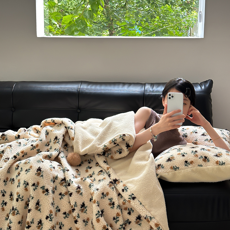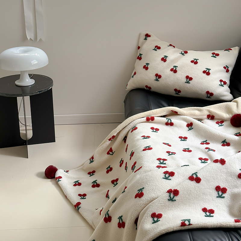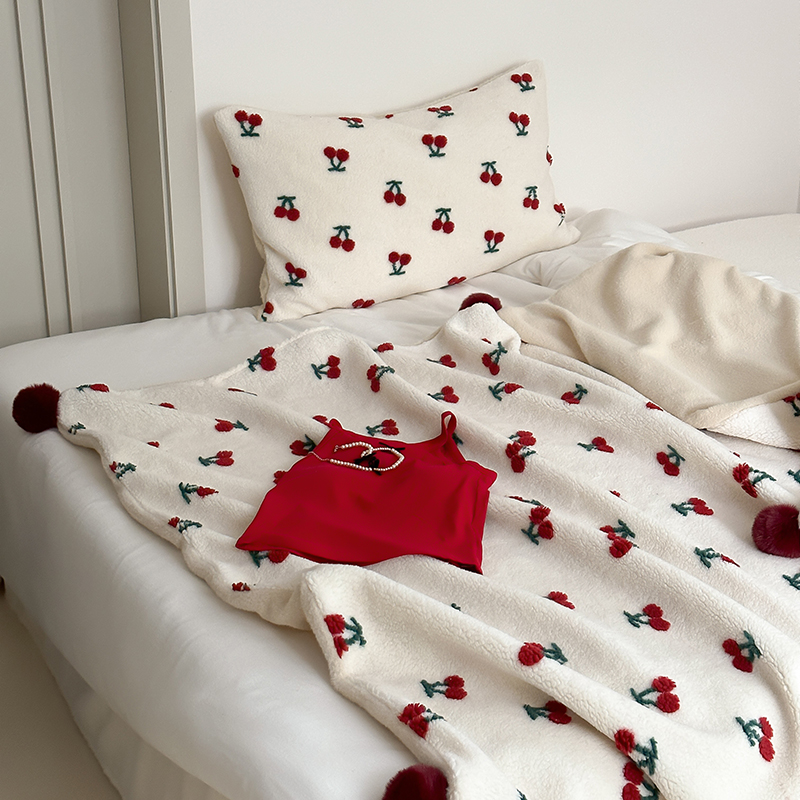 羊卷妮双面盖毯午睡毯复古卡通治愈沙发毯床尾毯车载毯子--米拉小狗*樱桃*小花