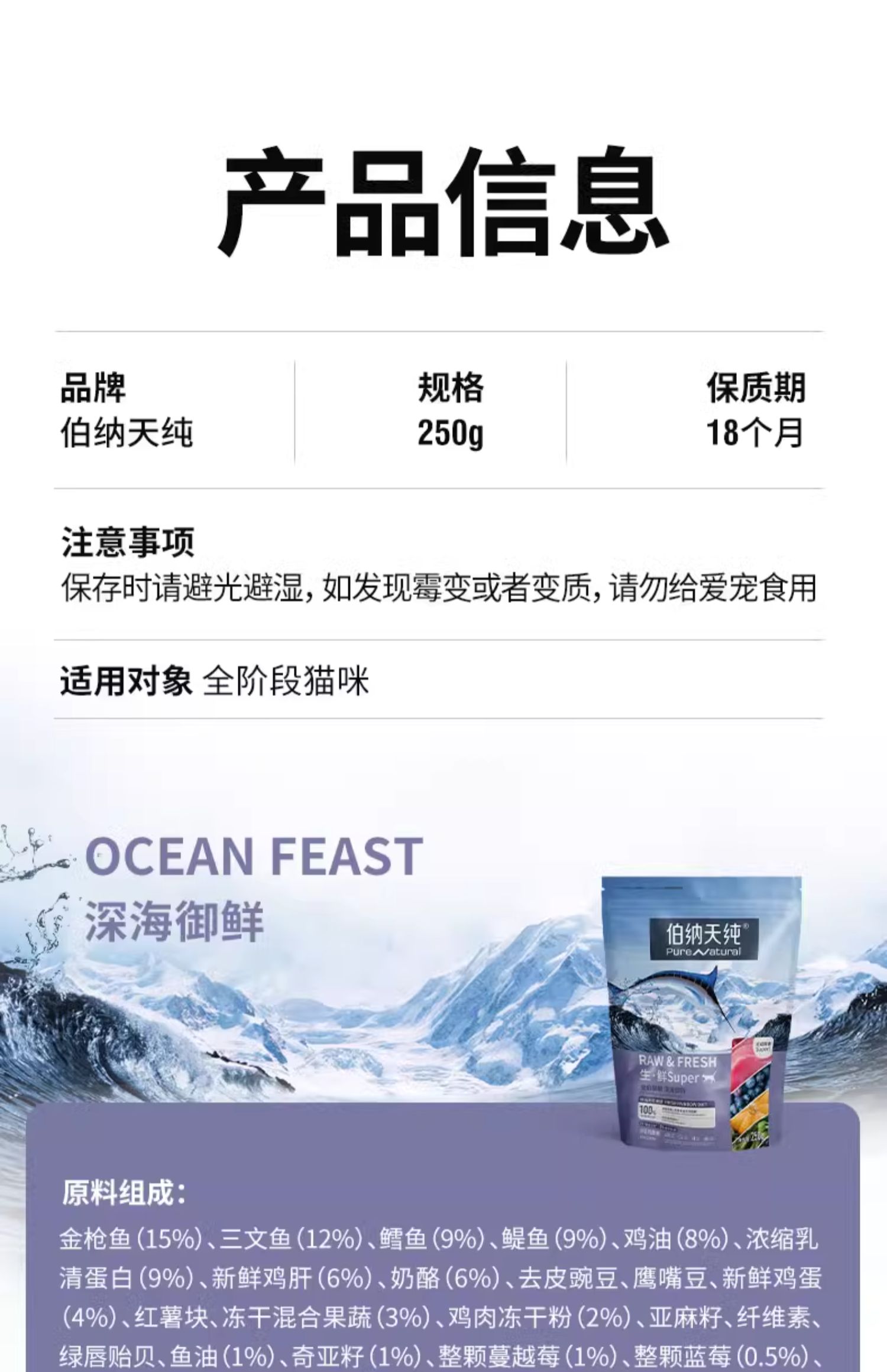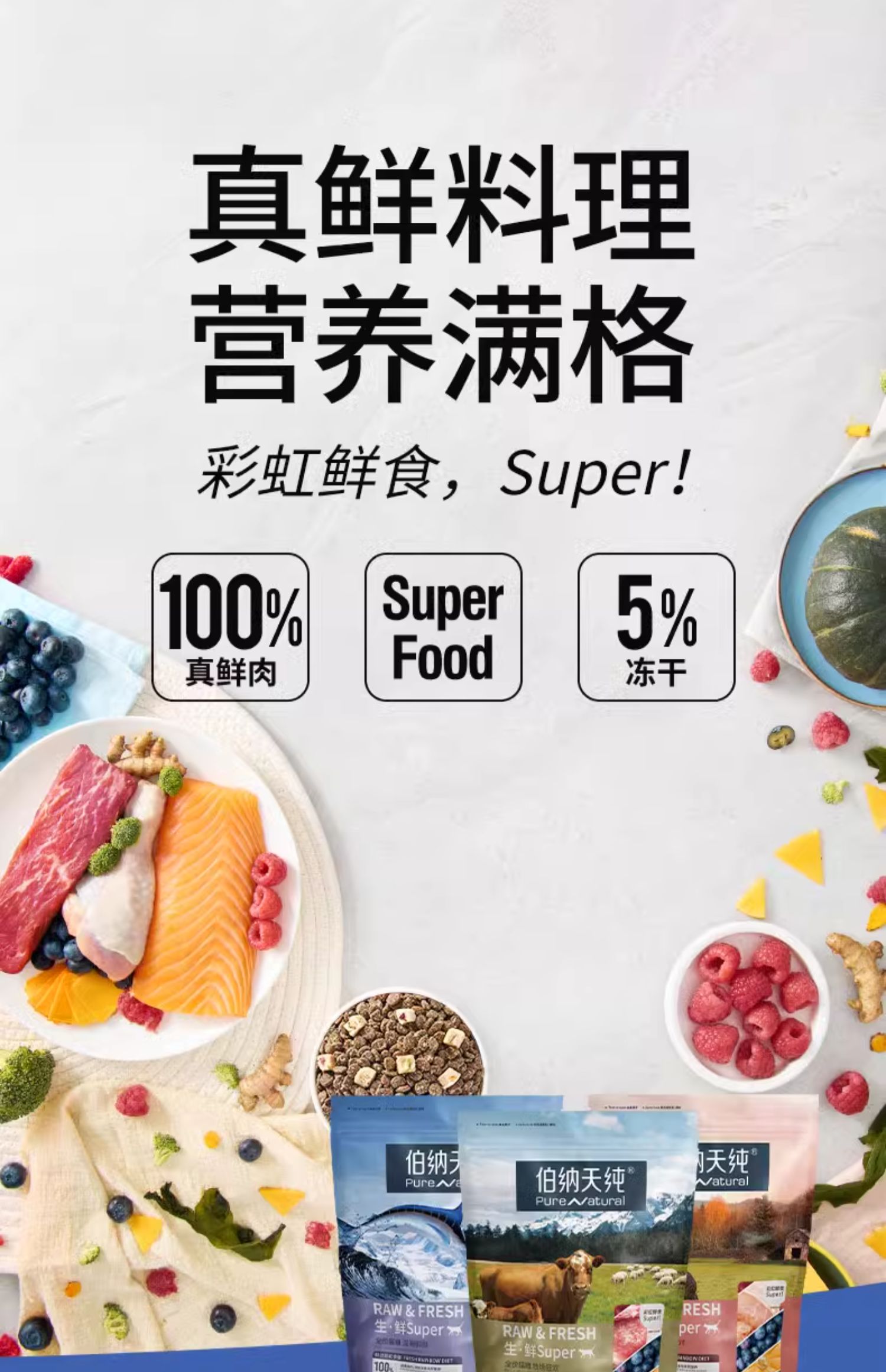 【试吃装】伯纳天纯生·鲜super鲜肉冻干猫粮 全价通用粮250g