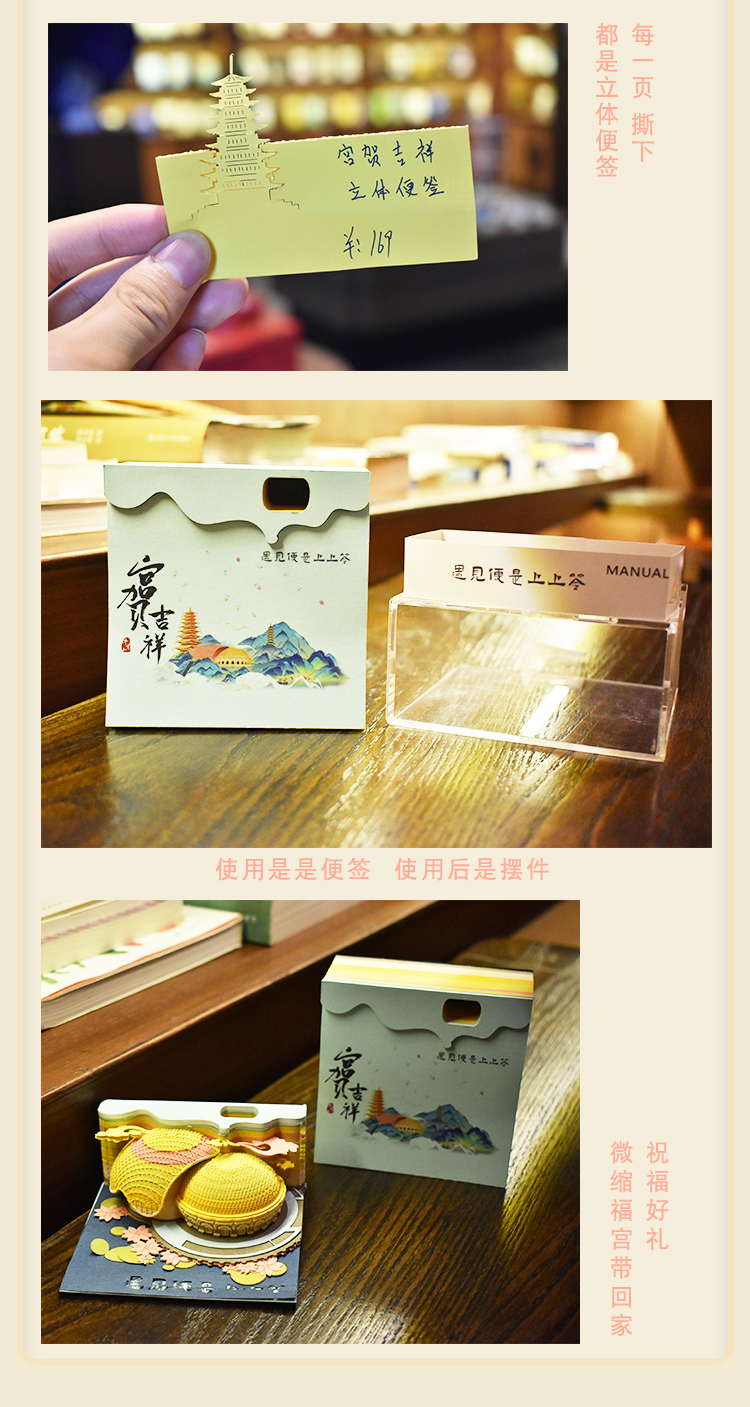 宫贺吉祥牛首山佛顶宫立体便签纸