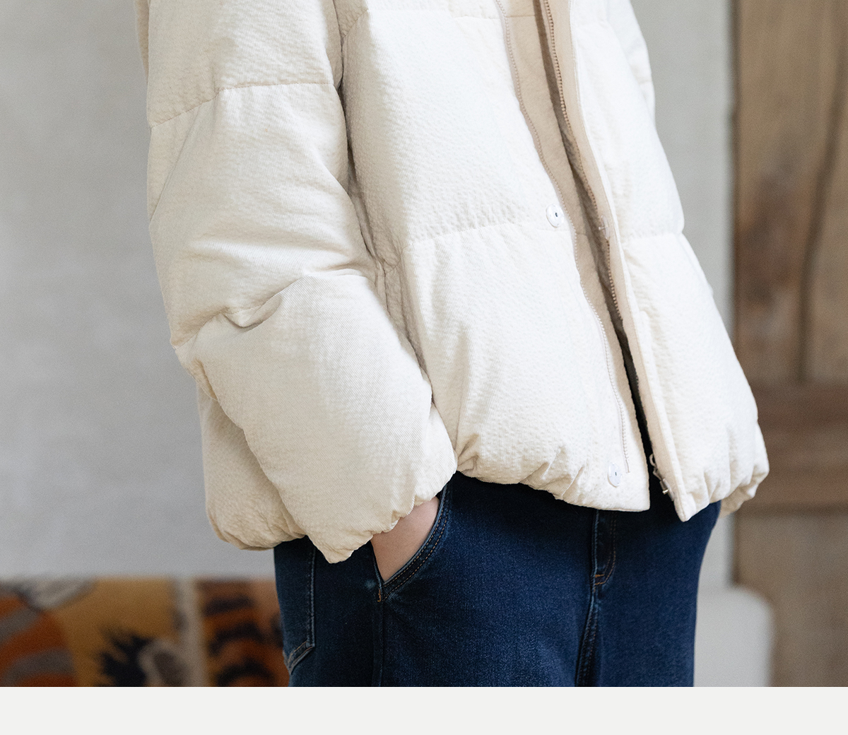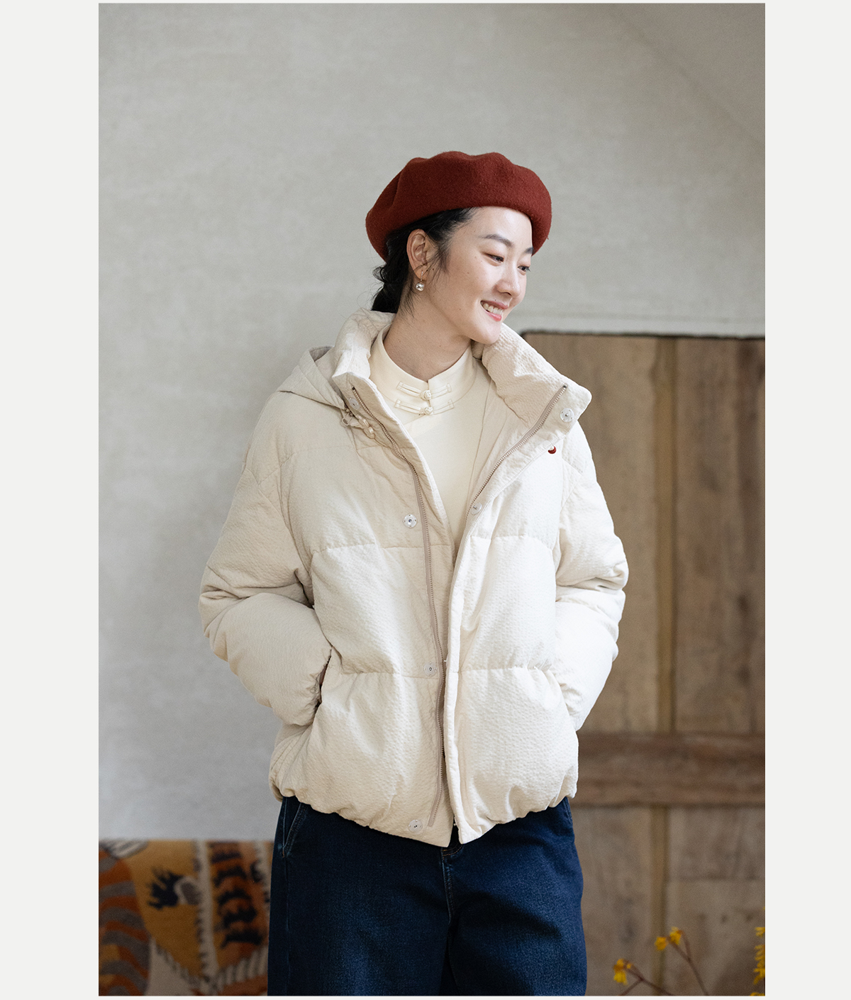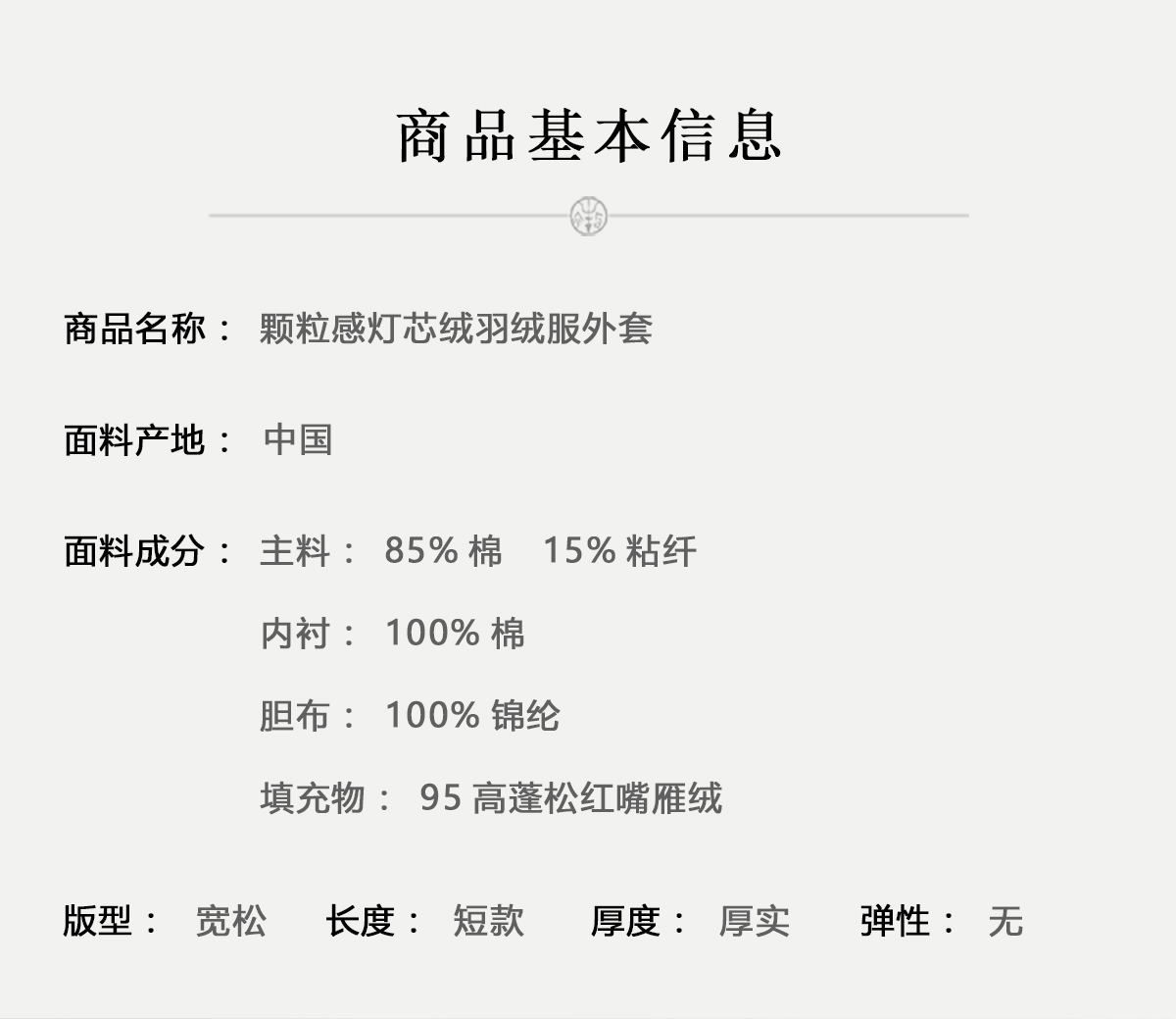 牧衣游原创 颗粒感灯芯绒95高蓬松红嘴雁绒羽绒服外套保暖 雾弥