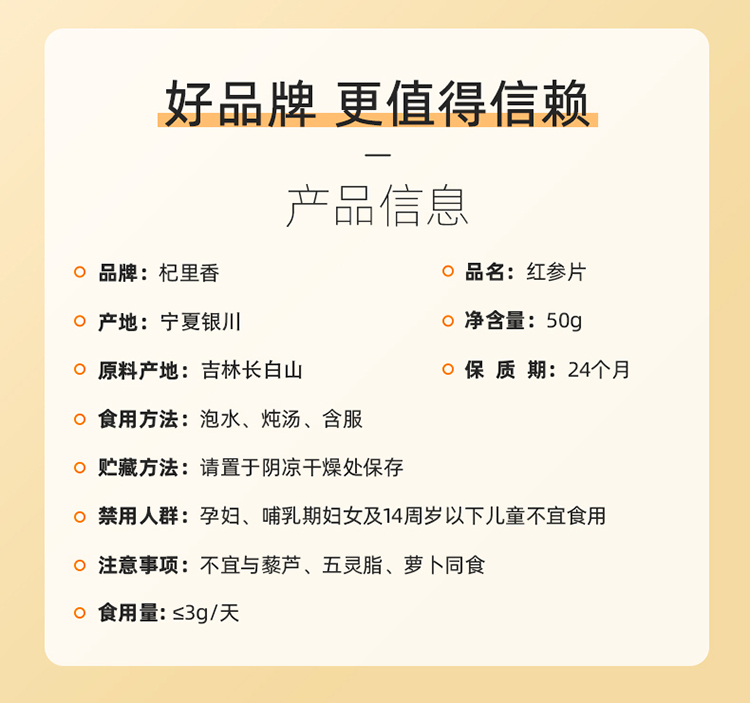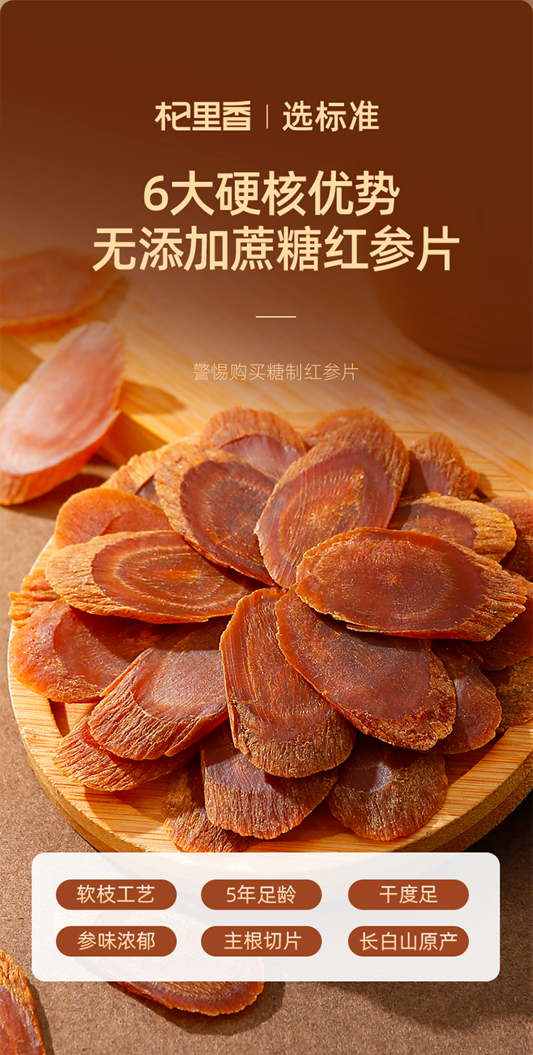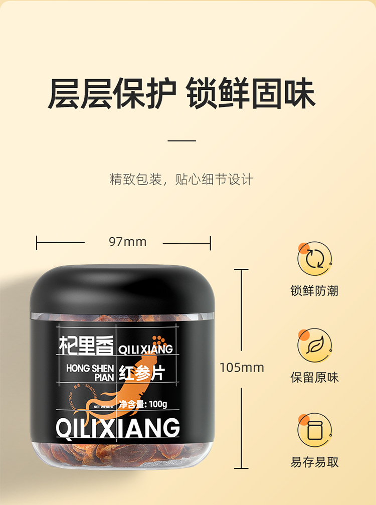杞里香50g、100g1.0cm罐装红参片 红参片长白山5年足龄