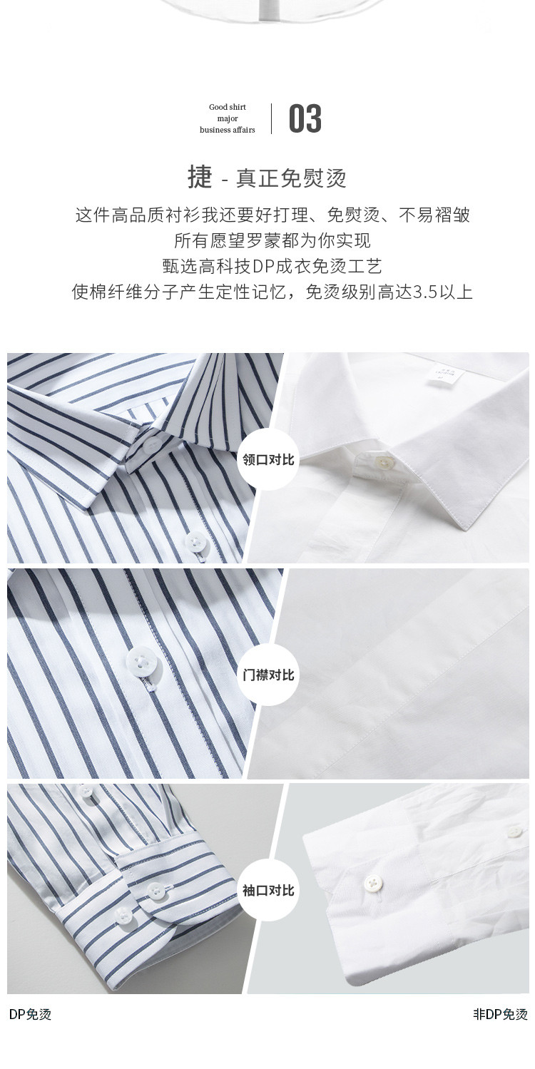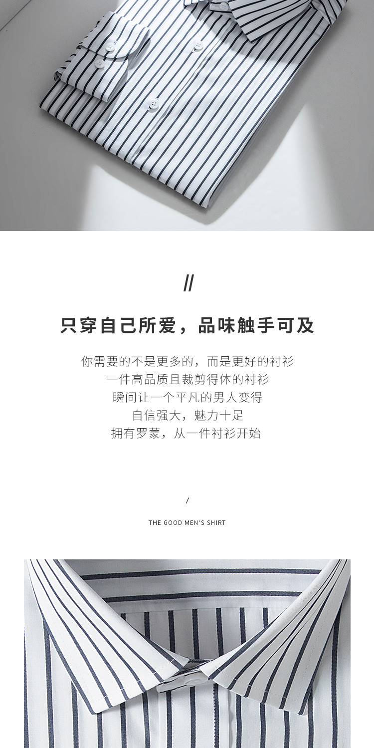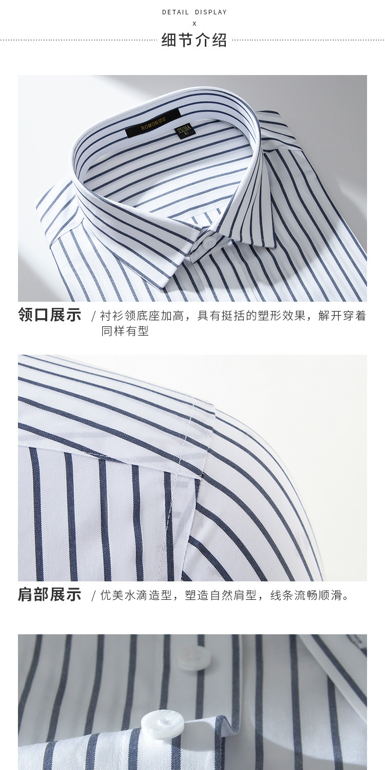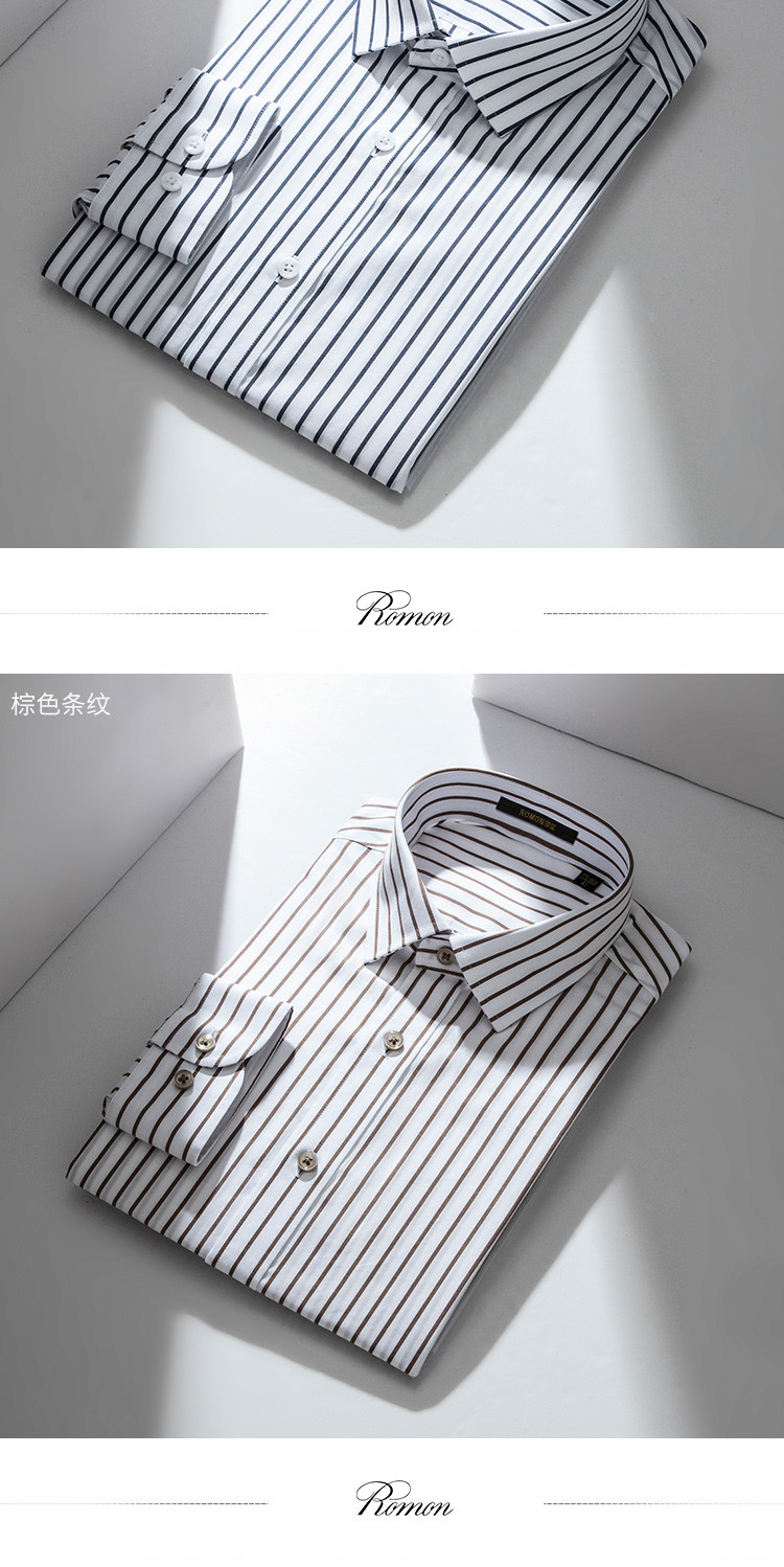 【100棉成衣免烫】罗蒙春款长袖衬衫男士商务正装通勤抗皱条纹衬衣