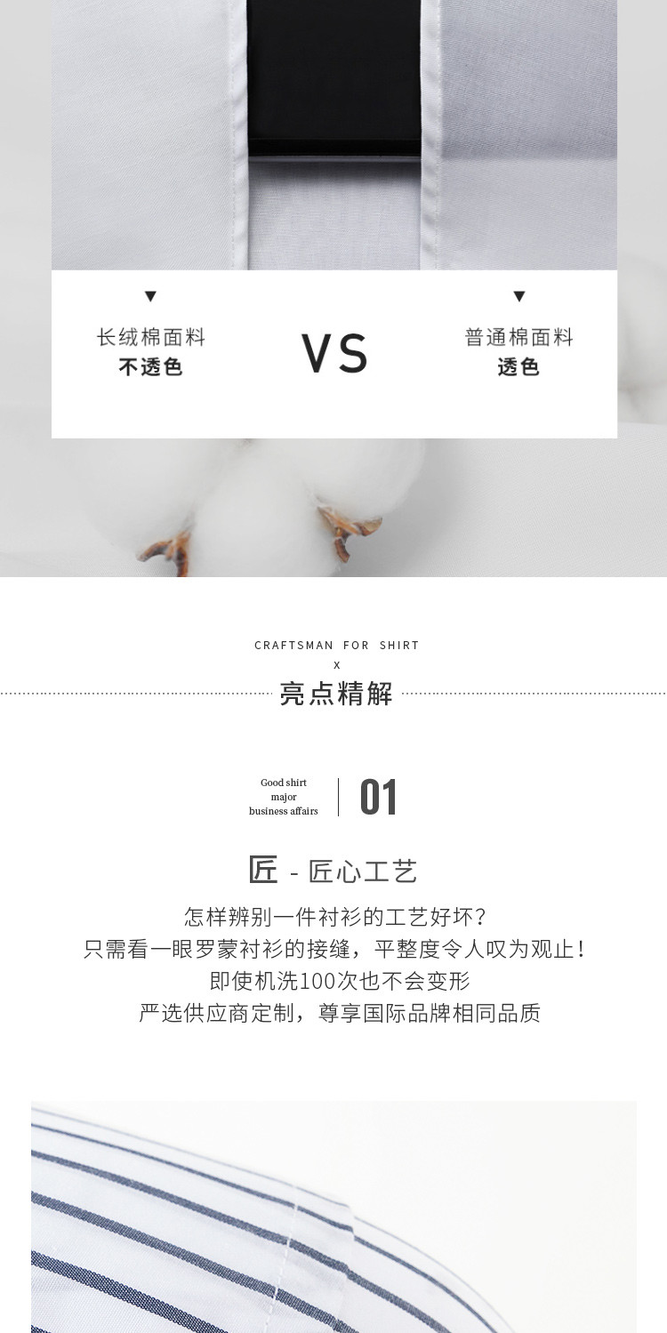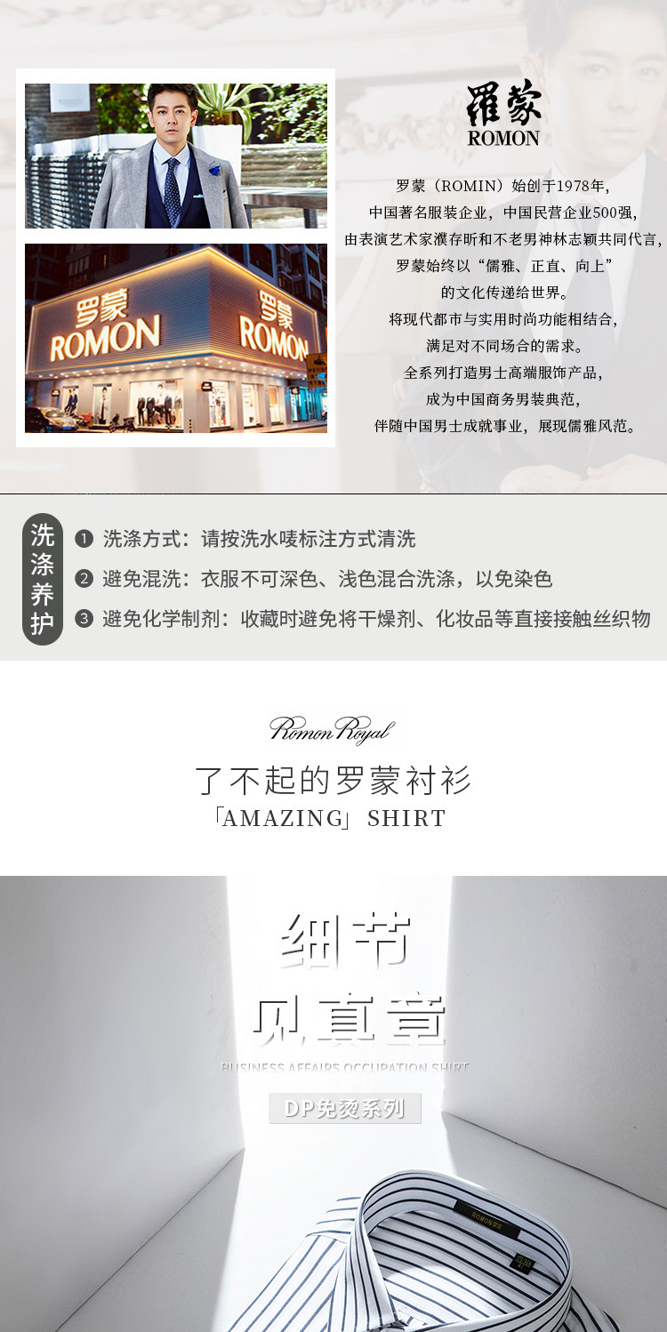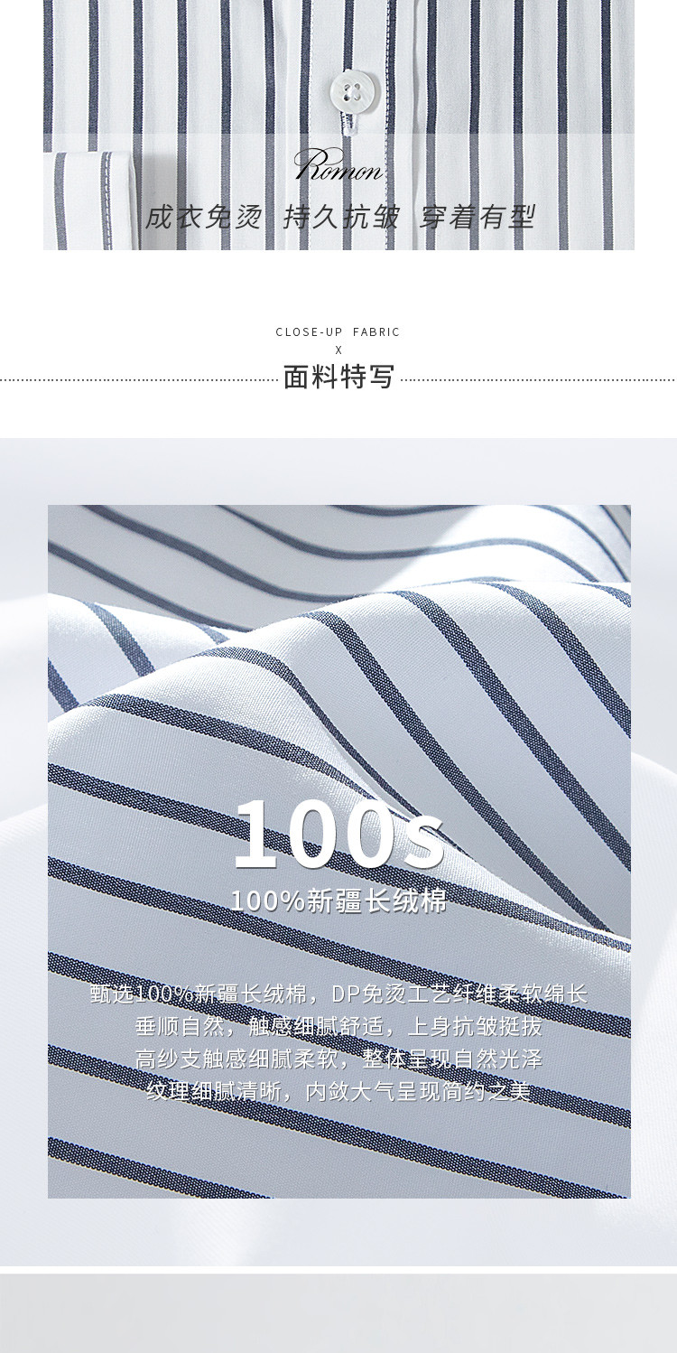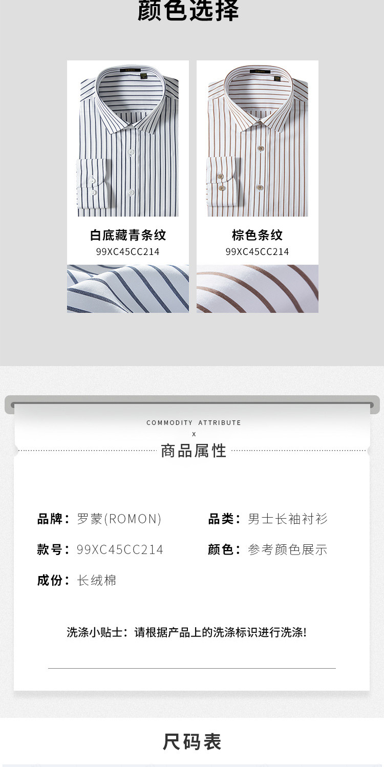 【100棉成衣免烫】罗蒙春款长袖衬衫男士商务正装通勤抗皱条纹衬衣