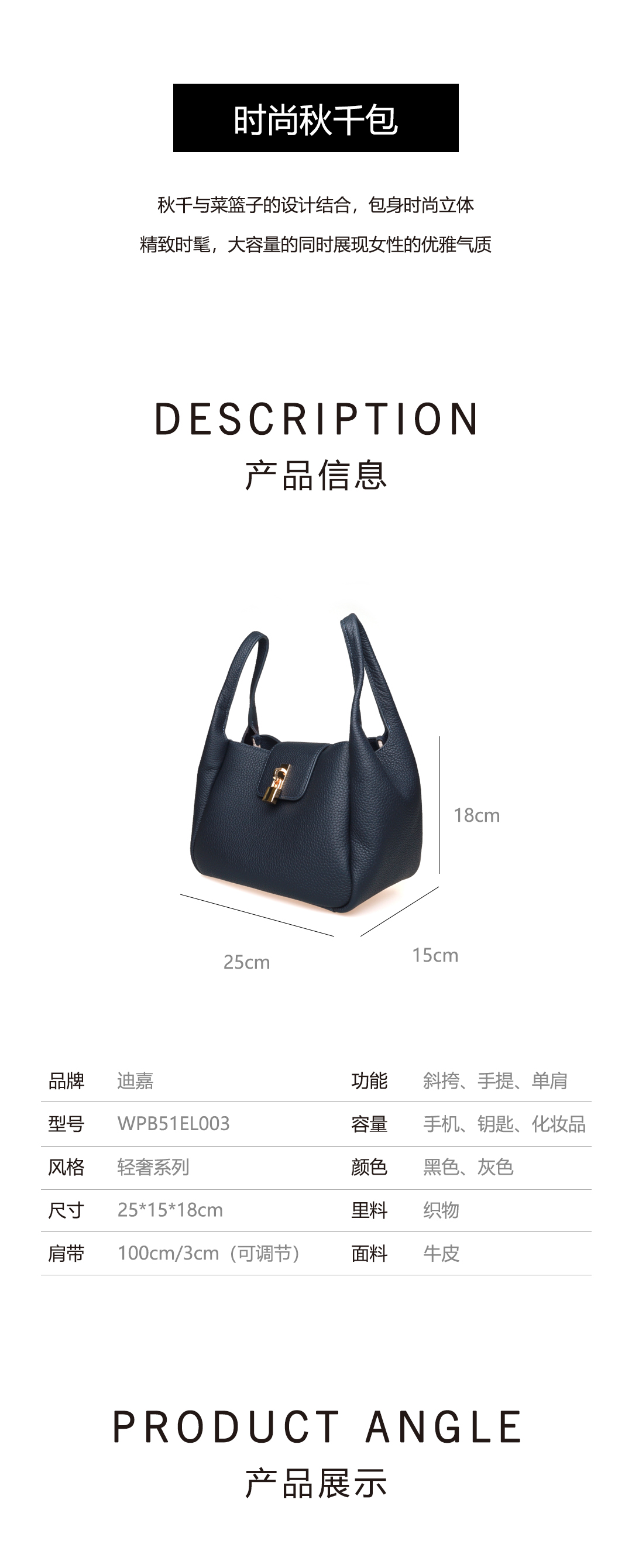 豪麟名鞋迪嘉女包手袋牛皮革WPB51EL003灰色