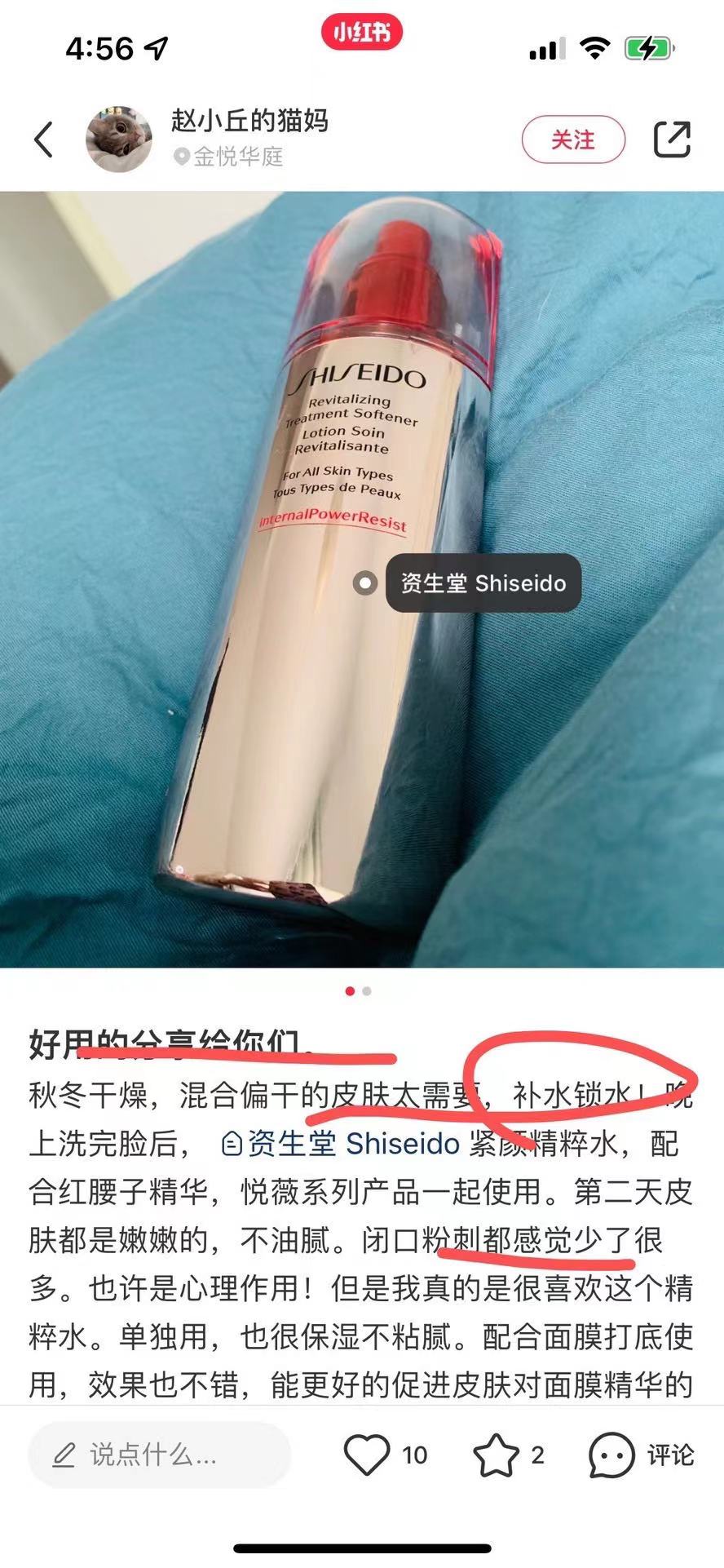 成分上是红研和悦薇的结合物,配方比较豪华,官方宣称红妍水可以有效改善因干燥而加深的皱纹,流动性较强的一款水,由于是一款精华水,所以在手上的试用感有种营养更加丰富的赶脚~