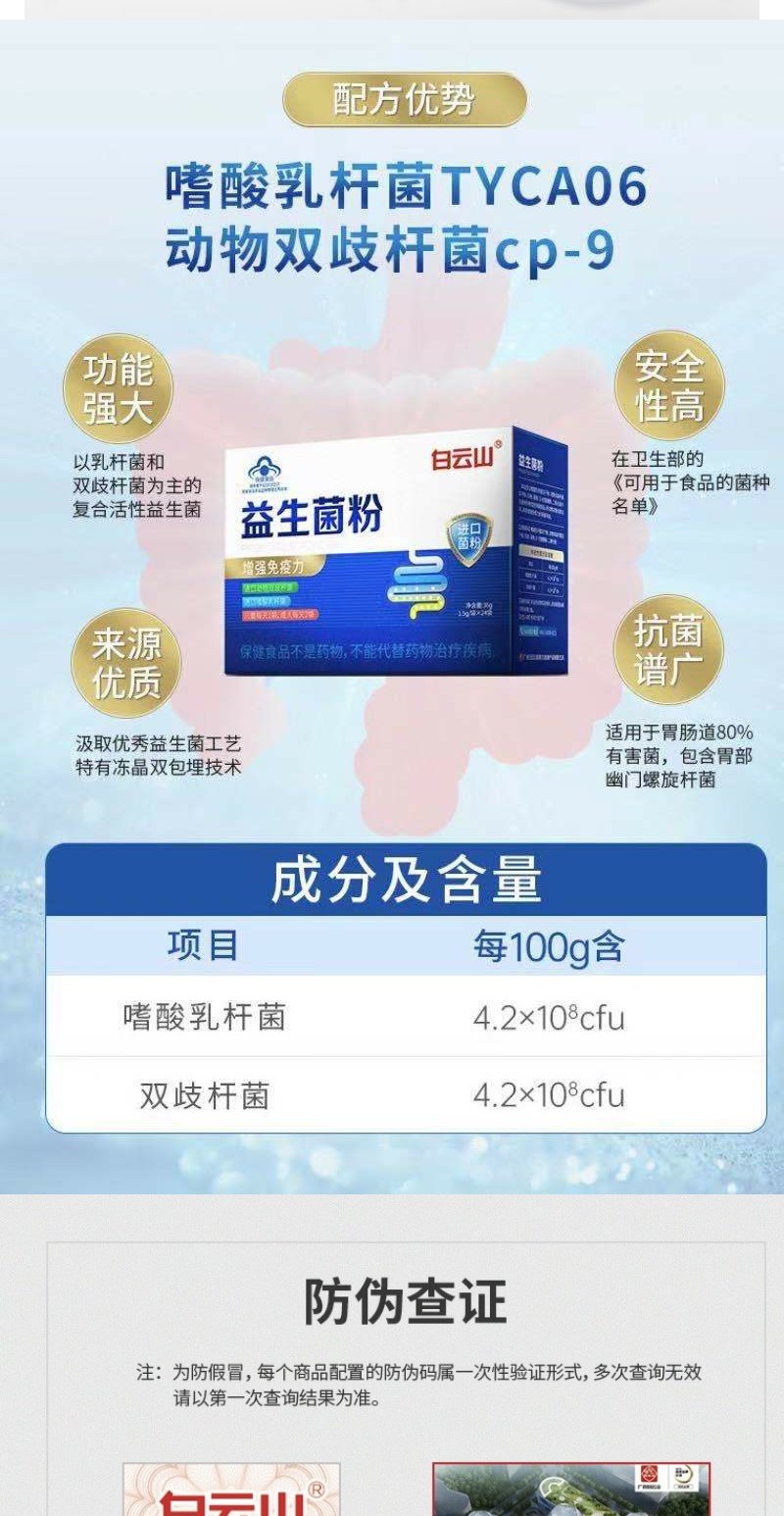 【健字号!】广药白云山益生菌1.5g/袋*24袋*3盒