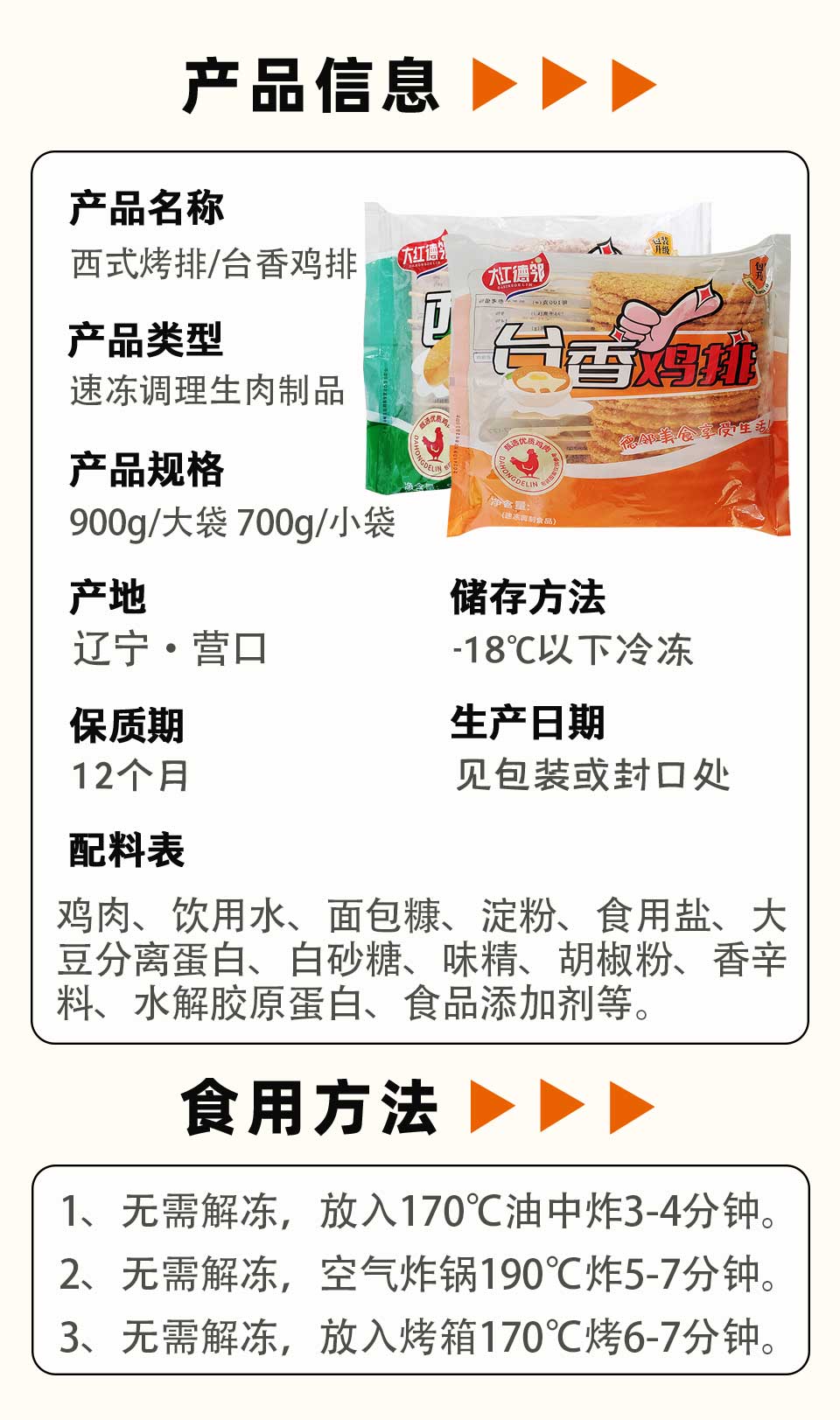 香煎鸡排 1kg/袋 10袋/件