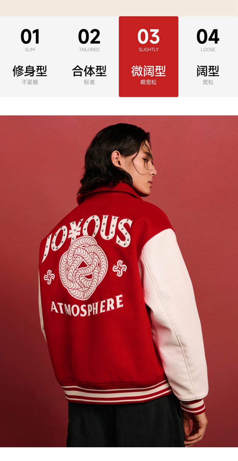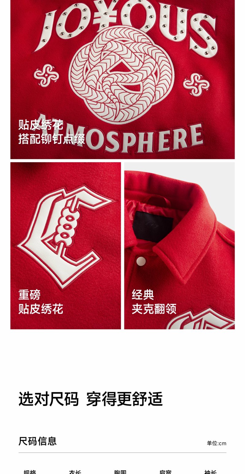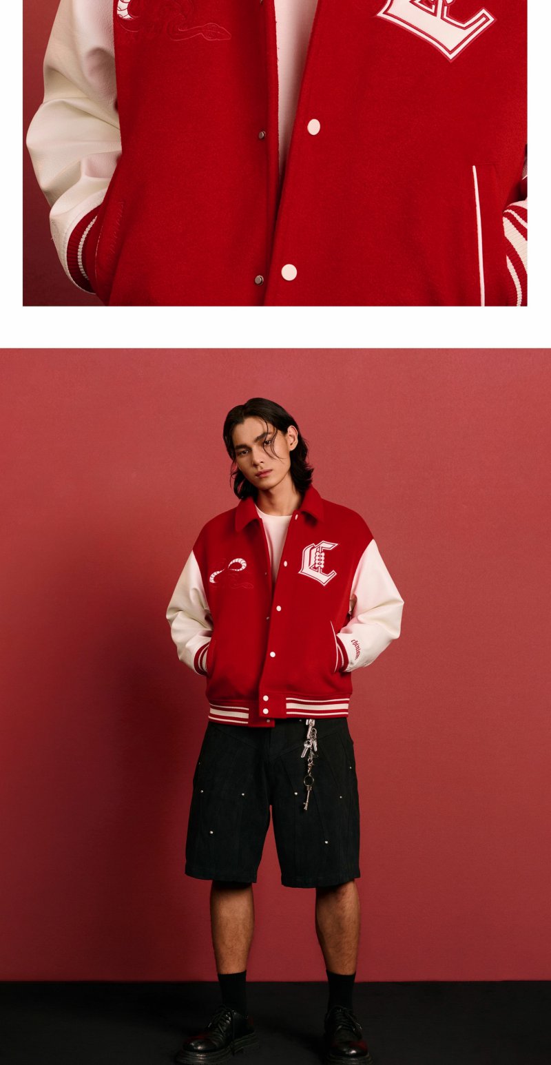 CHINISM赤尘 CH重磅刺绣红色棒球夹克男秋冬男士保暖加厚翻领外套