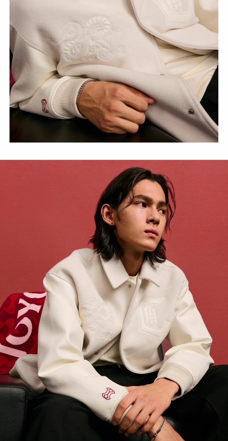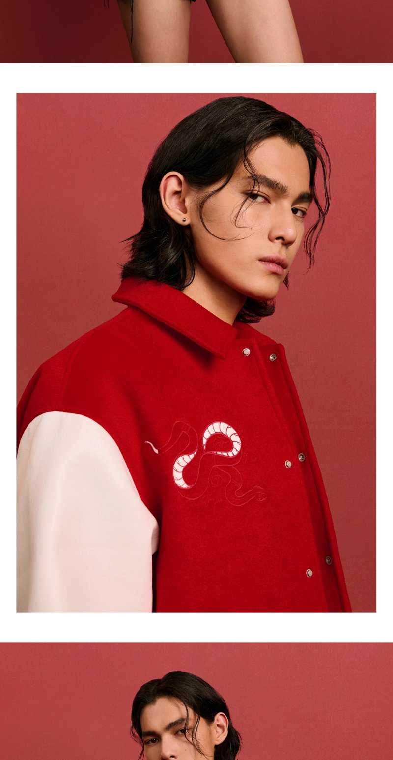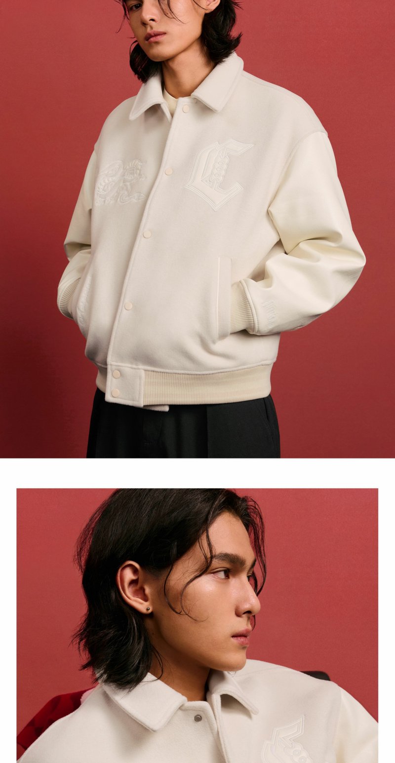 CHINISM赤尘 CH重磅刺绣红色棒球夹克男秋冬男士保暖加厚翻领外套