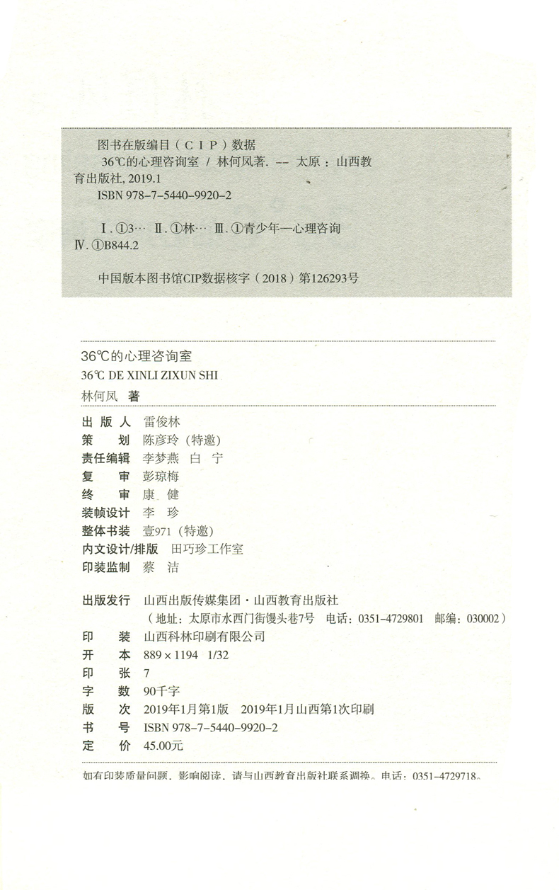正版 包邮 36℃的心理咨询室 青少年 心理咨询 山西教育出版社出版