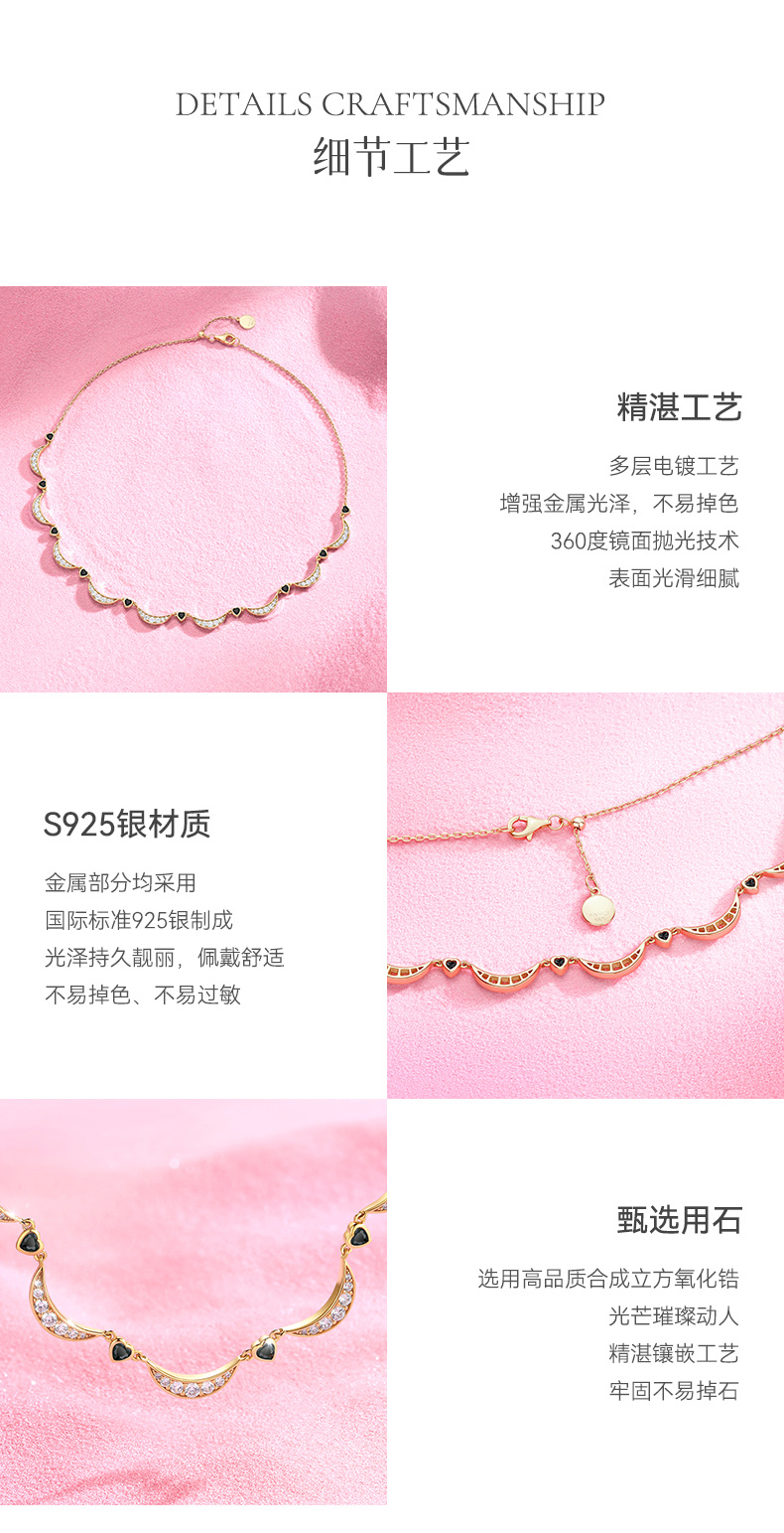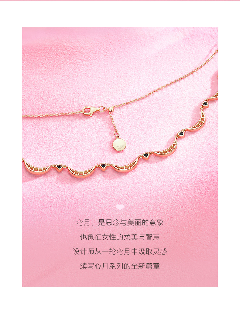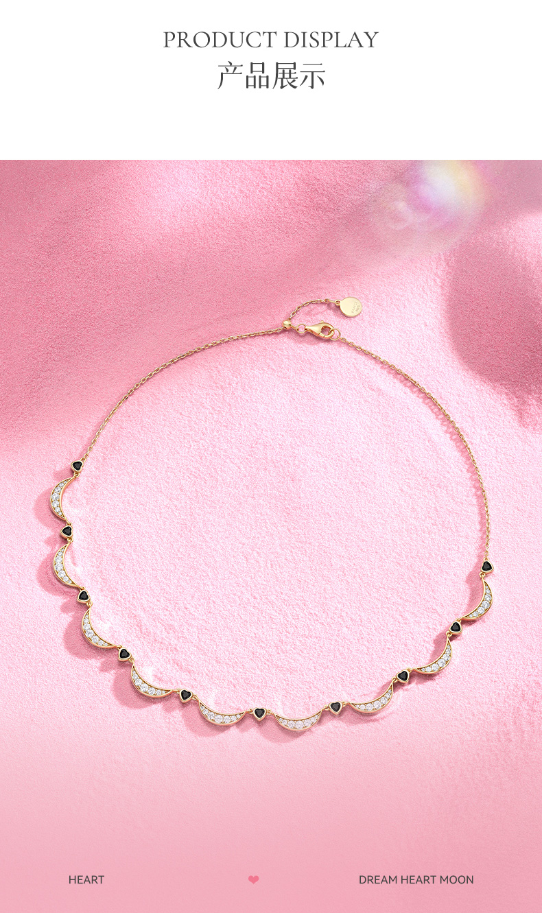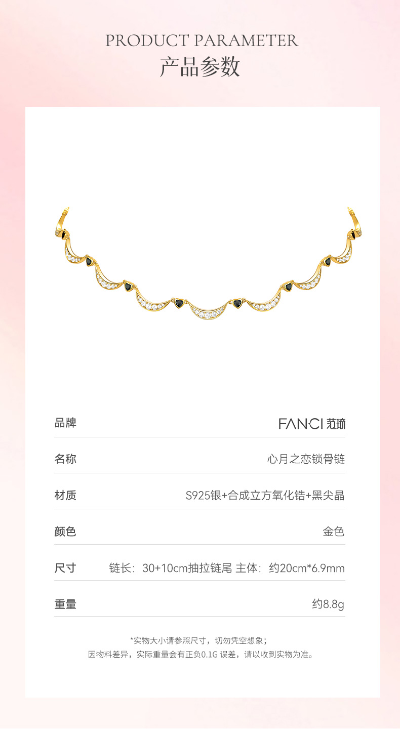 【明星同款】【心月之恋项链 黑金款】Fanci银饰 幻梦心月系列锁骨链 生日礼物送女友