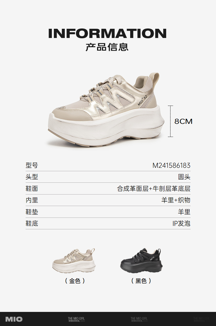 MIO米奥春季圆头高跟时尚休闲鞋酷感厚底舒适潮流运动鞋女M241586183