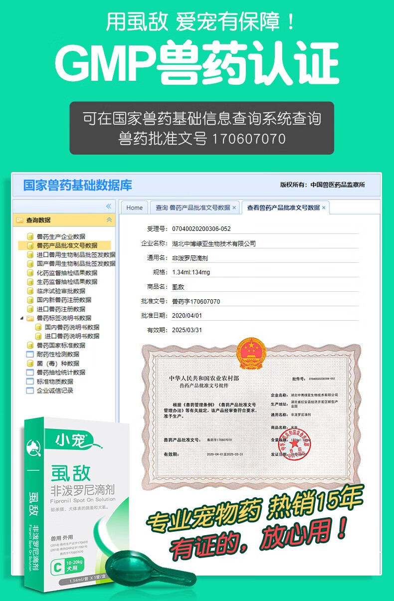 小宠虱敌驱虫药狗狗体外驱虫滴剂跳蚤蜱虫杀虫药10kg犬用/支