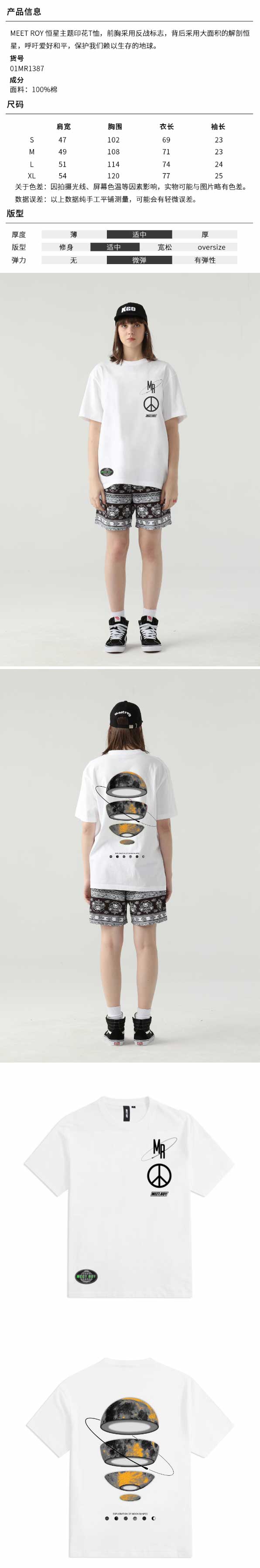 MEET ROY月球探索反战保护地球印花T恤01MR1387