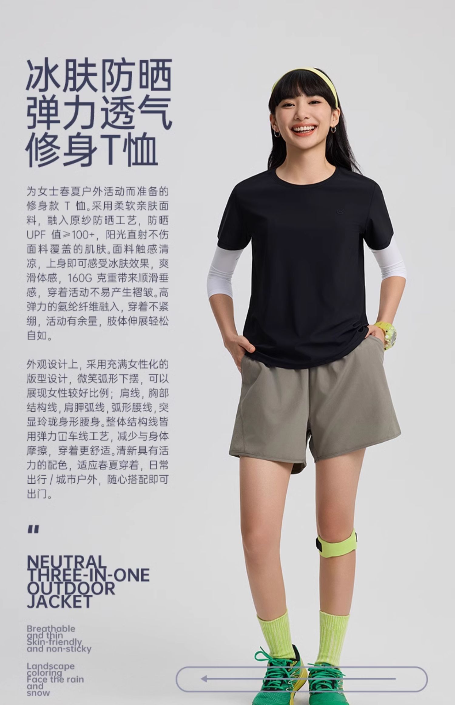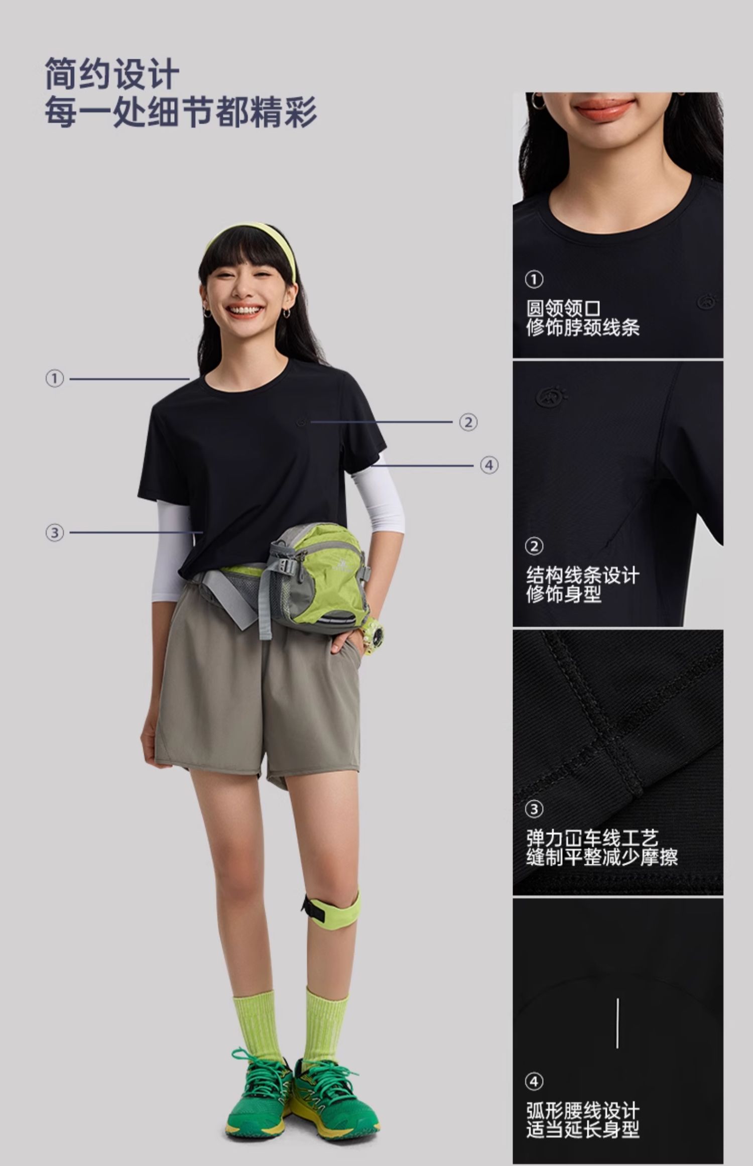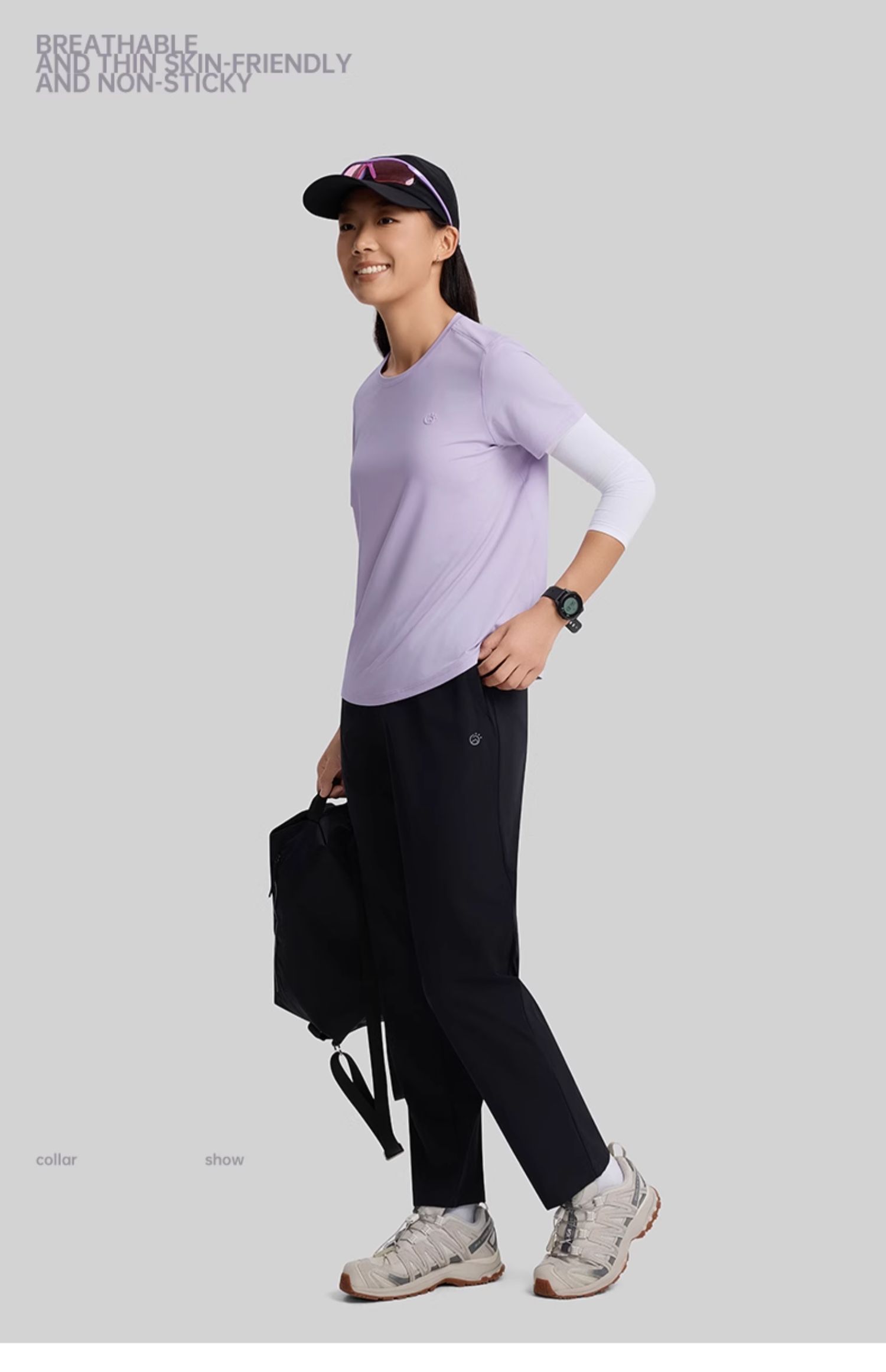 tectop/探拓户外运动速干纯色T恤女夏季透气轻薄冰丝防晒跑步短袖